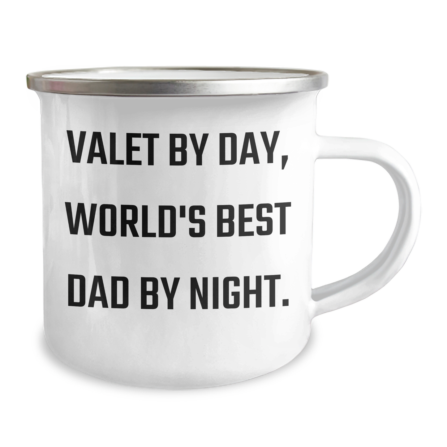 - Demuéstrale a tu papá cuánto te importa con este regalo tan especial y original. Ya sea un campista experimentado o que esté empezando, esta taza de camping "Valet de día, el mejor papá del mundo de noche" es la manera perfecta de darle un toque de personalidad a sus aventuras al aire libre. ¡Solo añade una nota conmovedora y listo!