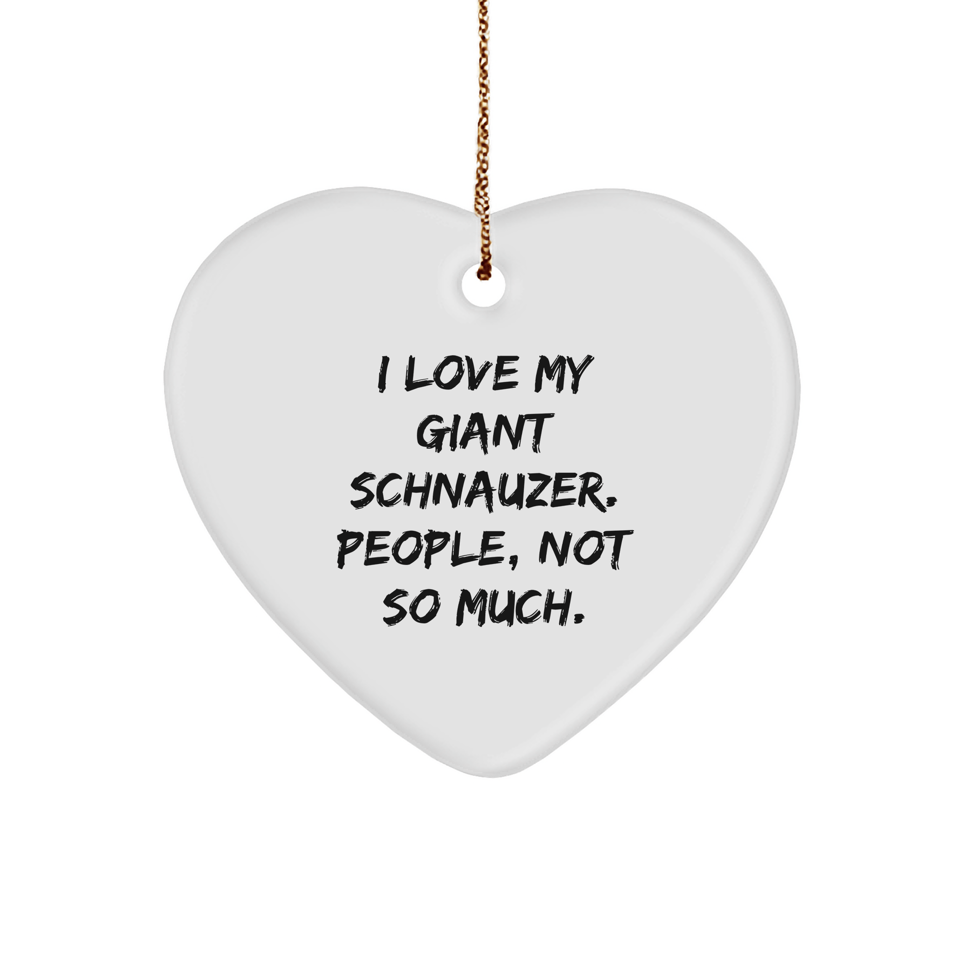 - Demuestre su amor por su amigo peludo que dice "Amo a mi Schnauzer gigante. Gente, no tanto" con este conmovedor adorno de corazón de perro Schnauzer gigante, un obsequio considerado para cualquier entusiasta del Schnauzer, que lo convierte en una adición única a la decoración navideña de cualquier hogar (200 caracteres).