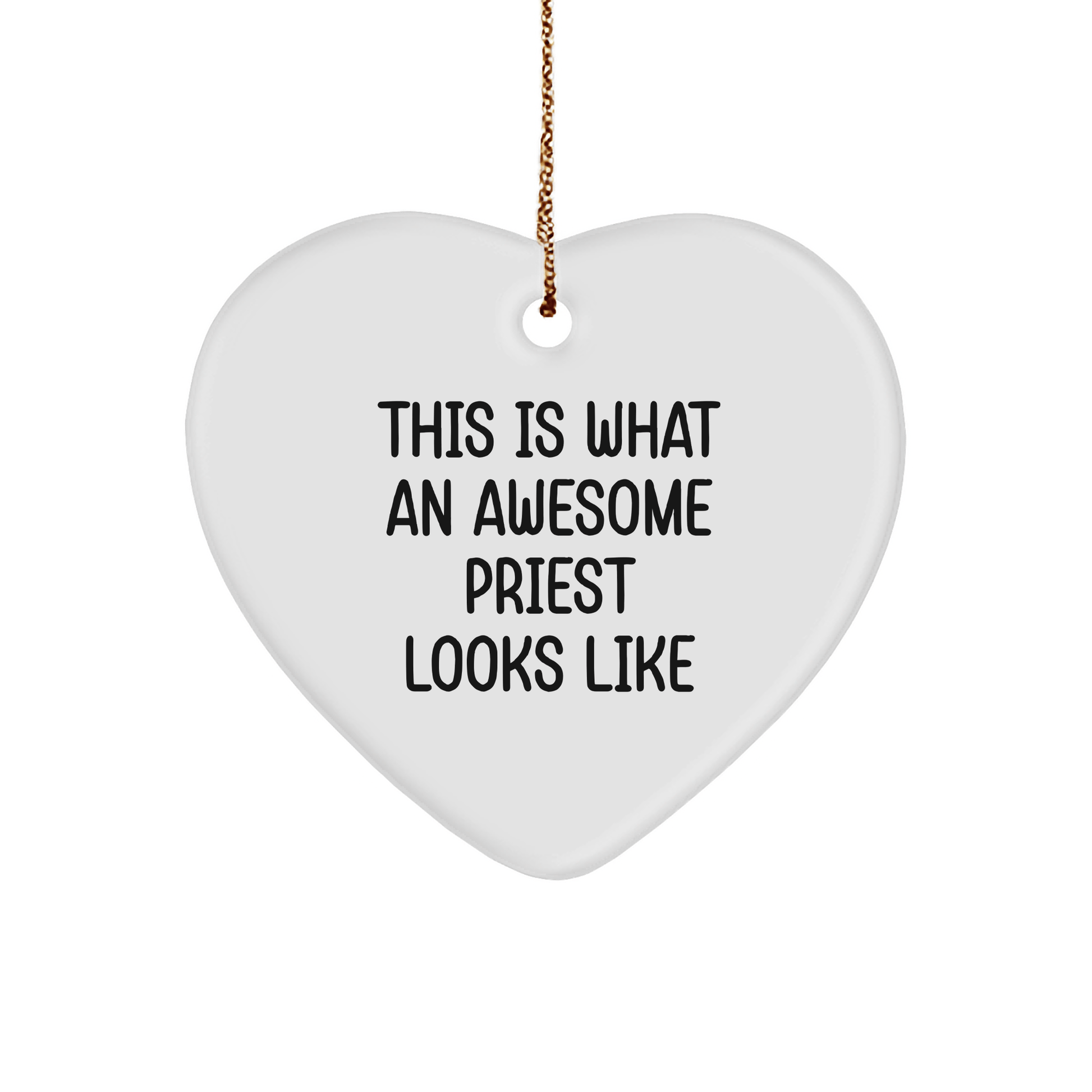 - Este adorno en forma de corazón es un regalo único y considerado para su sacerdote favorito, con una cita humorística que dice "Así es como luce un sacerdote increíble".