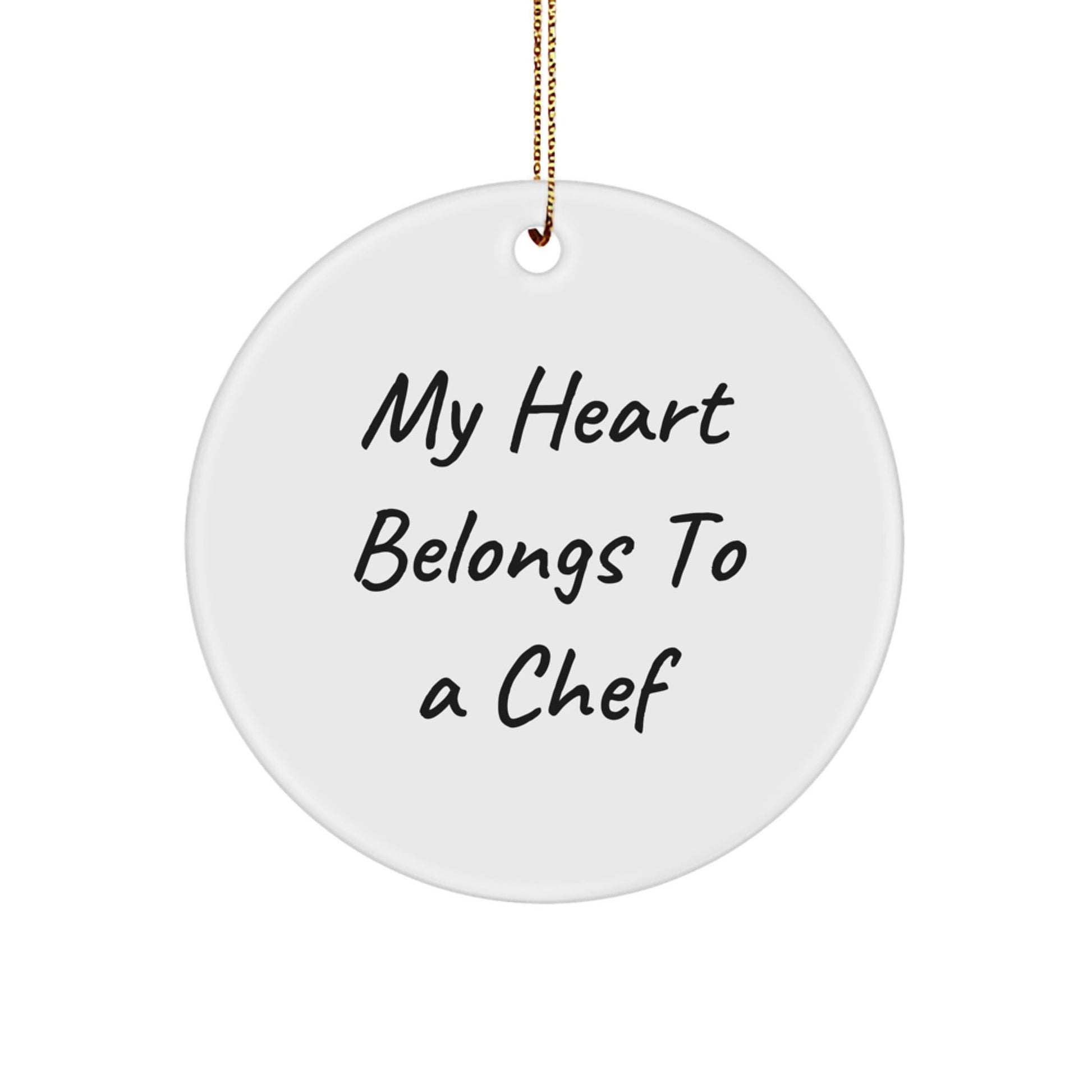 - Haga un regalo considerado para el chef de su vida con este exclusivo adorno circular 'Mi corazón pertenece a un chef', perfecto para decorar la cocina o regalar.