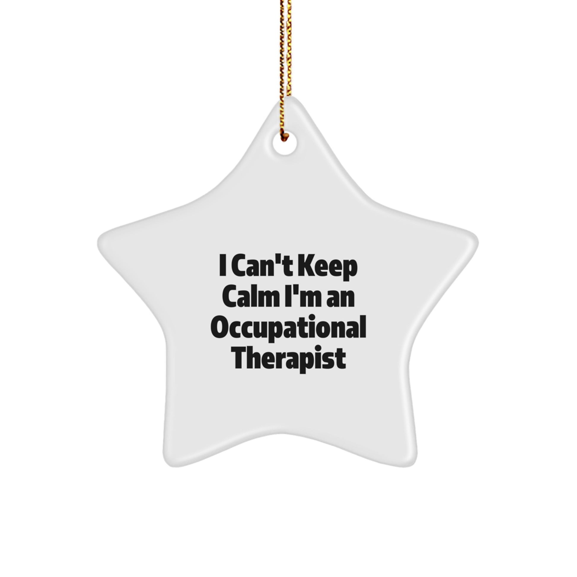 - Este adorno de estrella "No puedo mantener la calma, soy un terapeuta ocupacional" es un obsequio considerado de amigos, familiares o compañeros de trabajo, perfecto para hombres y mujeres terapeutas ocupacionales.