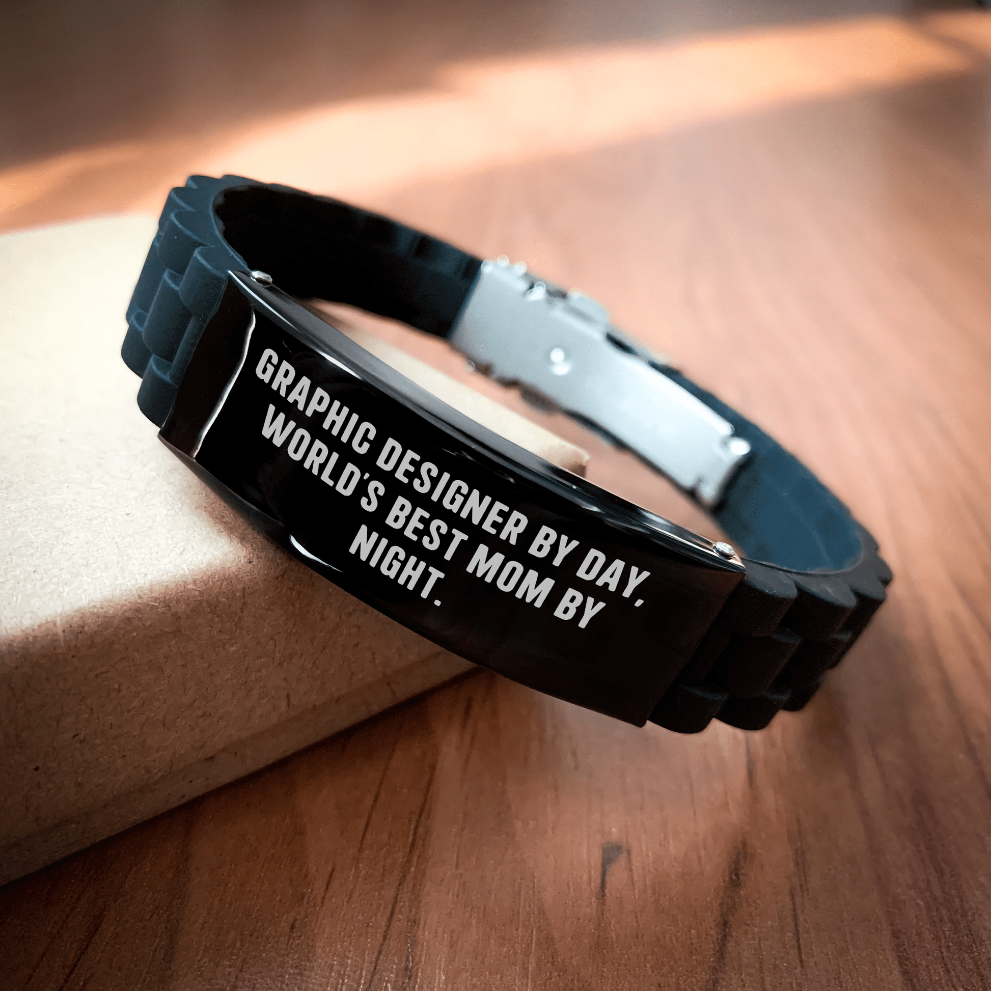 Celebra el vínculo único entre un diseñador gráfico y sus seres queridos con esta elegante pulsera con cierre deslizante. Como diseñadora gráfica de día y la mejor mamá del mundo de noche, este regalo es una representación conmovedora de su creatividad y dedicación. Hecha de plata de alta calidad, acero inoxidable negro y silicona, esta pulsera ajustable de 23 cm es resistente y cómoda de llevar.