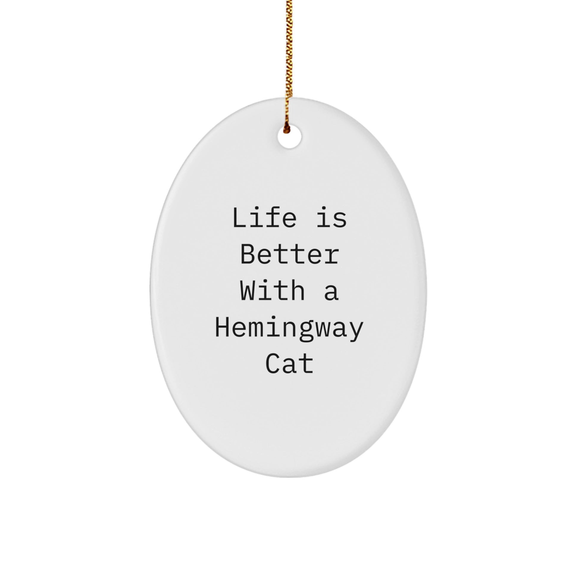 - Este adorno ovalado de gato de Hemingway es un regalo considerado y único para amigos, familiares o compañeros de trabajo que aman a los gatos de Hemingway; es la manera perfecta de demostrarles que te importan.
