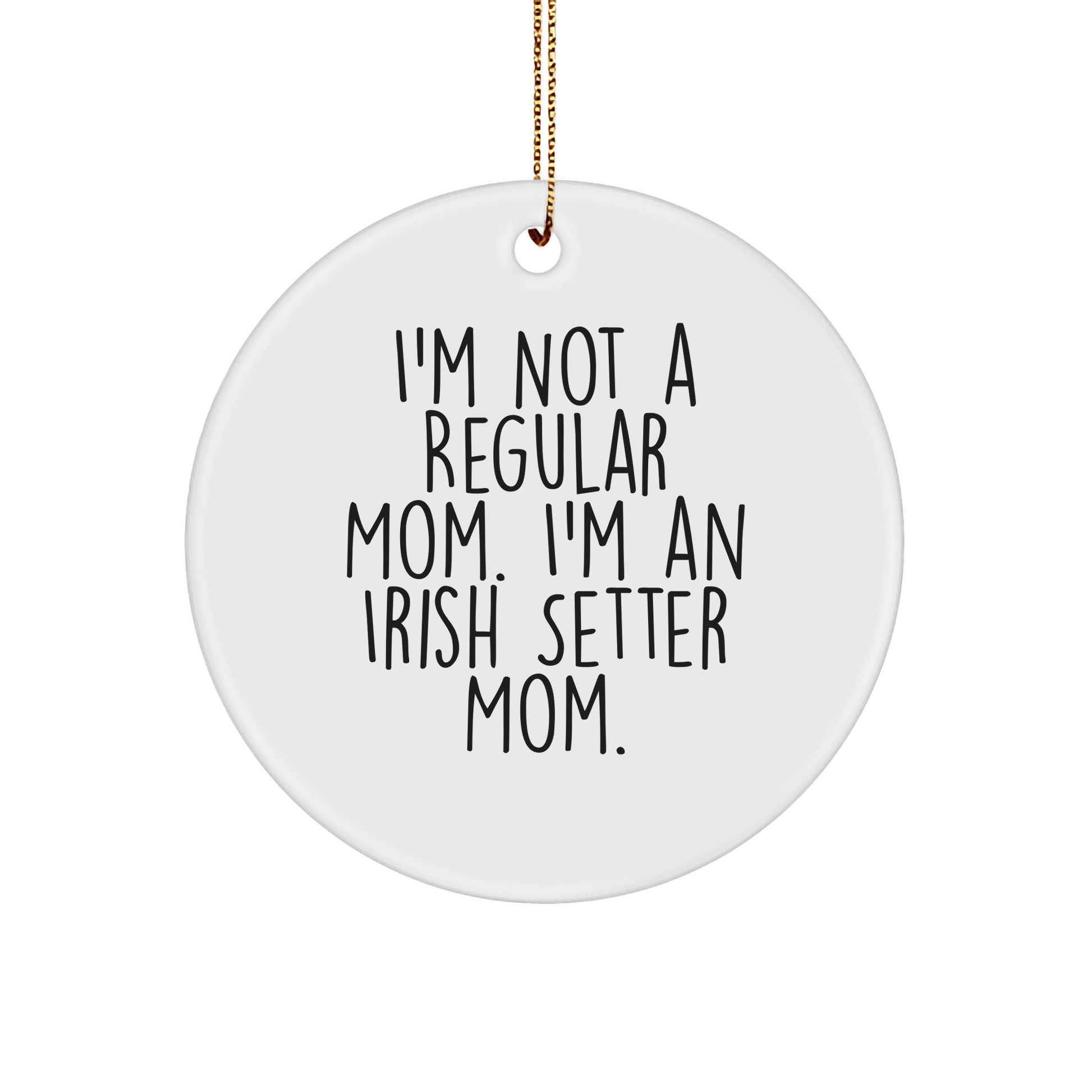 - Este divertido adorno circular con cita incluye la divertida frase «No soy una mamá normal. Soy mamá de un setter irlandés» en una impresión vibrante y de alta calidad.