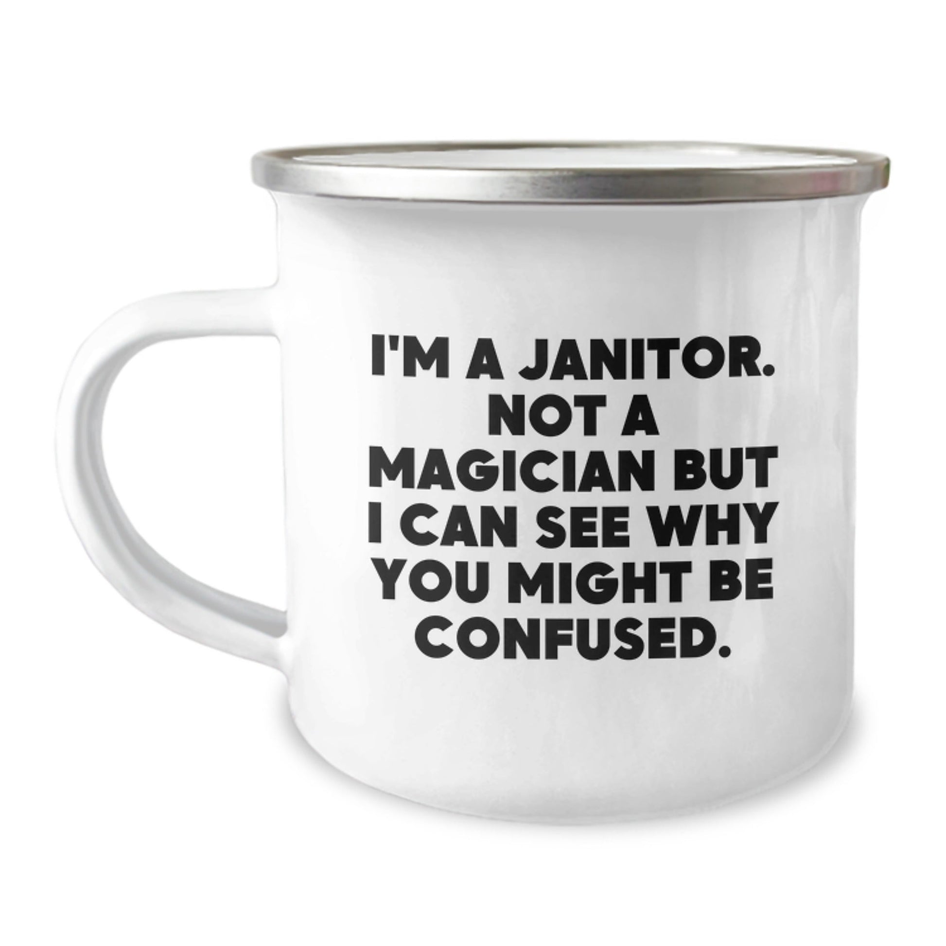 - Desde viajes de campamento hasta barbacoas en el jardín, nuestra taza de camping "Soy conserje. No mago, pero entiendo por qué podrías estar confundido" es el accesorio perfecto para cualquier entusiasta de las actividades al aire libre. Su robusta construcción y fácil mantenimiento la convierten en una compañera confiable para cualquier aventura, y su diseño único sin duda provocará conversaciones y risas con amigos y familiares.