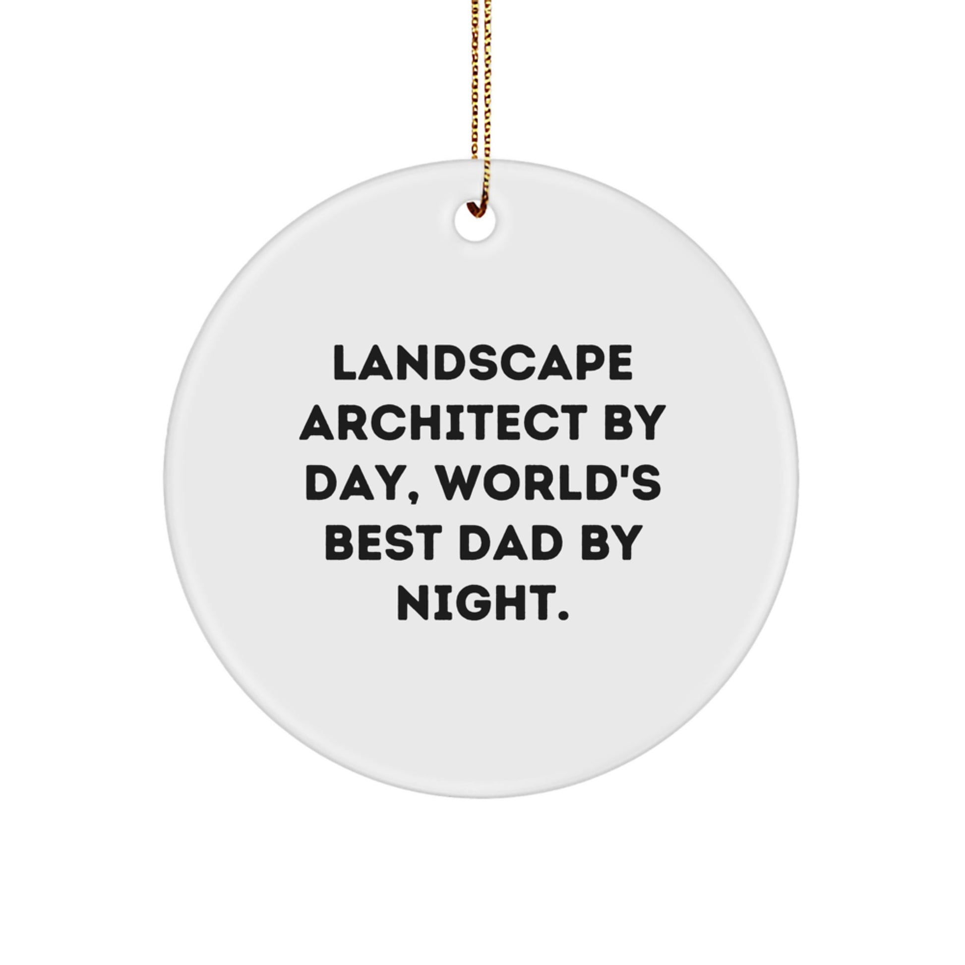 La frase "Arquitecto paisajista de día, el mejor papá del mundo de noche" le da un toque de humor y personalidad a este regalo, convirtiéndolo en un detalle único que atesorarán durante años. ¿Por qué conformarse con un regalo genérico cuando puedes regalar algo especial? ¡Encarga este adorno circular hoy mismo y haz que esta Navidad sea inolvidable!
