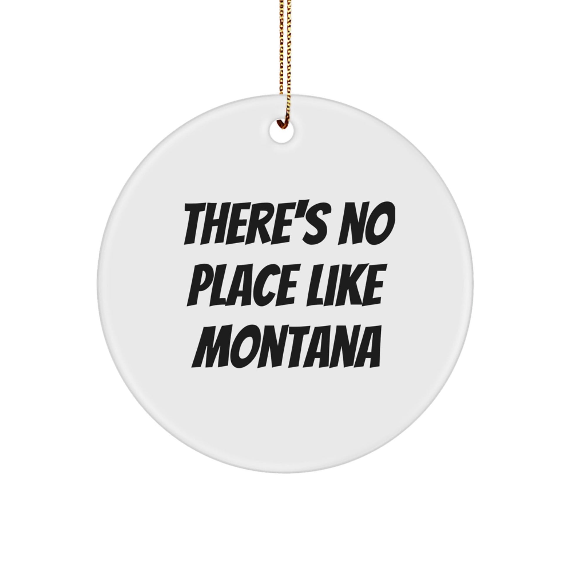 - Muestre su amor por Montana con este hermoso adorno circular, que presenta la icónica cita "No hay lugar como Montana".