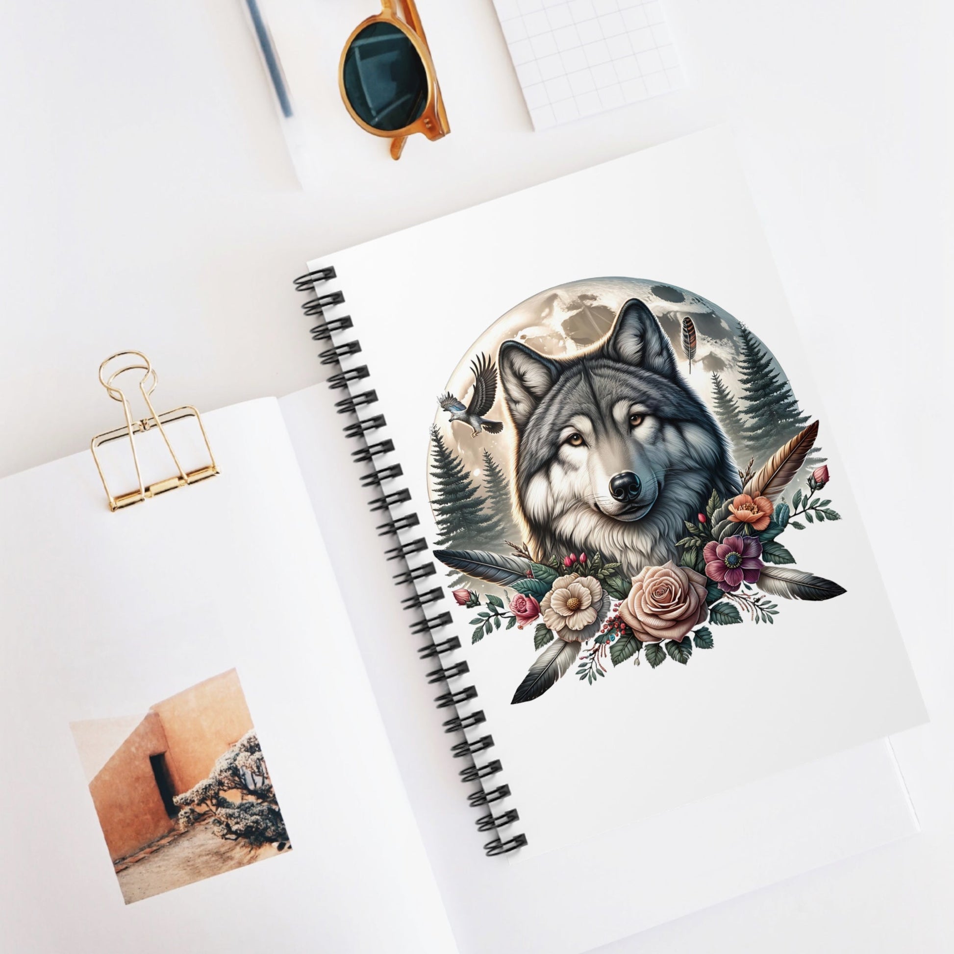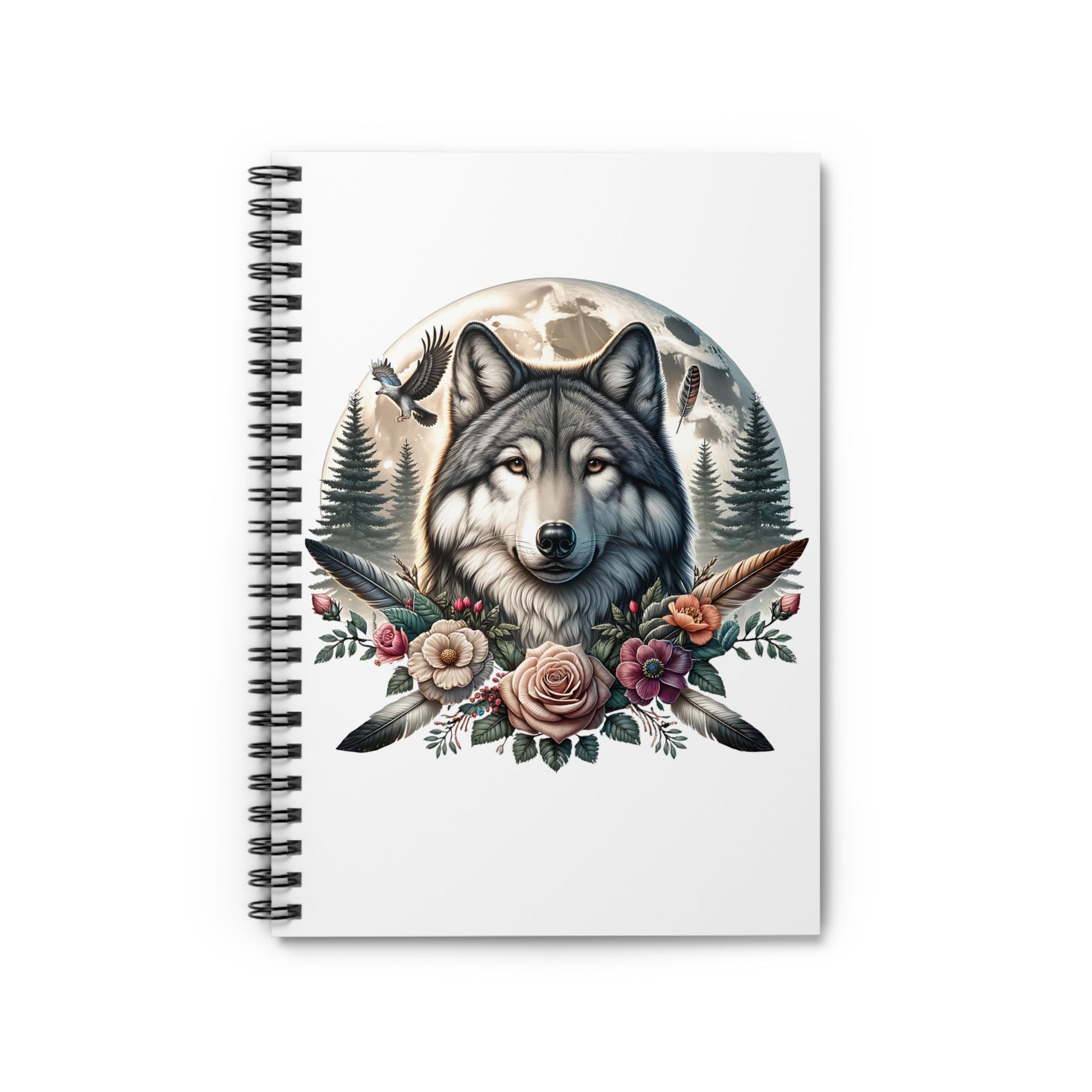 Este cuaderno de lobo nativo americano presenta una contraportada gris oscuro y una portada con la imagen de un majestuoso lobo. Perfecto para quienes aprecian el arte y la vida silvestre nativos americanos, este cuaderno es ideal para tomar notas, escribir en un diario o dibujar. Es un regalo ideal para los amantes de la naturaleza o quienes disfrutan de los motivos espirituales. Ideal para la vuelta al cole, cumpleaños y celebraciones con temática natural.