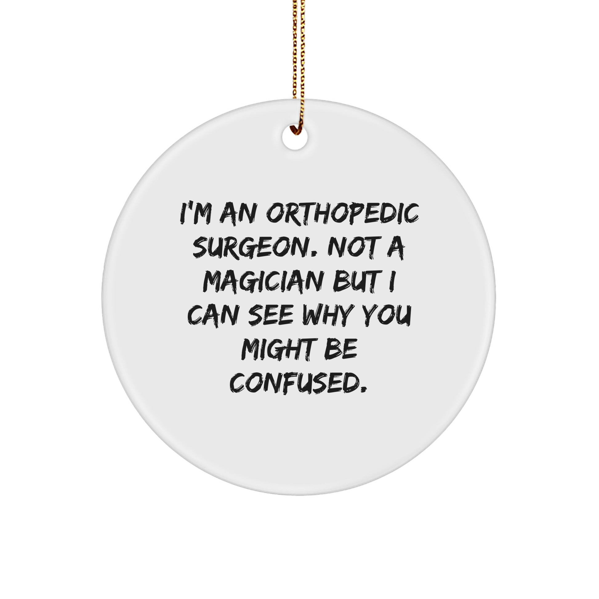 ¿Eres fan de los cirujanos ortopédicos? ¿Conoces a alguien que sea cirujano ortopédico y se merezca un regalo único? ¡No busques más! Este divertido adorno circular con cita es perfecto para regalar a un cirujano ortopédico. La frase "Soy cirujano ortopédico. No soy mago, pero entiendo por qué podrías estar confundido" seguro le sacará una sonrisa.