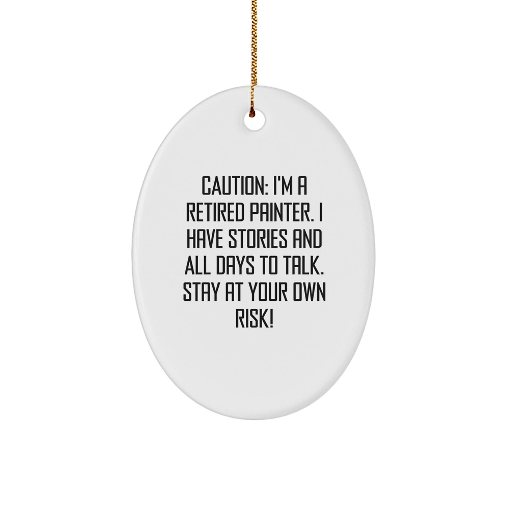 Imagina regalarle este adorno a tu pintor favorito; seguro que apreciará la reflexión y el humor de la cita. «Precaución: Soy pintor jubilado. Tengo historias y todo el día para contar. ¡Asume tu responsabilidad!», un divertido recordatorio de las alegrías y los desafíos de ser pintor.