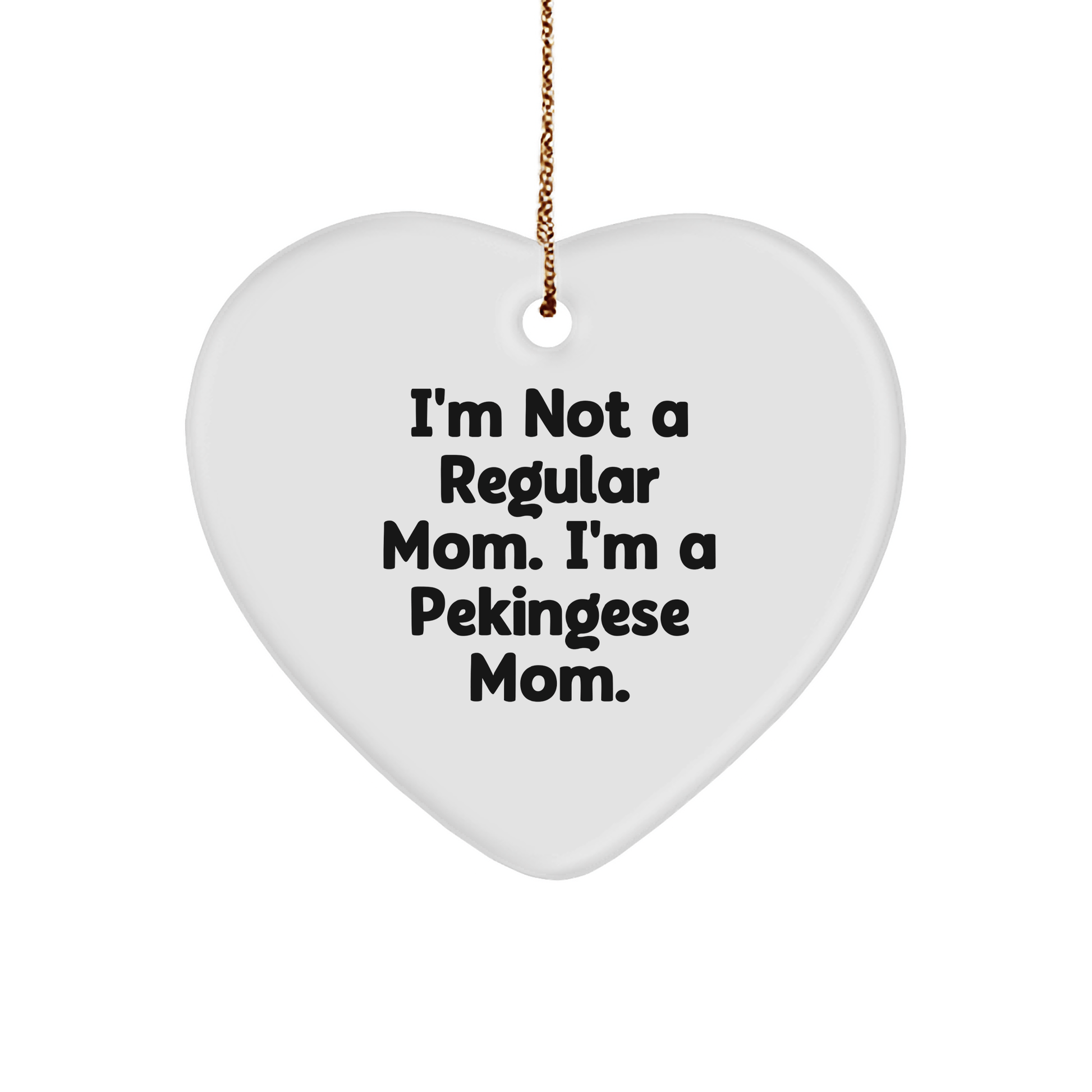 - Los colores vibrantes y el lindo diseño de este adorno lo harán destacar en cualquier árbol de Navidad, y la cita "No soy una mamá normal. Soy una mamá pequinés" es un toque sincero que resonará en cualquier mamá de perro pequinés.