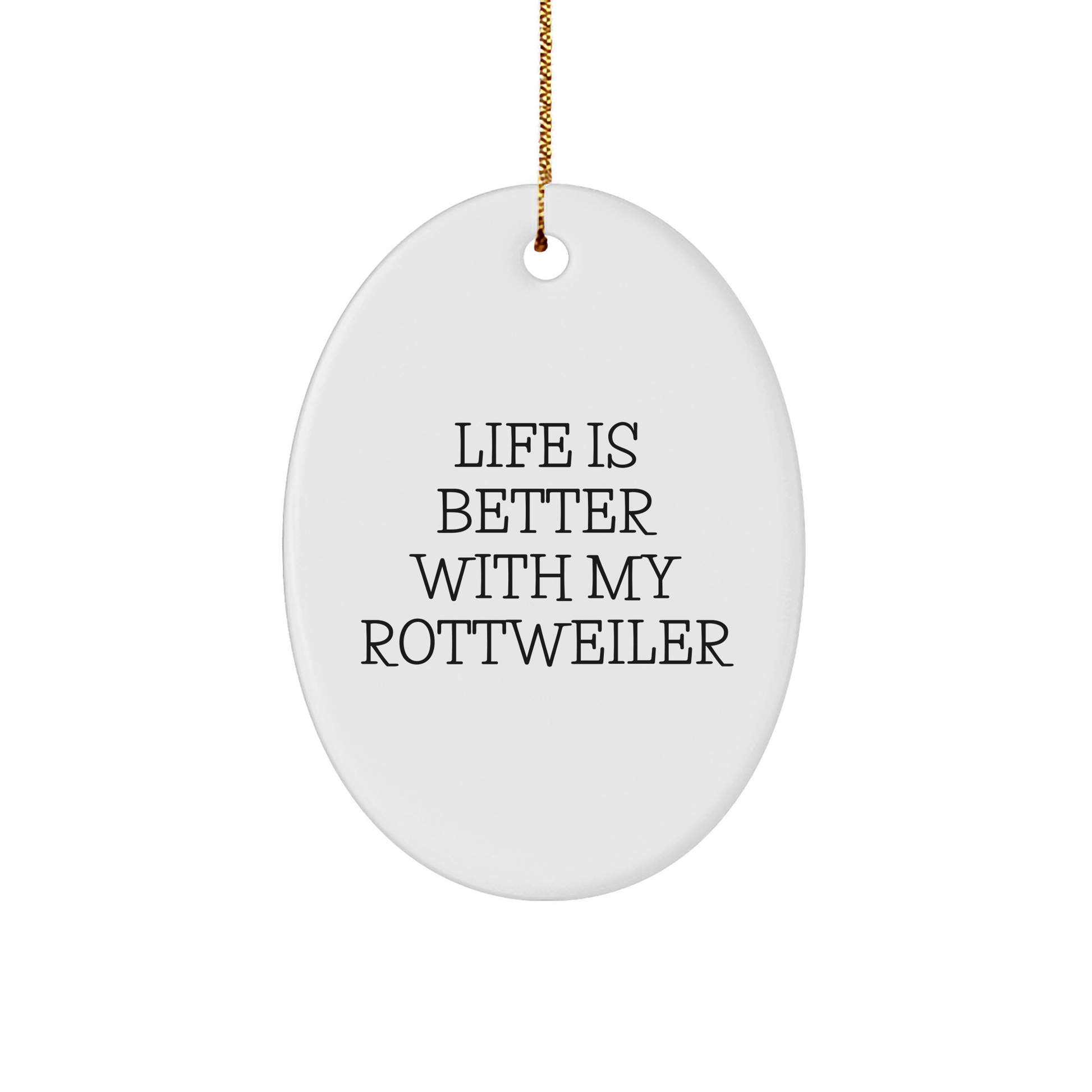 - Haga que esta temporada navideña sea aún más especial con un regalo considerado para el amante de los Rottweiler en su vida, que presenta una impresionante forma ovalada blanca con un diseño vibrante de Rottweiler, que seguramente iluminará cualquier habitación.
