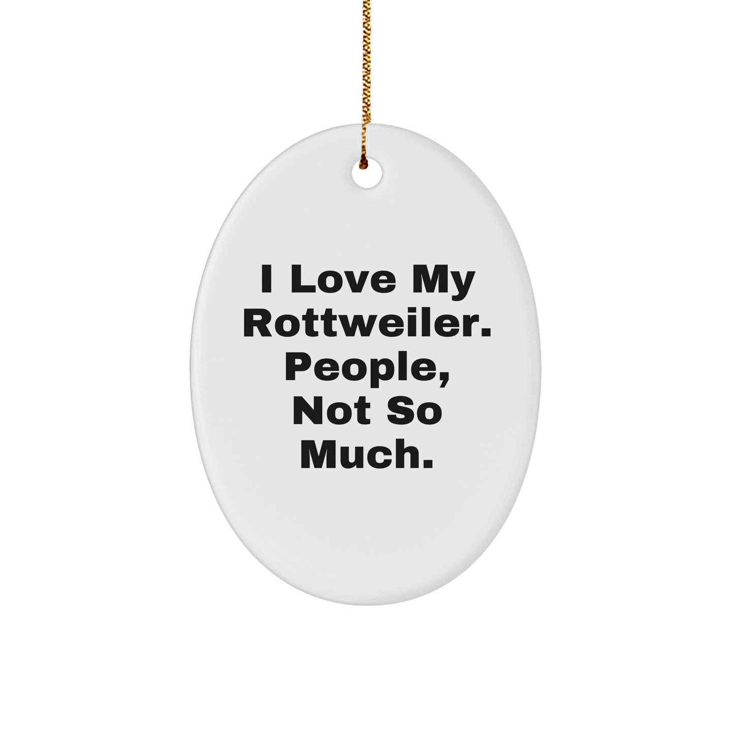 - Saca una sonrisa a cualquier amante de los Rottweiler con este original adorno ovalado, con un diseño vibrante que sin duda destacará en tu árbol de Navidad o repisa. La frase "Amo a mi Rottweiler. A la gente, no tanto" es el complemento perfecto para cualquier decoración con temática de Rottweiler. Fabricado en MDF resistente y plástico brillante, este adorno es ligero y resistente a las roturas, lo que lo convierte en una excelente opción para hogares con niños o mascotas.