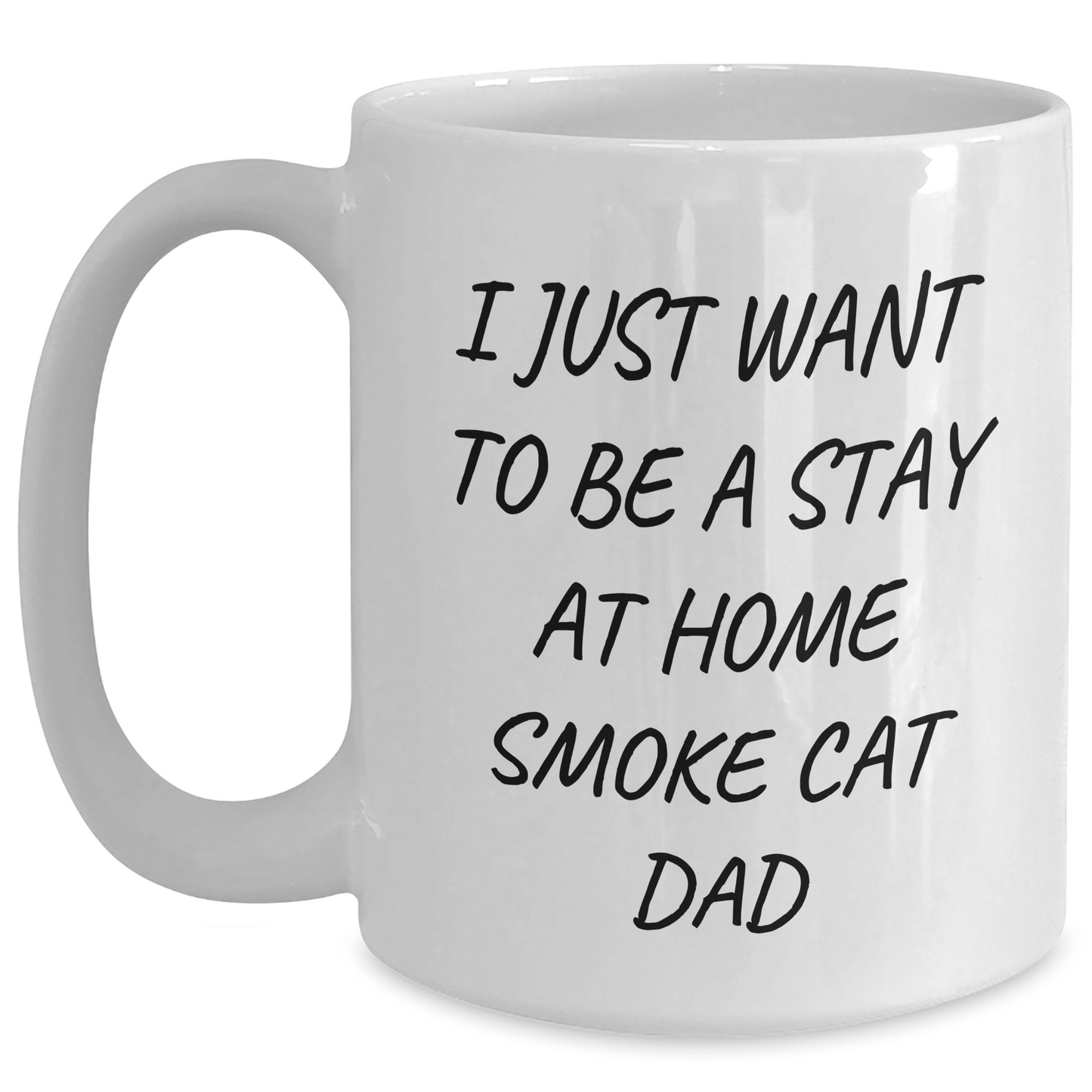- Esta divertida taza de café blanca es una idea de regalo única para cualquier papá de Smoke Cat, lo que la convierte en una excelente opción para el Día del Padre o cualquier otra ocasión.
