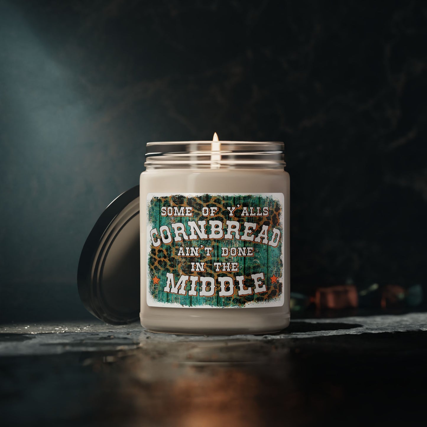 Una vela de soya perfumada en un recipiente de vidrio de 250 ml con la divertida frase "Some Of Y'alls Cornbread Ain't Done In The Middle". Perfecta para crear un ambiente acogedor y atractivo en cualquier habitación, esta vela es ideal para quienes aprecian un toque de humor en su decoración. Ideal para festividades y ocasiones especiales. Características del producto: - Mezcla de cera de soya ecológica y no tóxica - Recipiente de vidrio reutilizable para decoración - Nueve aromas diferentes para elegir - Duración de la combustión: 50-60 horas - Cumple con las normas de seguridad ASTM. Instrucciones de cuidado: - Mantenga la vela encendida a la vista. Manténgala alejada de niños y mascotas. Nunca la queme cerca de objetos inflamables.