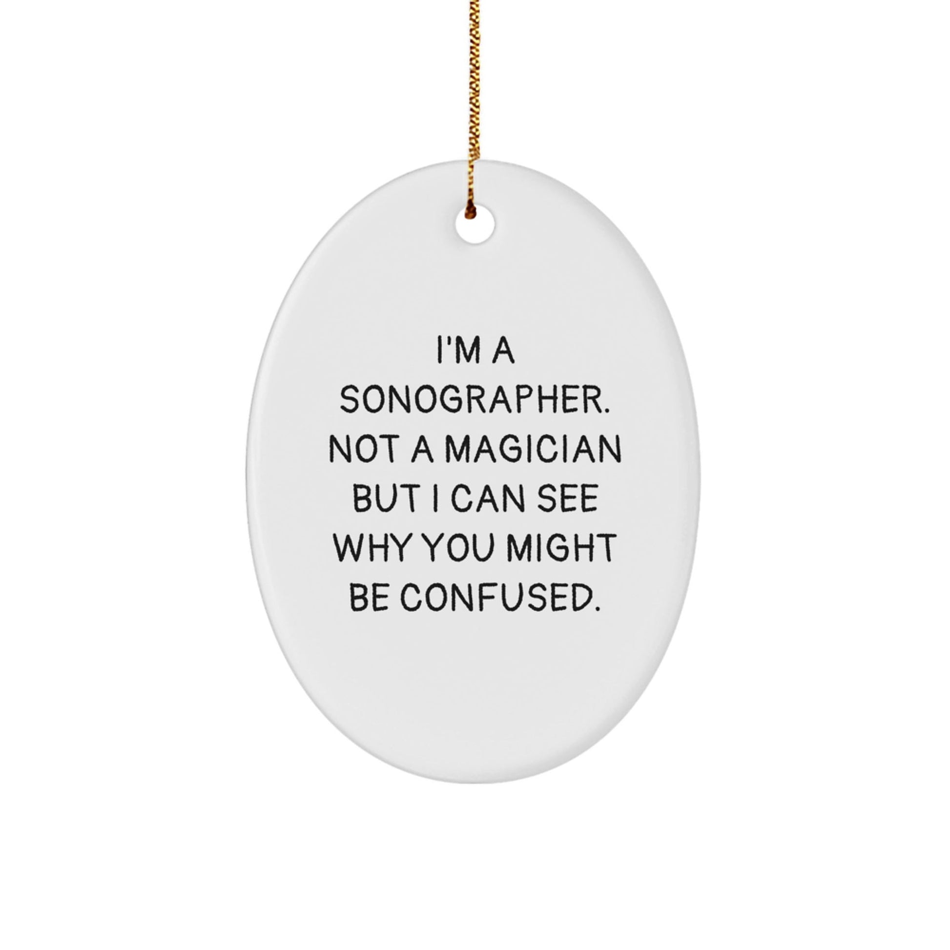 - Este divertido adorno ovalado es un regalo único y considerado para los ecografistas o cualquier persona que aprecie su trabajo.
