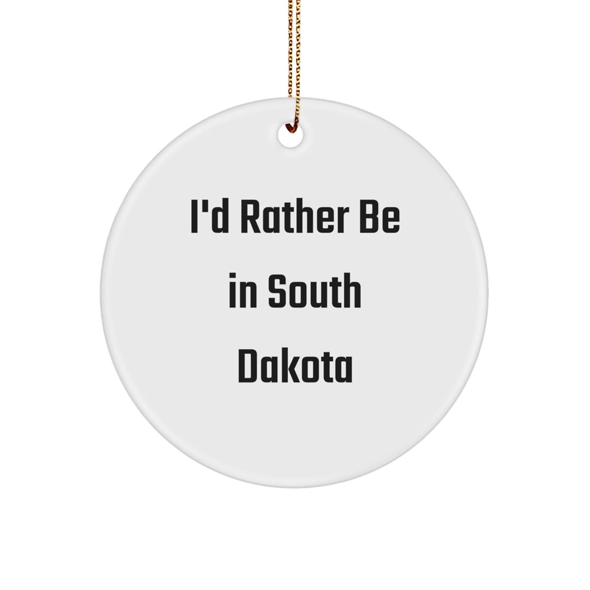 - Cuélguelo con orgullo en su hogar u oficina y muestre su amor por el estado del Monte Rushmore con este hermoso adorno circular "Preferiría estar en Dakota del Sur".