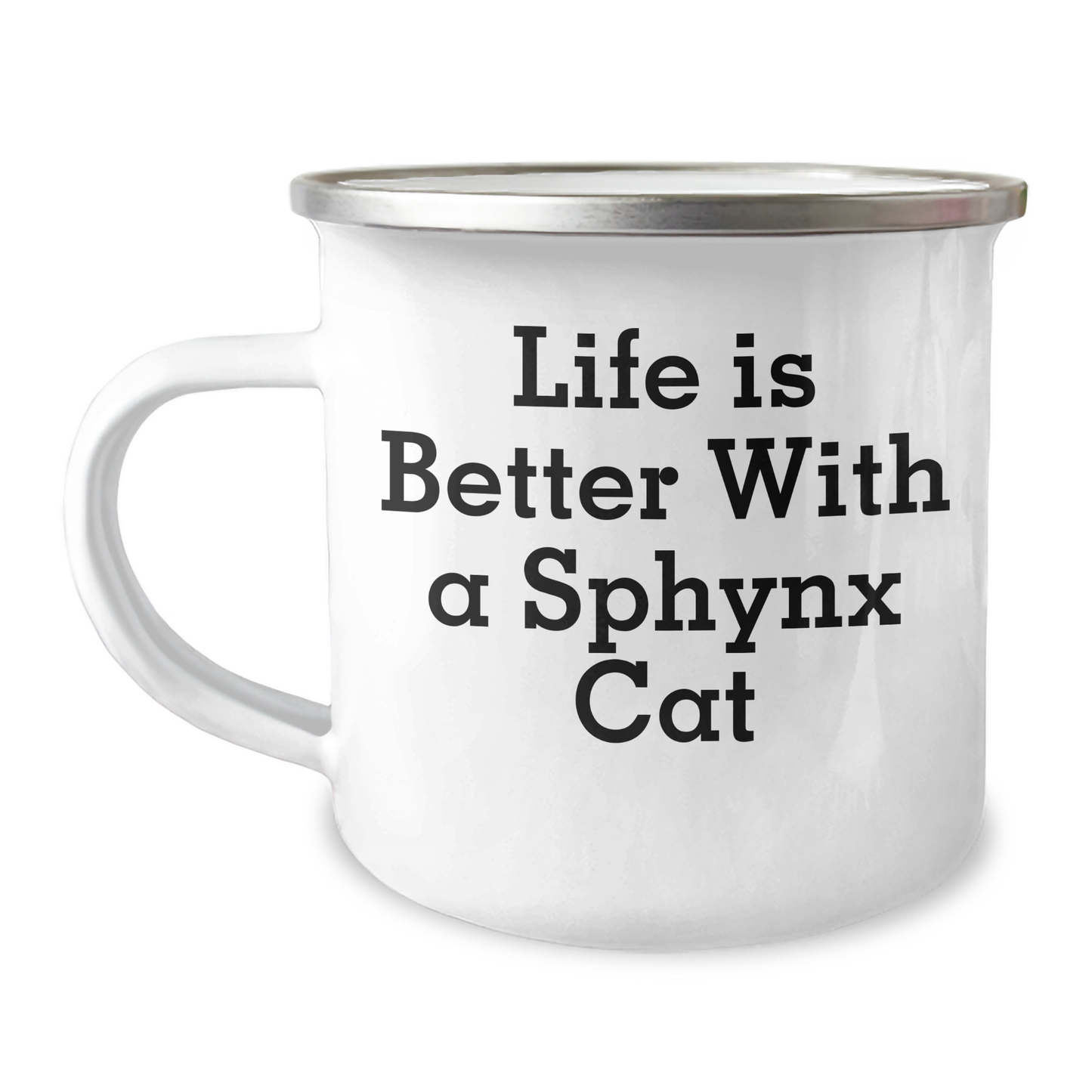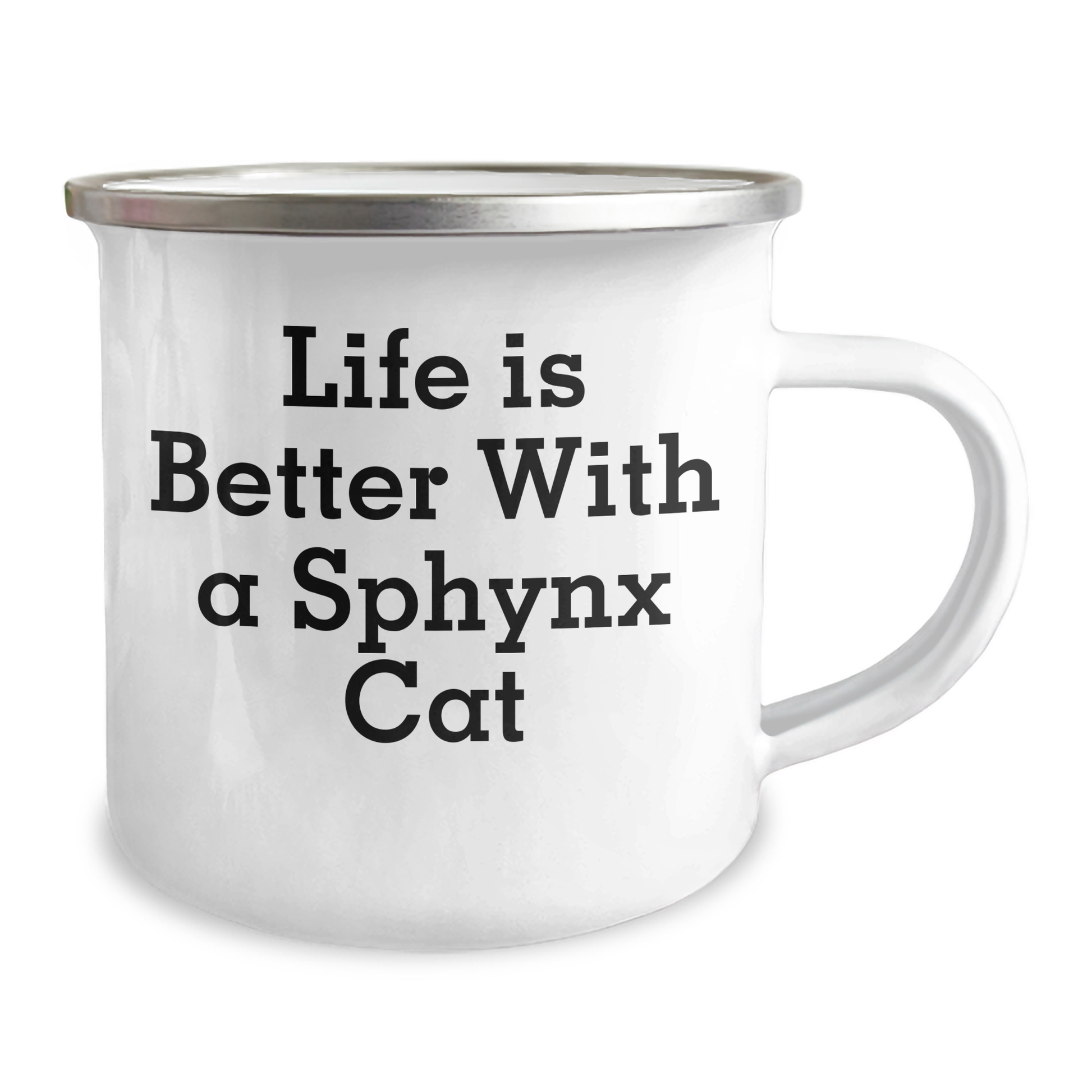Ya sea para regalar o para ti mismo, esta taza seguro que le sacará una sonrisa a cualquiera. La divertida frase «La vida es mejor con un gato esfinge» es el complemento perfecto para cualquier café o té matutino.