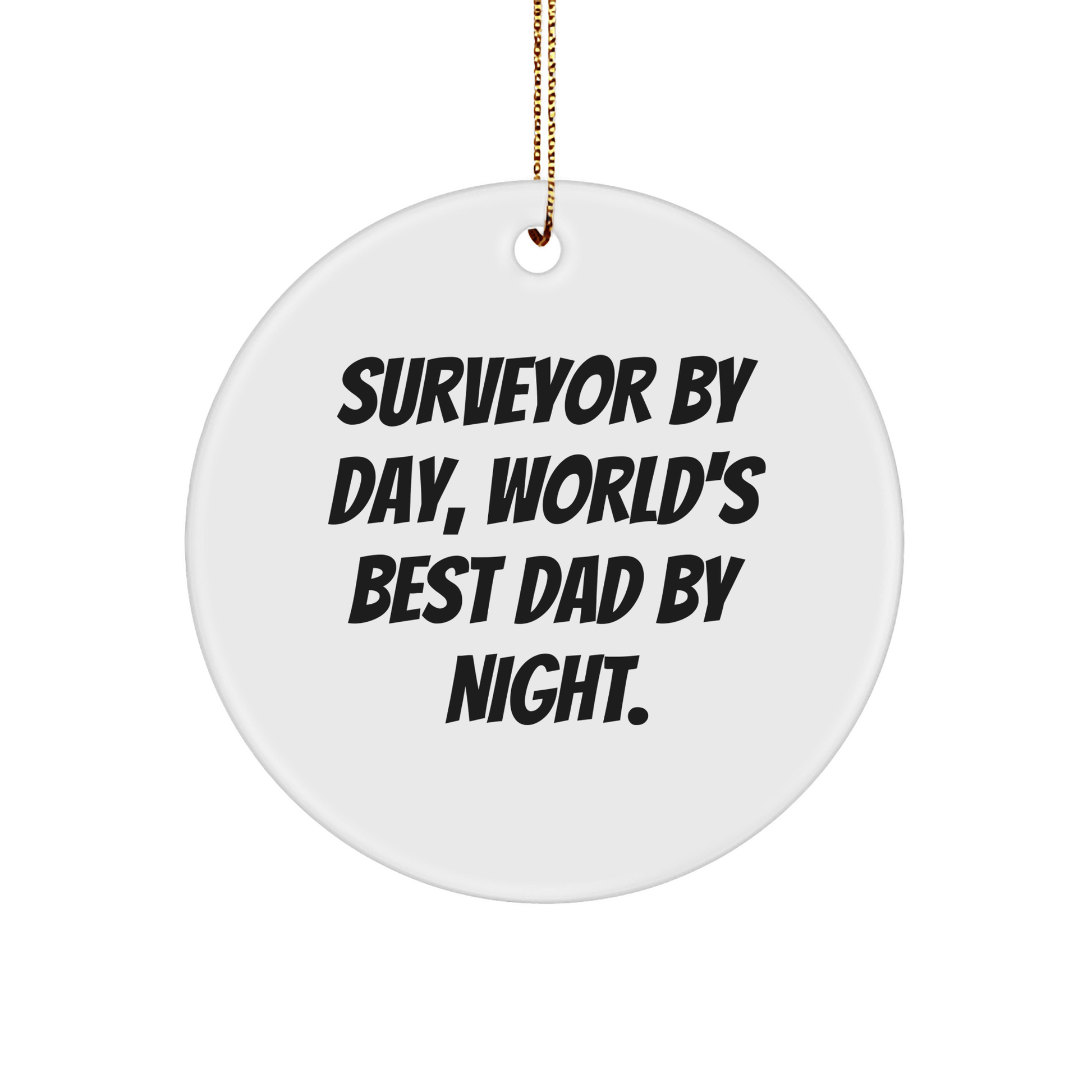 - Saca una sonrisa al topógrafo de tu vida con nuestro adorno circular "Topógrafo de día, el mejor papá del mundo de noche". Con su festivo cordón dorado para colgarlo fácilmente y su fabricación de alta calidad, este adorno será un recuerdo preciado para siempre. ¡Consíguelo hoy mismo!