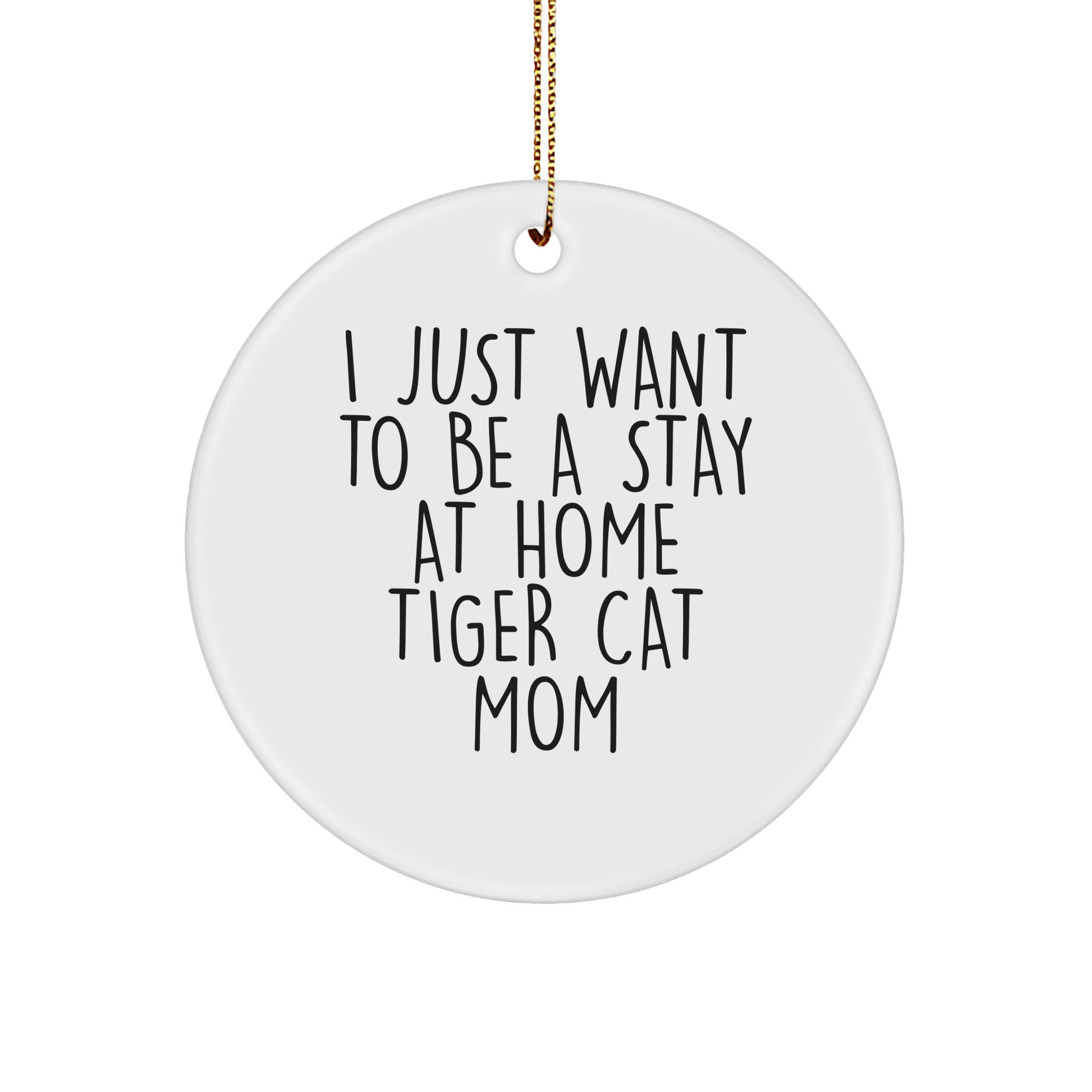 - Adorno circular único con la frase "Solo quiero ser una mamá tigresa que se queda en casa": un regalo considerado para cualquier amante de los gatos tigres.