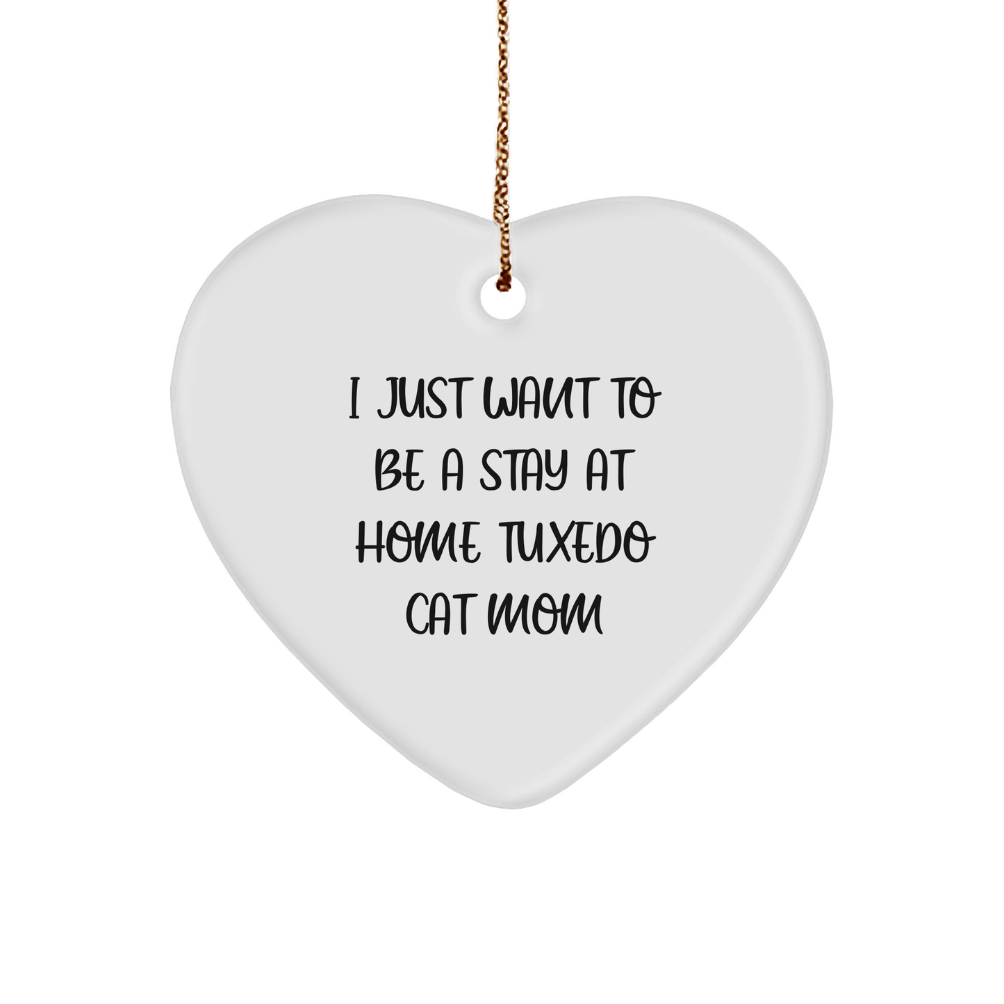 - Realza tu decoración navideña con este adorable adorno de corazón "Solo quiero ser una mamá de gatos Tuxedo, que se queda en casa", con un vibrante diseño de gato blanco que encantará a cualquier fan de Tuxedo Cat. Hecho de MDF duradero con acabado brillante, este adorno es resistente a las roturas y fácil de colgar con el cordón dorado festivo incluido.