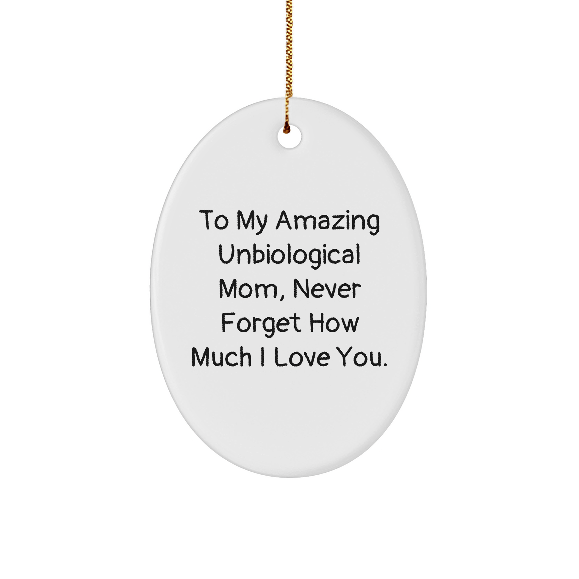 ¿Buscas un regalo especial para tu increíble mamá no biológica? Este adorno ovalado es la manera perfecta de demostrar tu amor y aprecio. Con sus vibrantes colores y su cita inspiradora, es un detalle especial para cualquier ocasión. Ya seas un familiar, un amigo o un compañero de trabajo, este adorno es una excelente manera de expresar tu gratitud y cariño. La frase "A mi increíble mamá no biológica: nunca olvides cuánto te amo" es una expresión sincera de tus sentimientos, y su robusta construcción garantiza que será una posesión preciada por muchos años. Haz que esta Navidad sea inolvidable con este regalo único y personalizado.