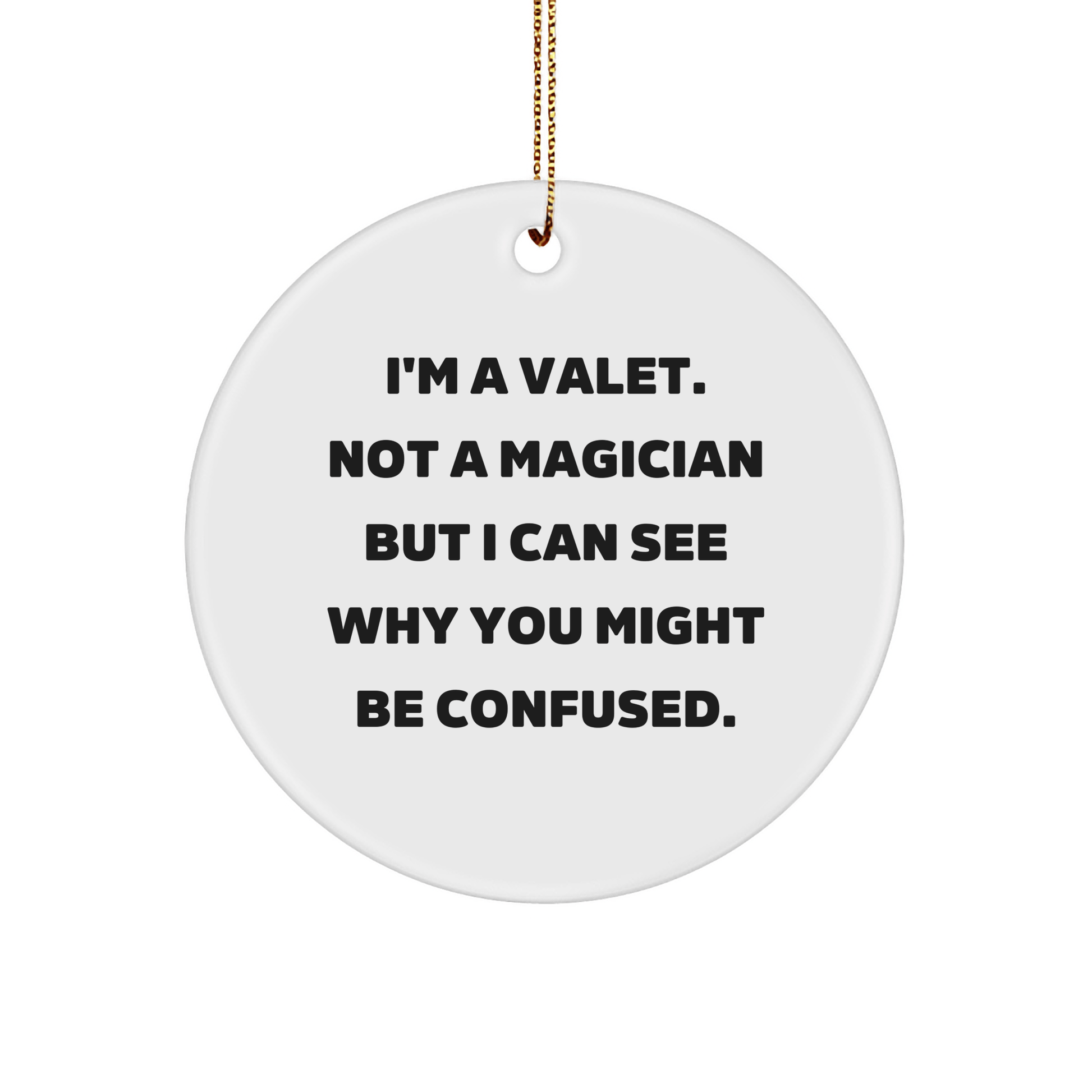 ¿Buscas un regalo único y considerado para el Valet de tu vida? ¡Lo tenemos cubierto! Nuestro Adorno Circular es un complemento divertido y encantador para cualquier hogar, con la frase "Soy Valet. No un mago, pero entiendo por qué podrías estar confundido" en colores vibrantes y atrevidos. Fabricado en MDF resistente con un acabado plástico de alto brillo, este adorno es ligero y resistente a las roturas, lo que lo convierte en una excelente opción para hogares con niños o mascotas. Y con su festivo cordón dorado, es fácil de colgar y disfrutar. Tanto si eres Valet como si simplemente quieres demostrarle tu aprecio a uno, este adorno es la manera perfecta de hacerlo. ¡Esta Navidad, regala risas y alegría con nuestro Divertido Adorno Circular!