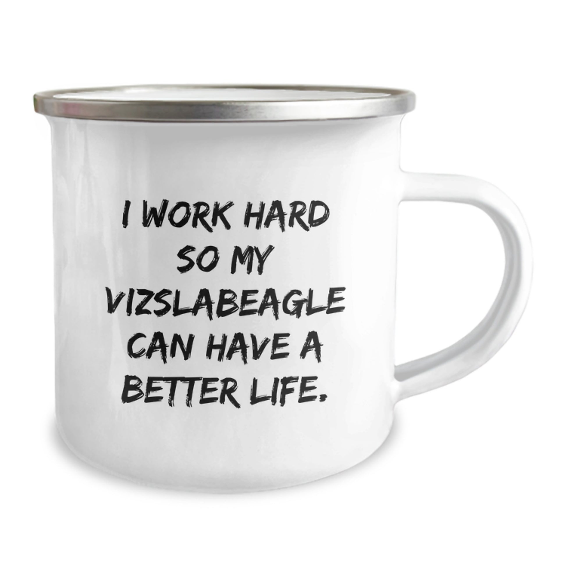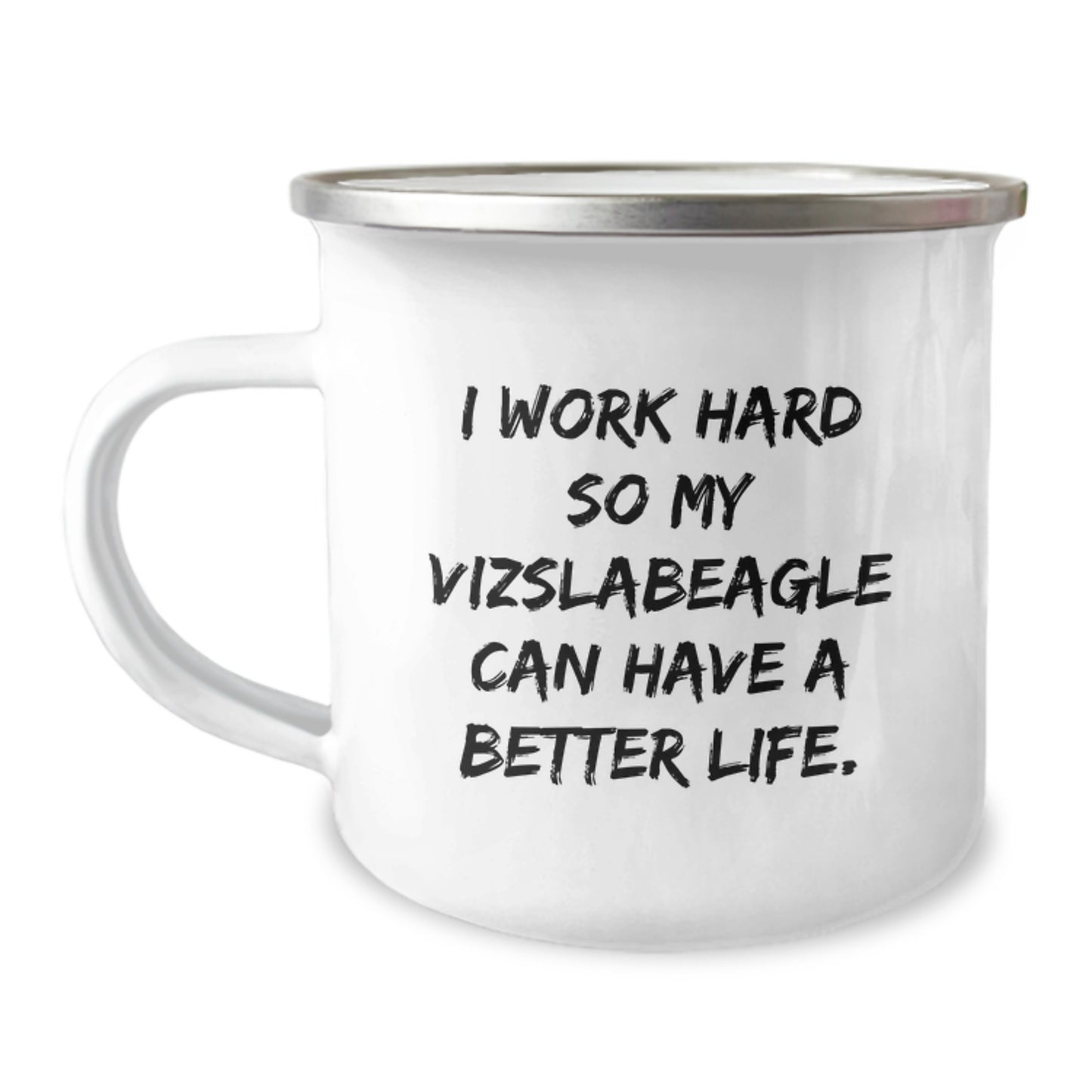 Esta taza de camping es una idea de regalo única para los amantes de los perros Vizsla, con una frase divertida que les sacará una sonrisa.
