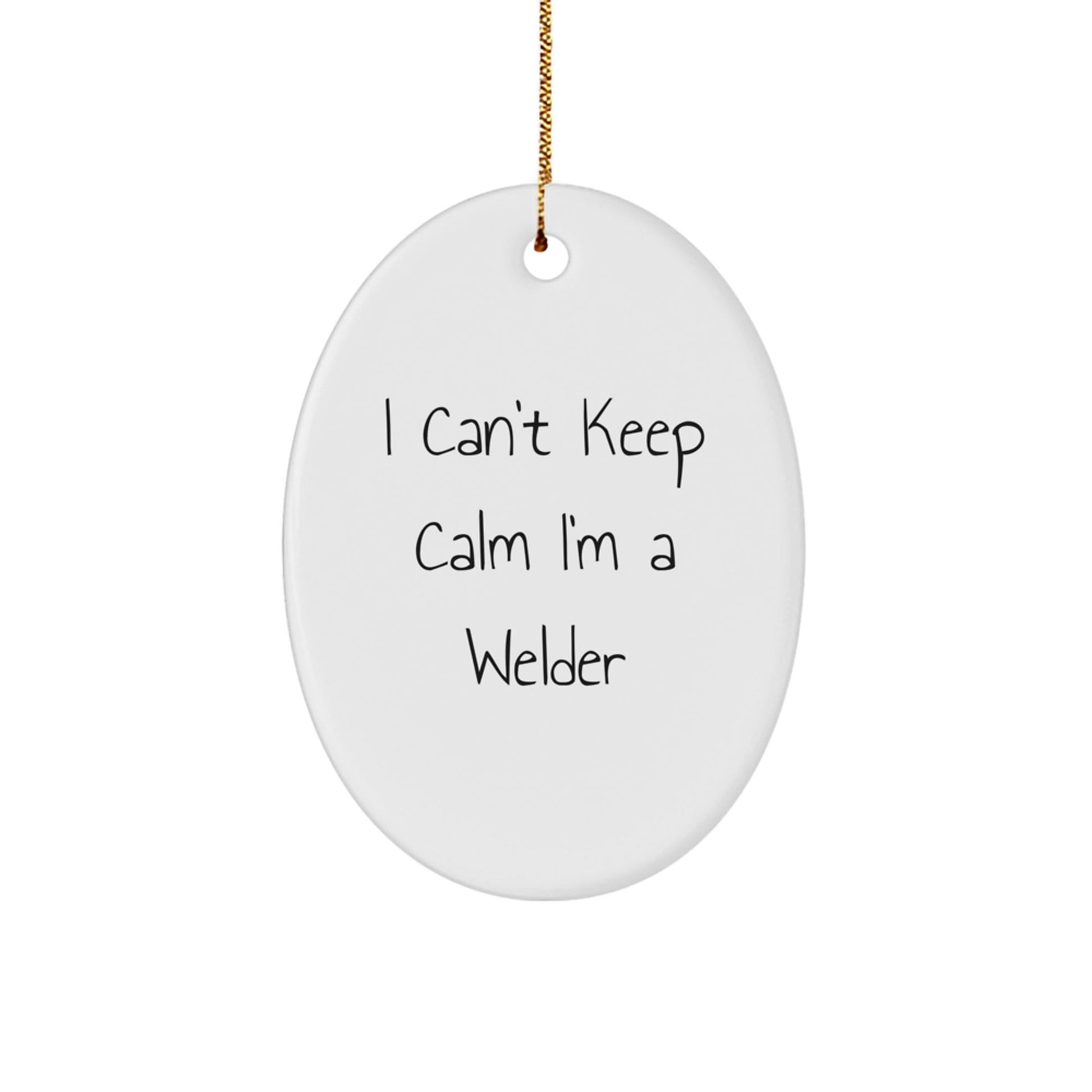 - Este adorno ovalado que dice "No puedo mantener la calma, soy soldador" es un regalo divertido y considerado para cualquier entusiasta de la soldadura, lo que lo convierte en una excelente opción para regalos de Navidad para hombres, mujeres, compañeros de trabajo o familiares.