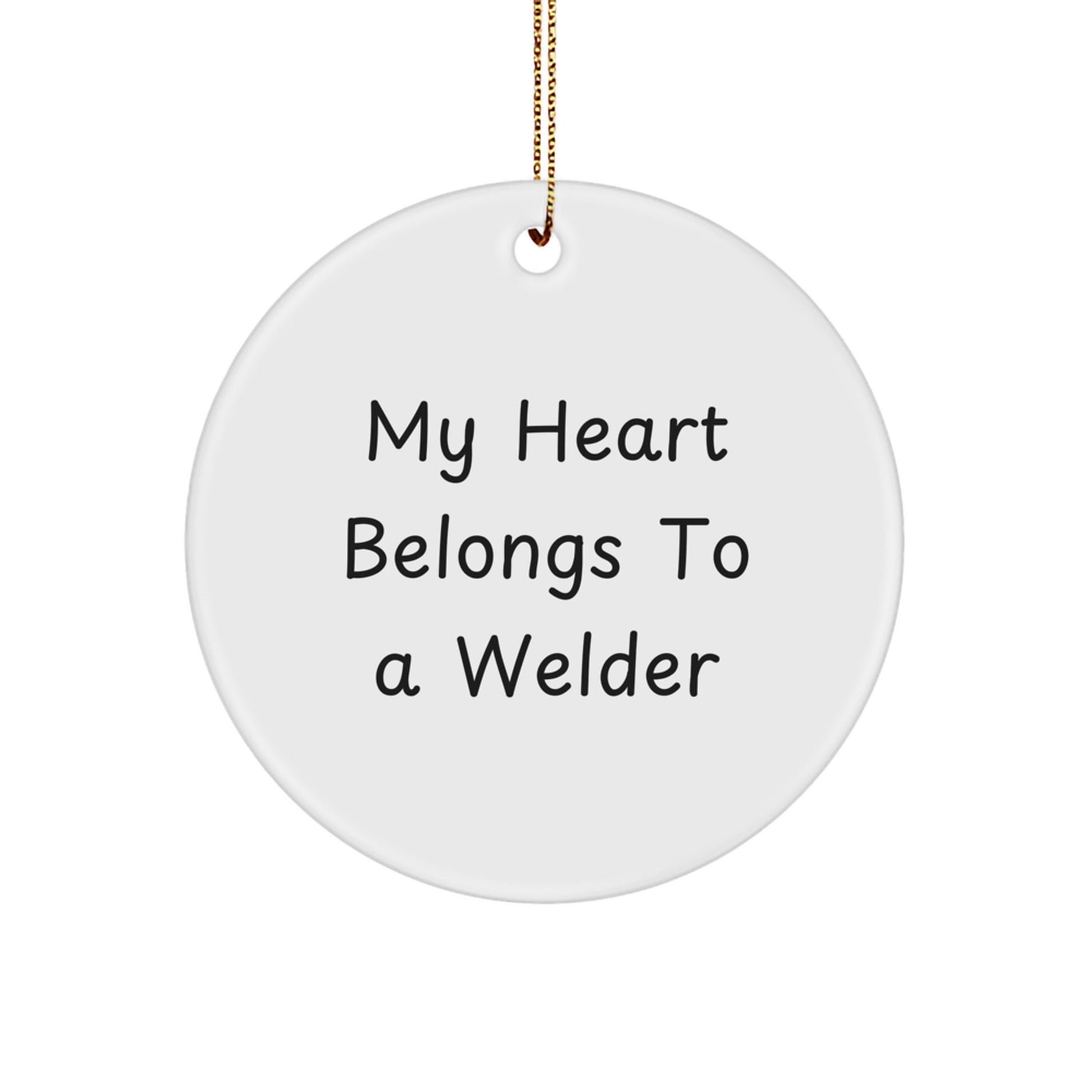 - Este adorno circular "Mi corazón pertenece a un soldador" es un regalo considerado para cualquier soldador y muestra su aprecio por su arduo trabajo y dedicación.