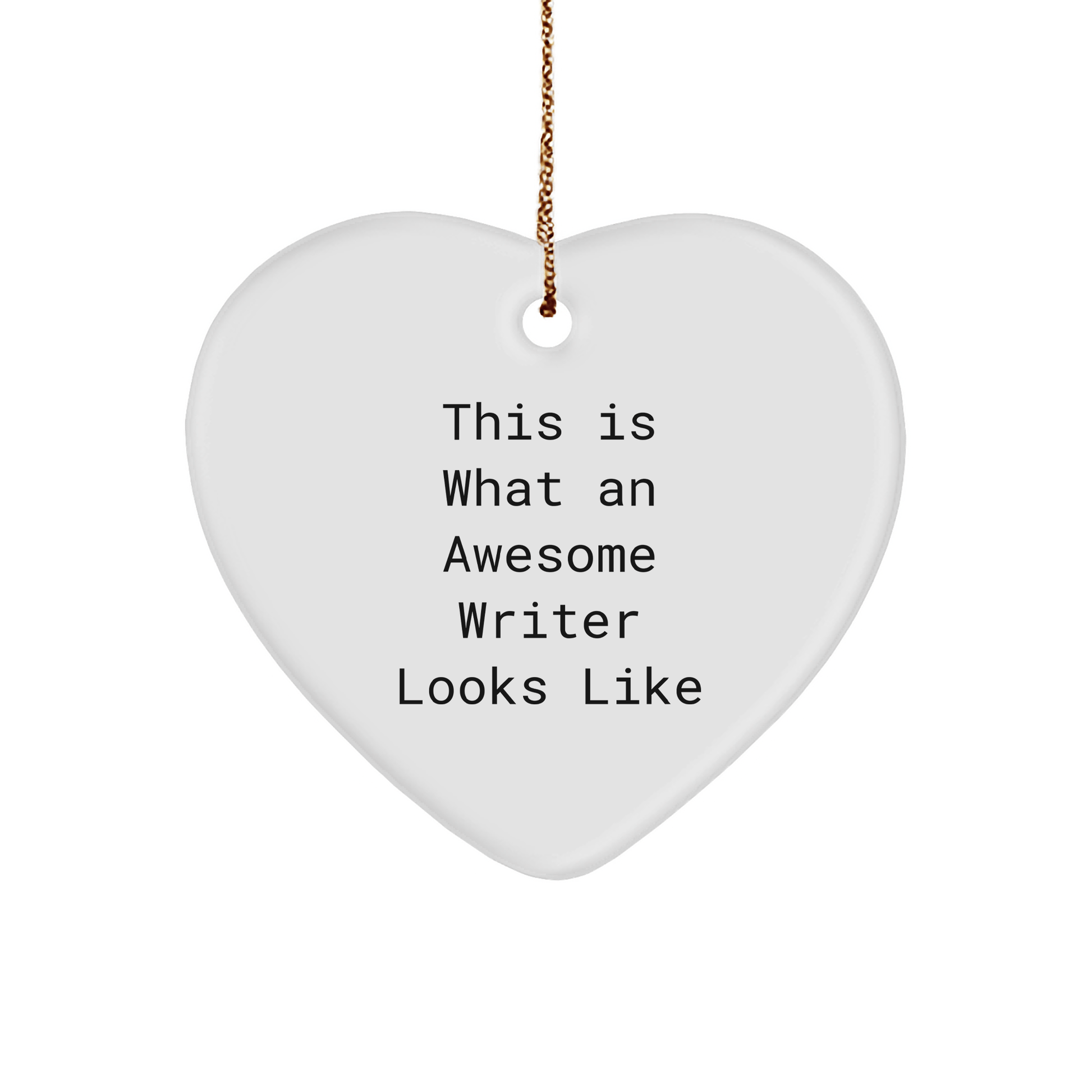 Esta Navidad, regala ánimo y apoyo a tu escritor favorito. Pide hoy mismo este adorno de corazón "Así es como luce un escritor increíble" y alegra su Navidad.