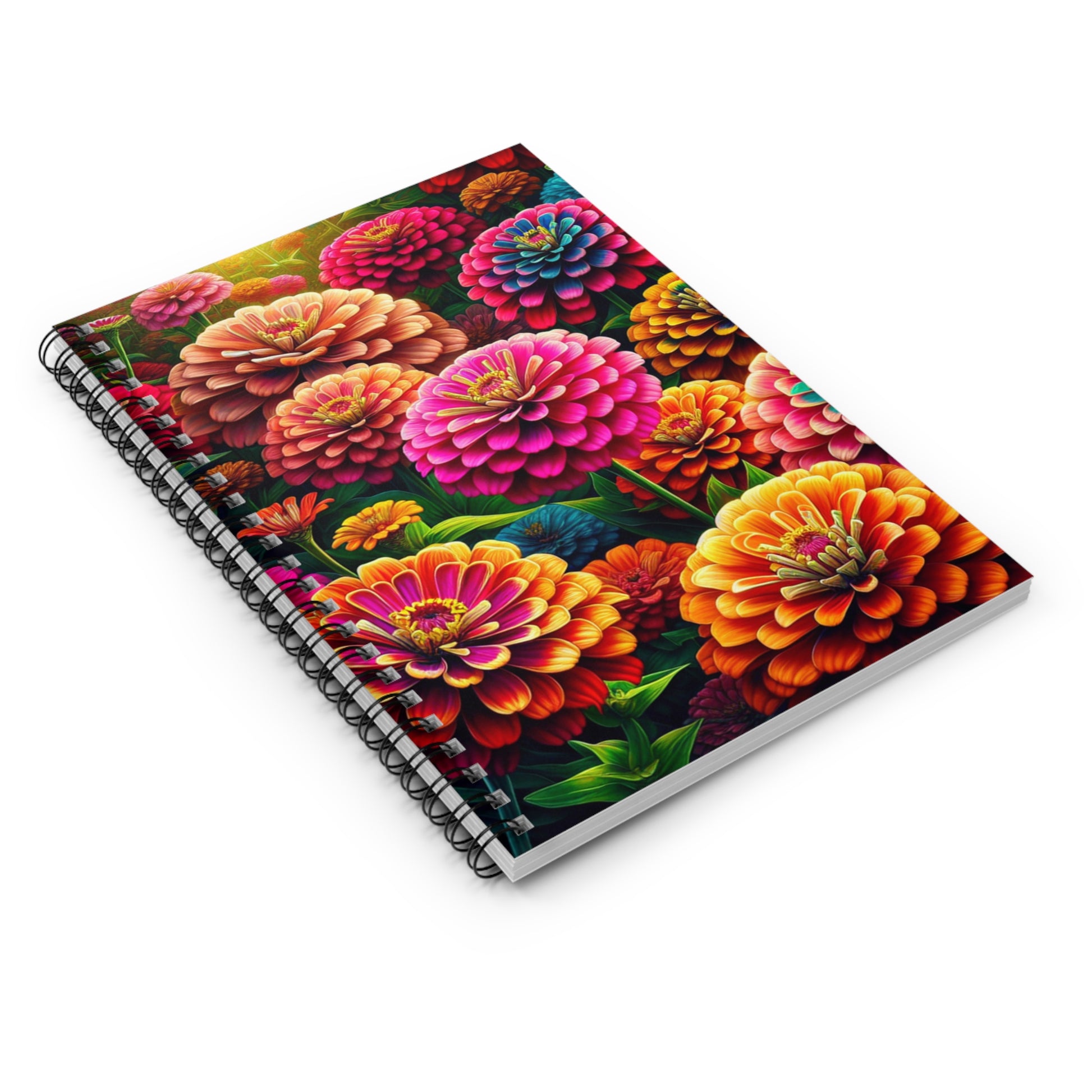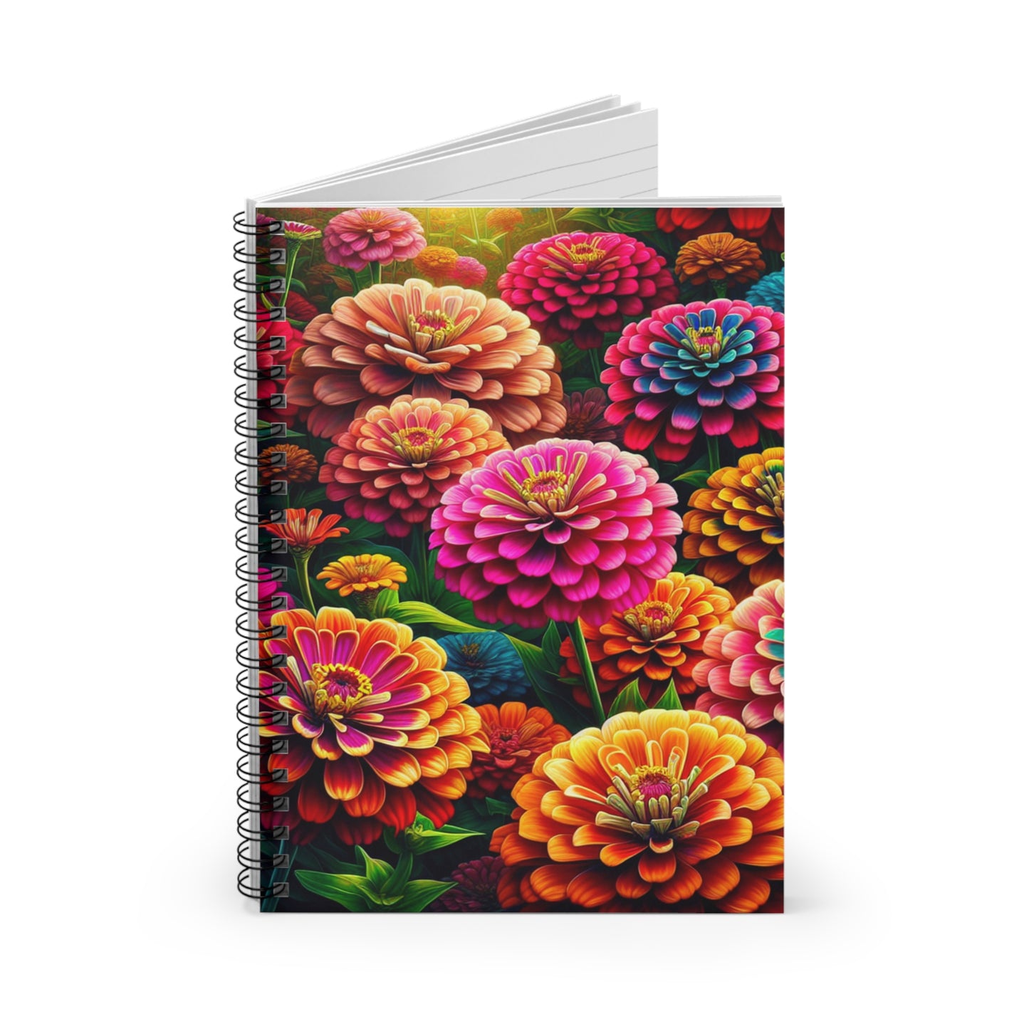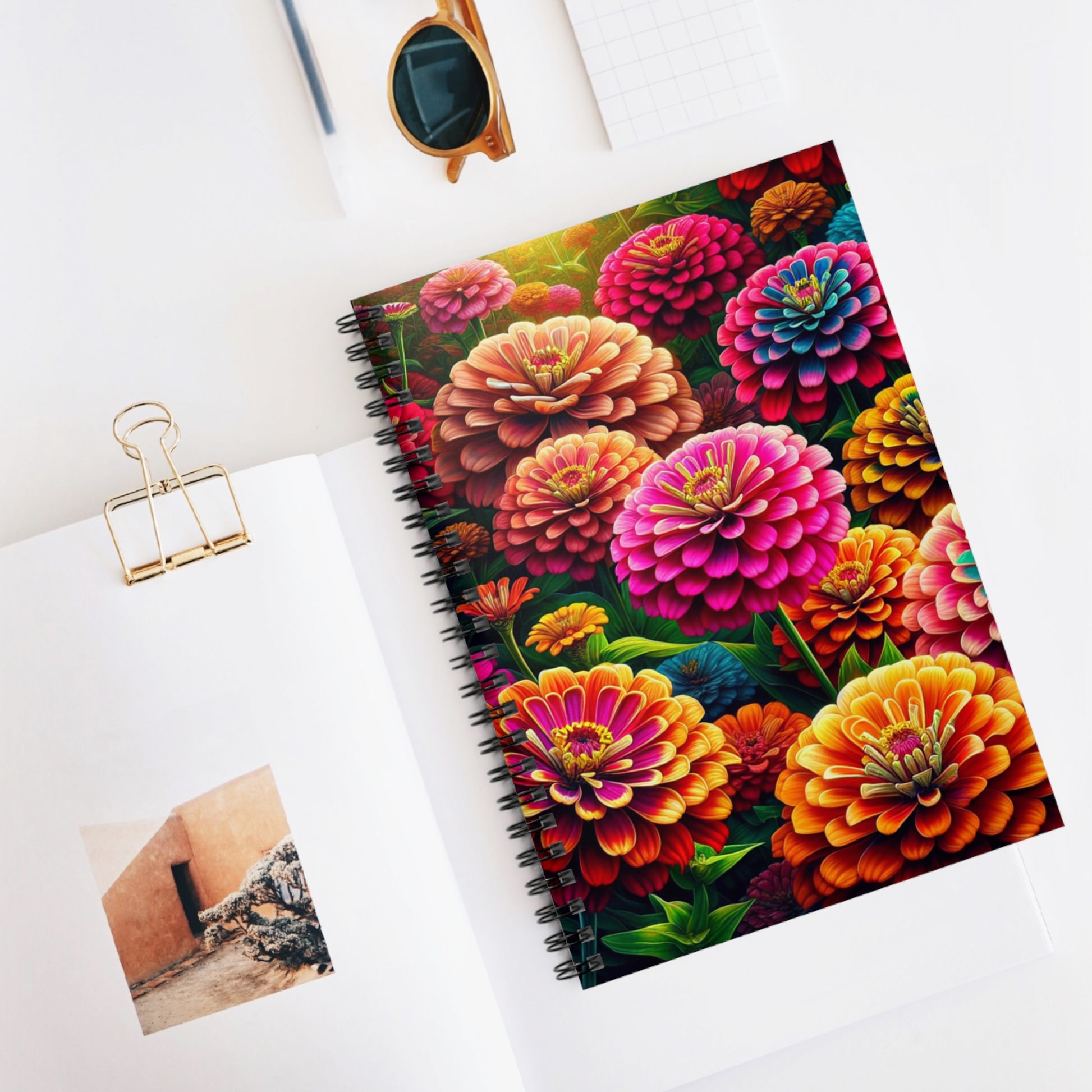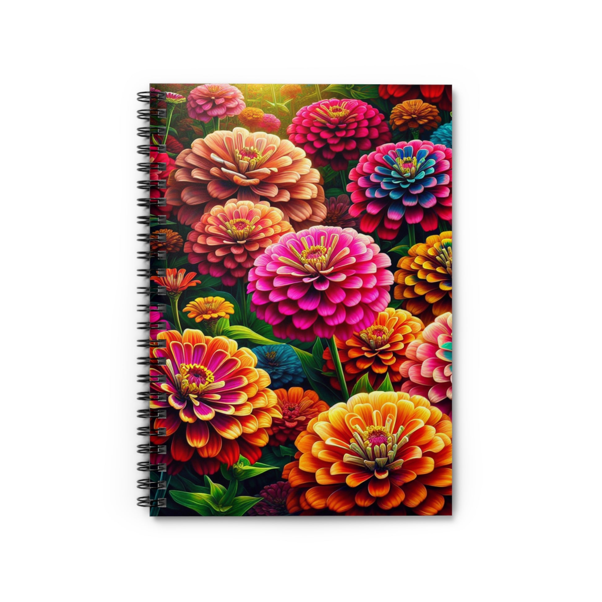 Este cuaderno presenta un hermoso diseño de flores de zinnia, que transmite una vibra vibrante y fresca. Perfecto para amantes de la naturaleza o para quienes aprecian los estampados florales, es ideal para escribir un diario, tomar notas o dibujar. Puede ser una gran adición a la colección de papelería de alguien, un regalo ideal para cumpleaños, el Día de la Madre o como un artículo esencial para la vuelta al cole.