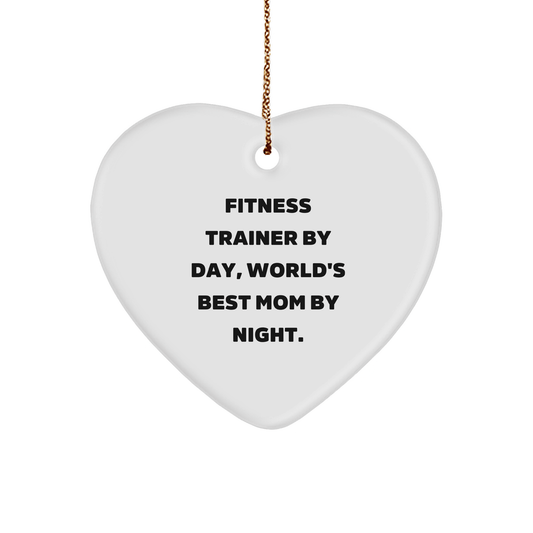 Fitness Trainer Gifts from Family - Funny Heart Ornament By Day, World's Best Mom By Night.
