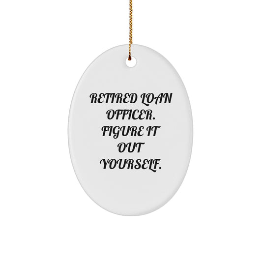 Funny Loan Officer Gifts from Friends, 'Retired Loan Officer. Figure It Out Yourself.' Oval Ornament for Christmas