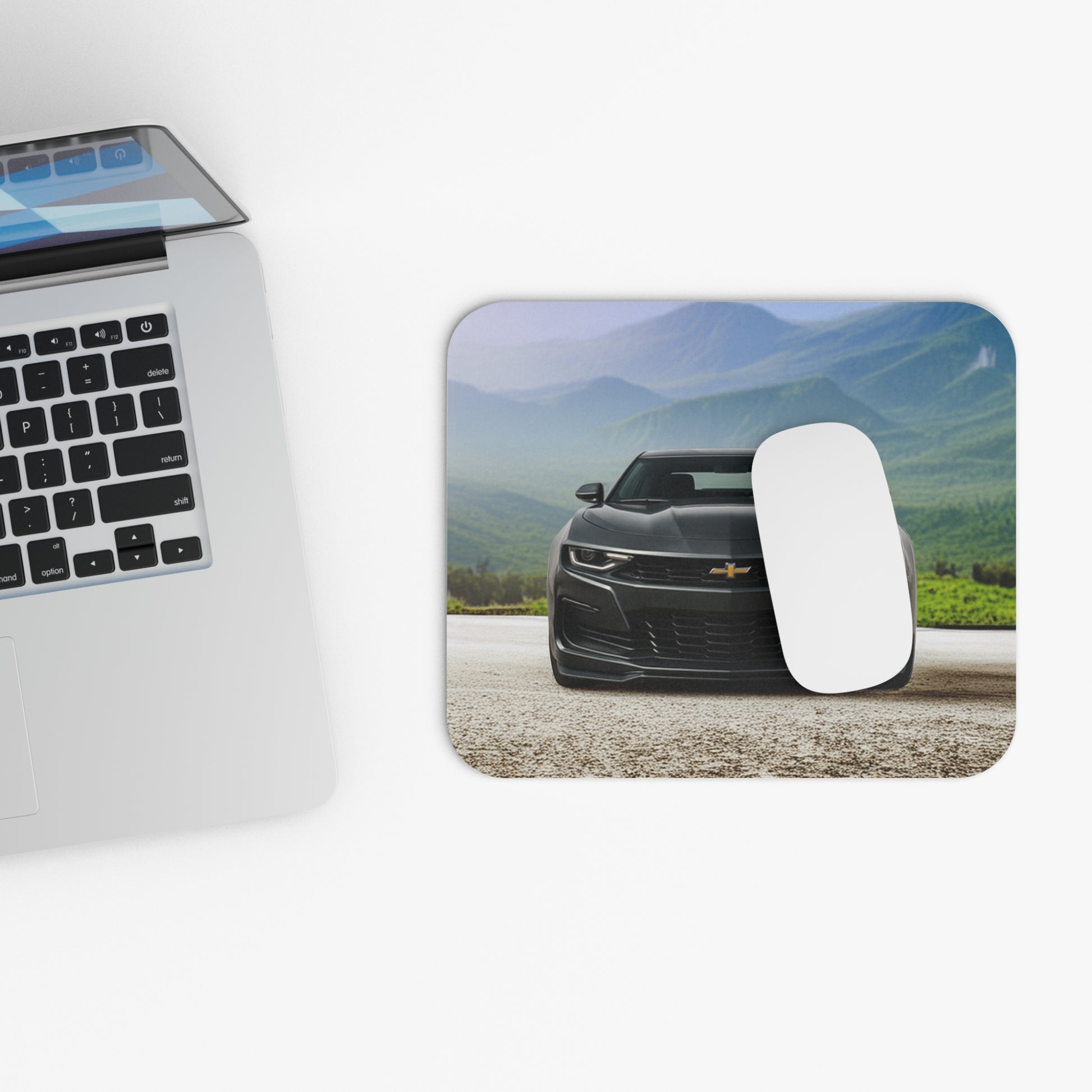 Rev up your workspace with the Chevy Camaro Mouse Pad, an ideal gift for any muscle car enthusiast or Chevy fan. This striking mouse pad features a captivating image of a dark gray Camaro set against a breathtaking mountain backdrop. Measuring 9" x 8", it's the perfect addition to any home office, gaming setup, or workplace desk, adding a touch of automotive style and inspiration to your daily tasks.<br><br>
