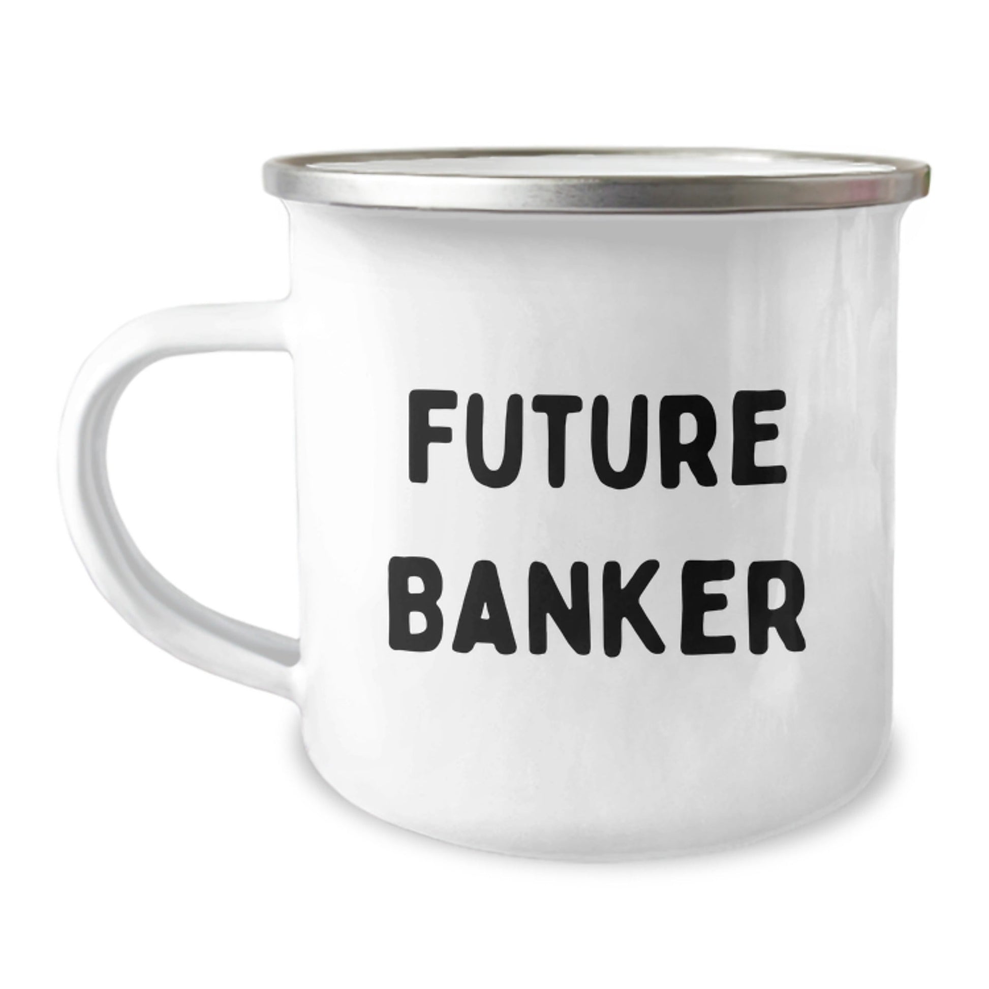 Funny Future Banker Gifts from Friends for Graduation, Camping Mug with Inspirational Quote, 12 oz Stainless Steel with Enamel Finish