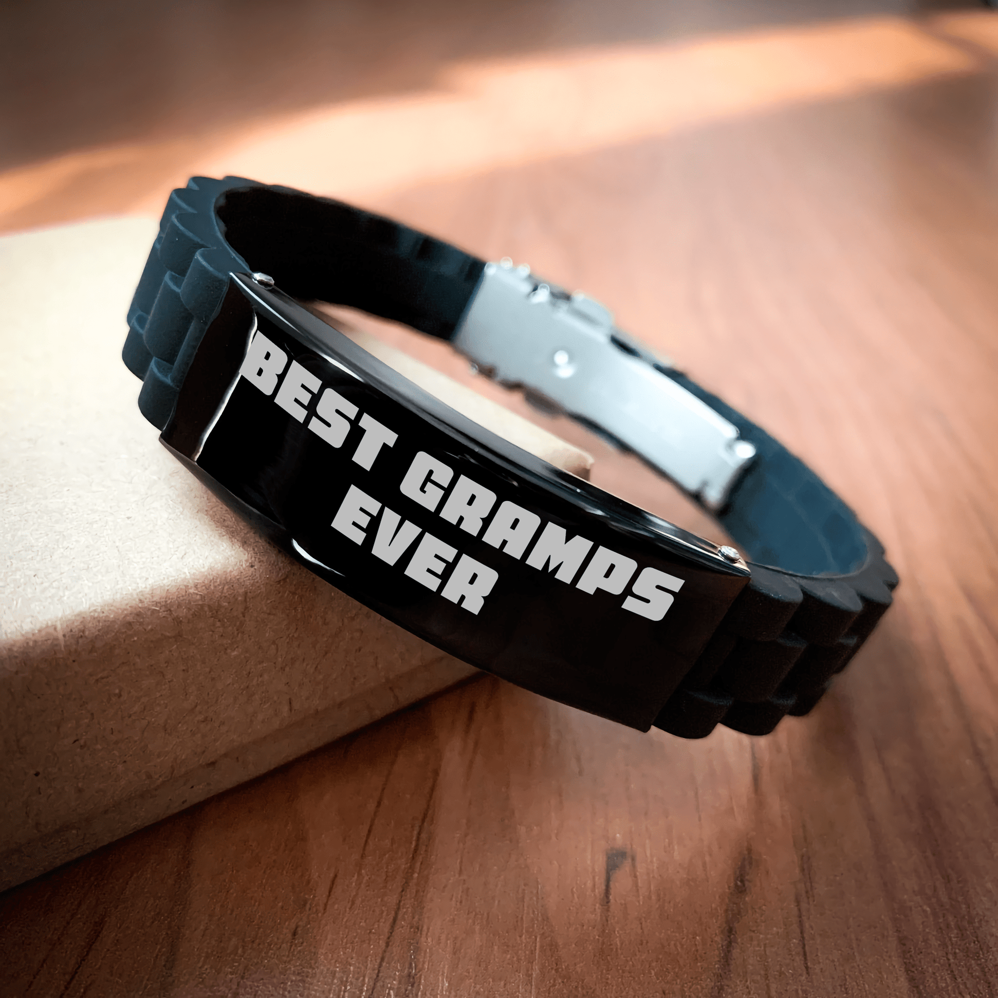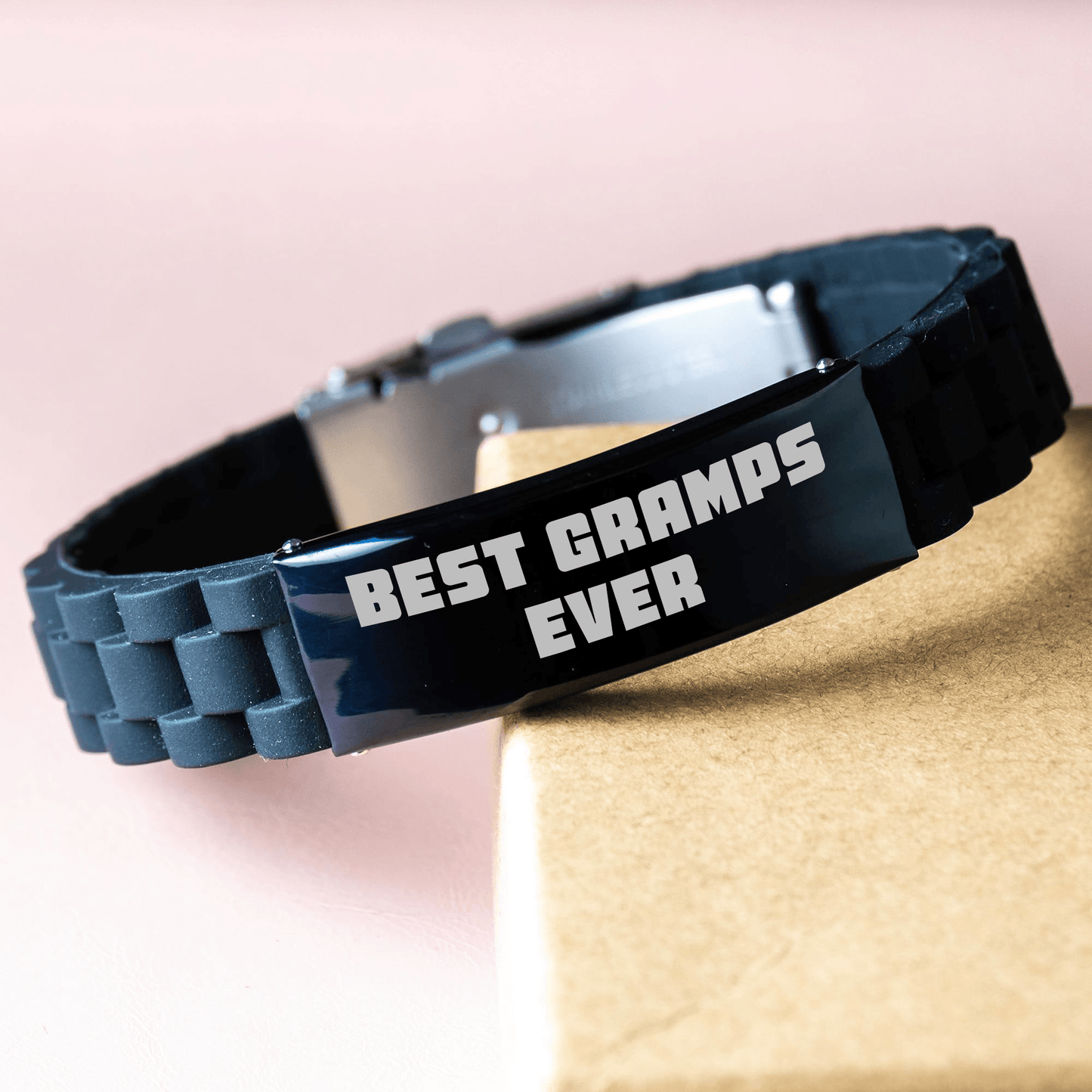 • Experience the best gift for Gramps with our 'Best Gramps Ever' Glidelock Clasp Bracelet, designed to provide a stylish and thoughtful way to show appreciation for the special men in your life, with its high-quality silver, black stainless steel, and silicone construction ensuring long-lasting durability and resistance to rust, corrosion, and tarnishing.