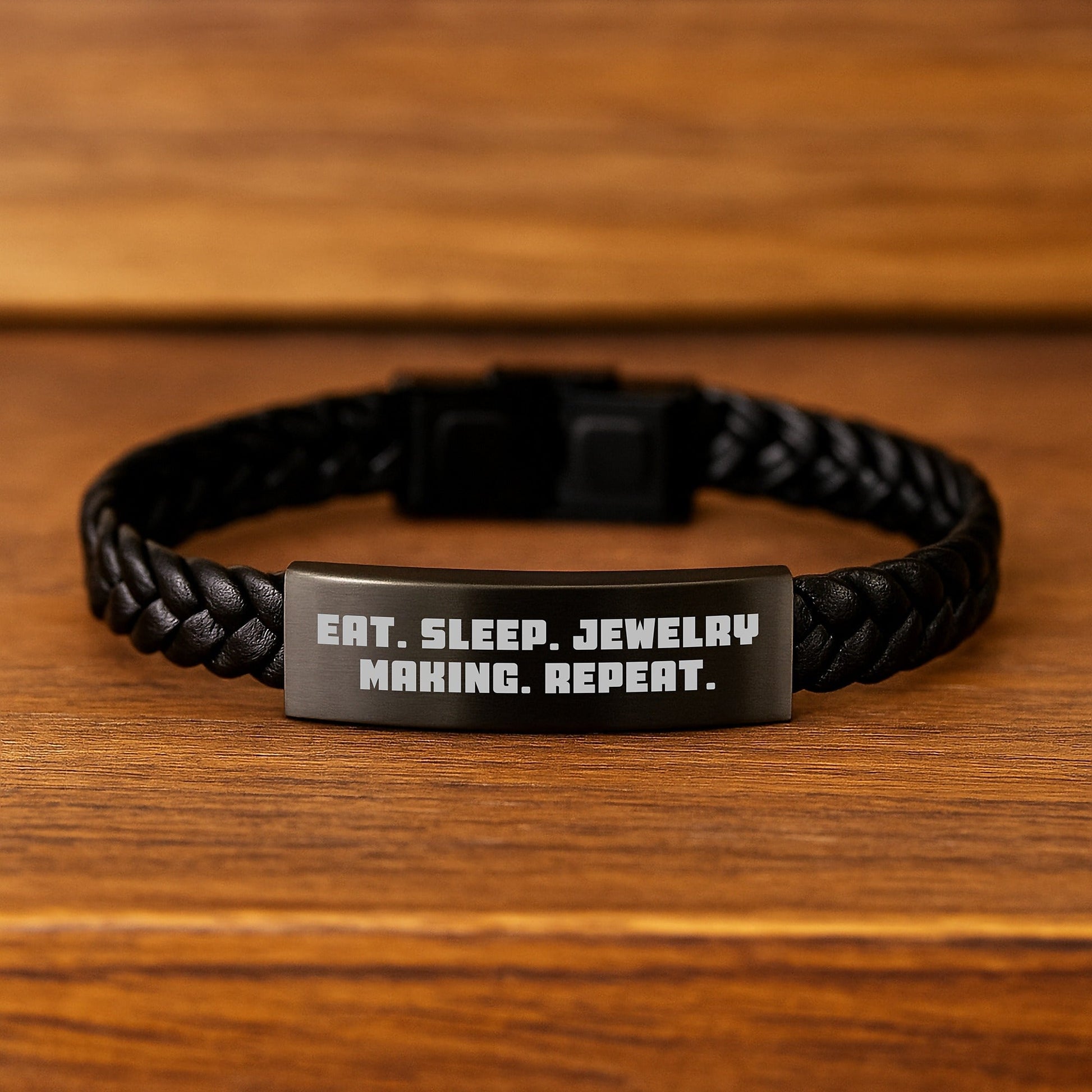 Whether you're the one who loves Jewelry Making or you're gifting it to someone who does, this Interlaced Leather Bracelet is a thoughtful gift that shows you care about their passion. The quote 'Eat. Sleep. Jewelry Making. Repeat.' is a hilarious and relatable phrase that Jewelry Making enthusiasts will surely appreciate. So, why not get one for yourself or gift it to someone who loves Jewelry Making as much as you do? Make them feel special and acknowledged their love for Jewelry Making.