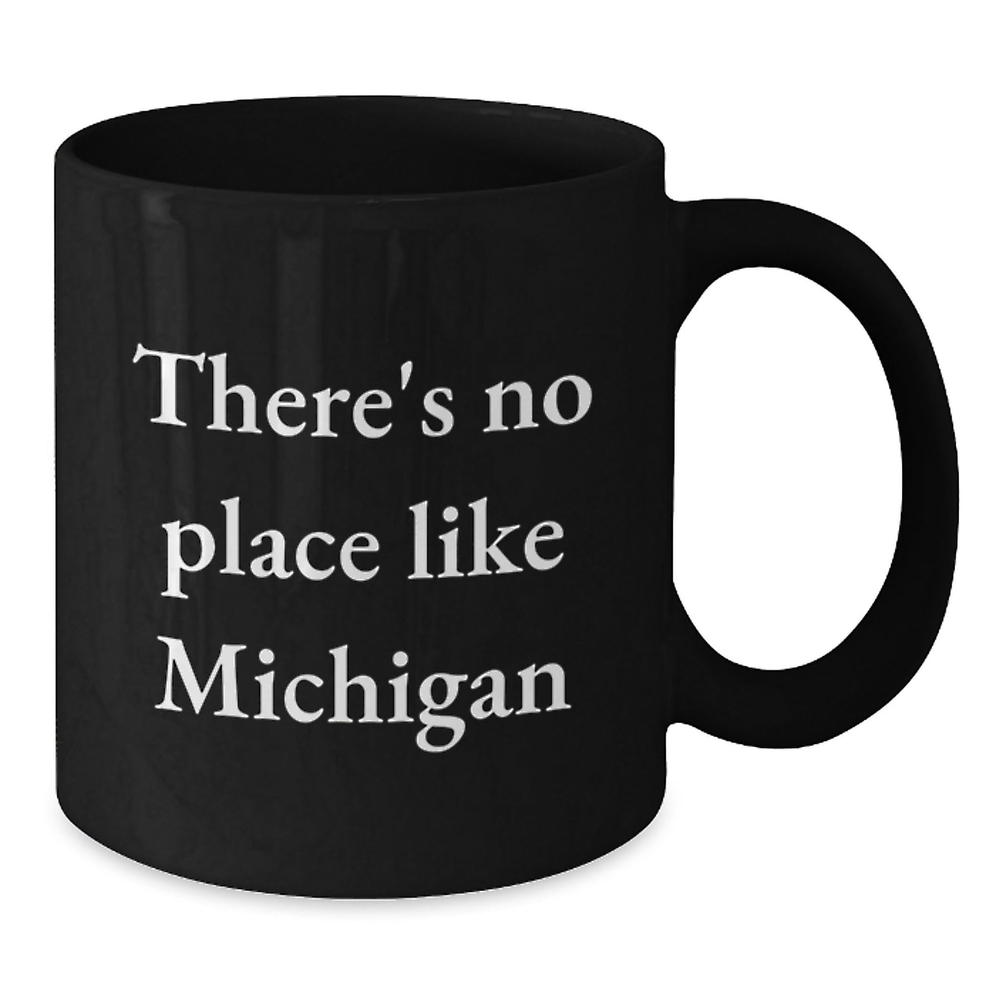 Funny Michigan Gifts for Friends from Michigan - Birthday Unique Gifts for Michigan Lovers - Black Coffee Mug with 'There's No Place Like Michigan' Quote