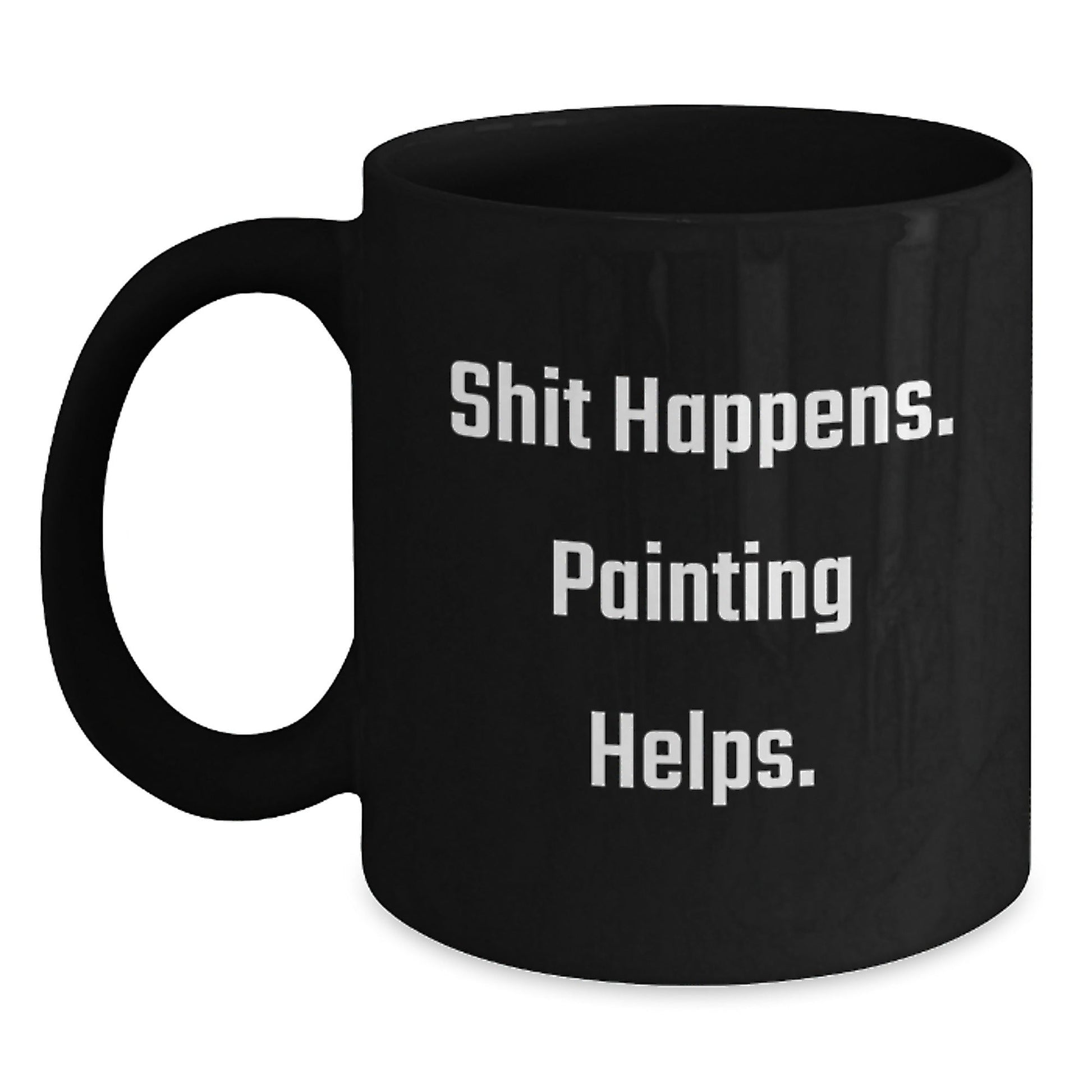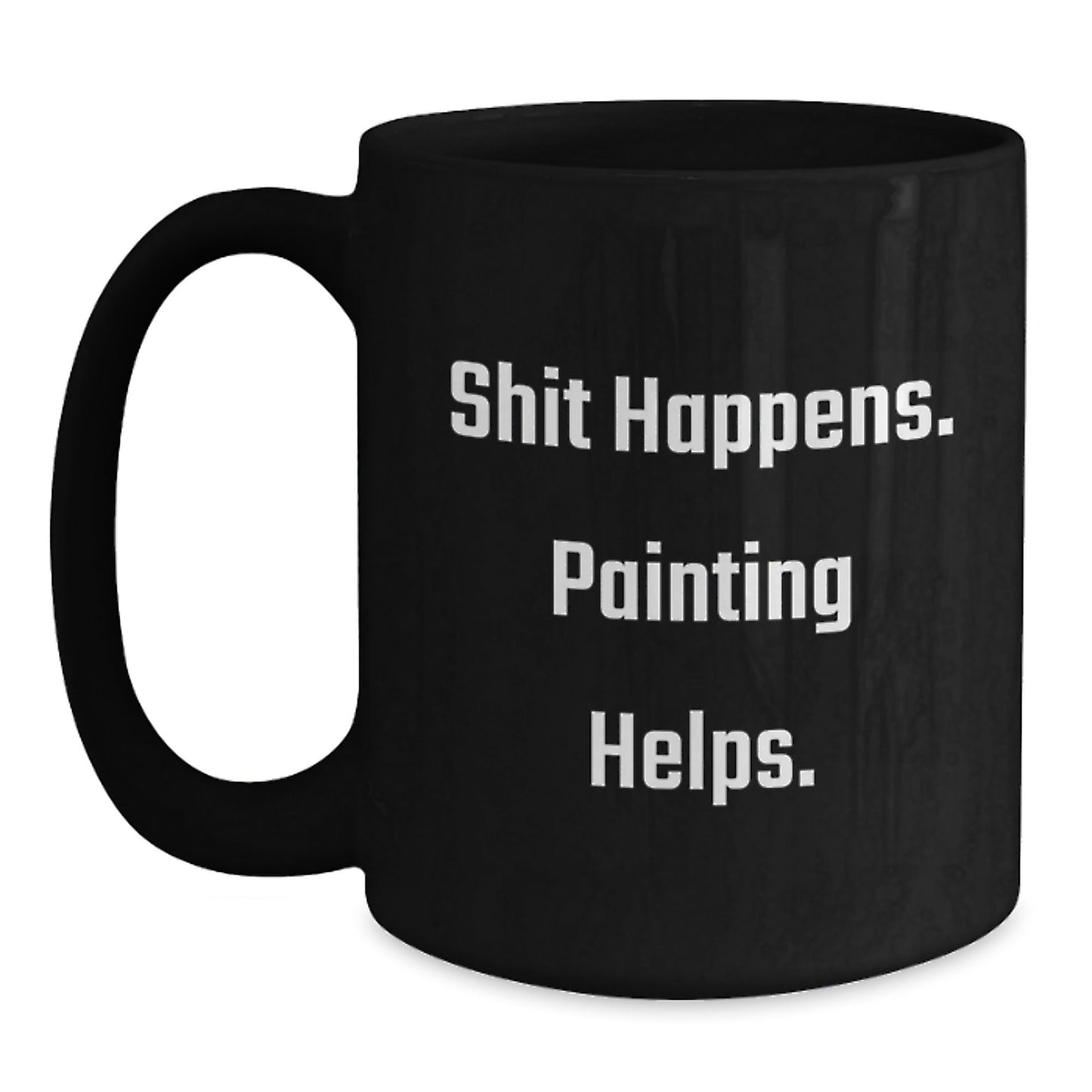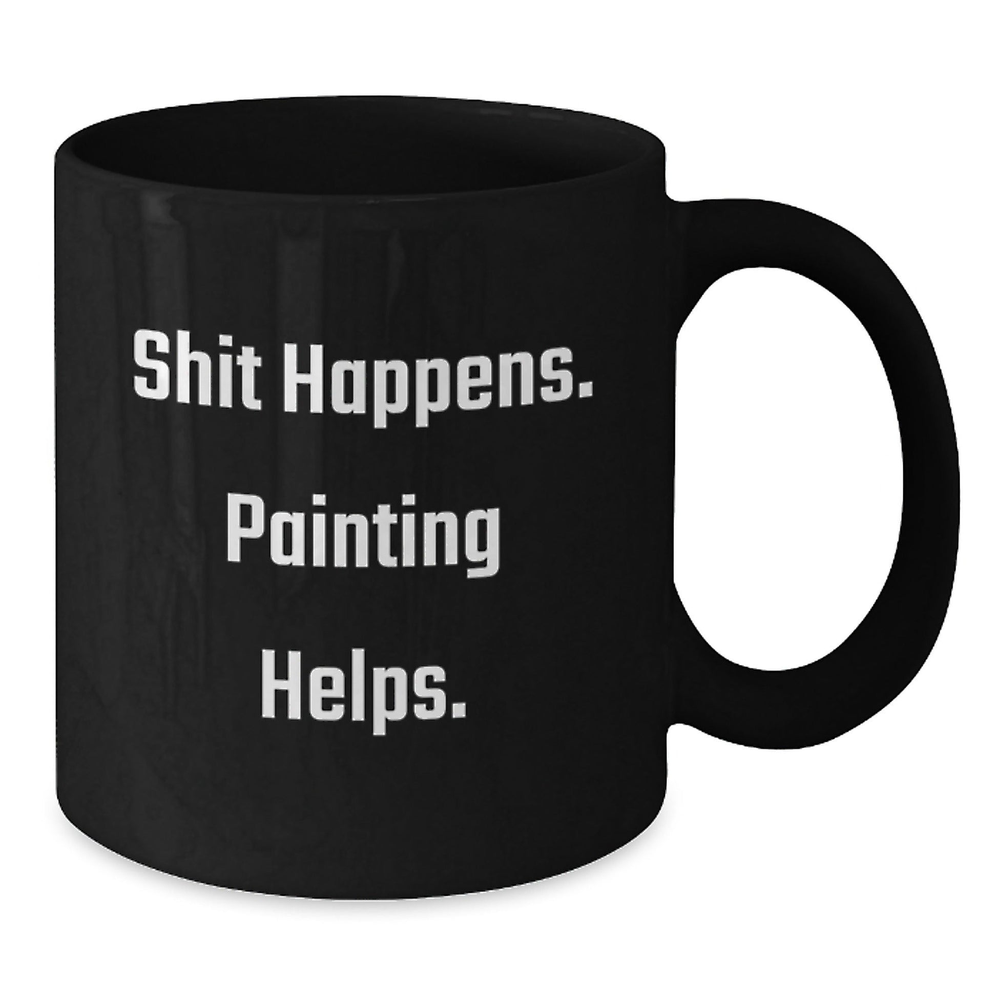 • Unique gift idea for Painting enthusiasts, featuring the quote 'Shit Happens. Painting Helps.' on a high-quality ceramic Black Coffee Mug