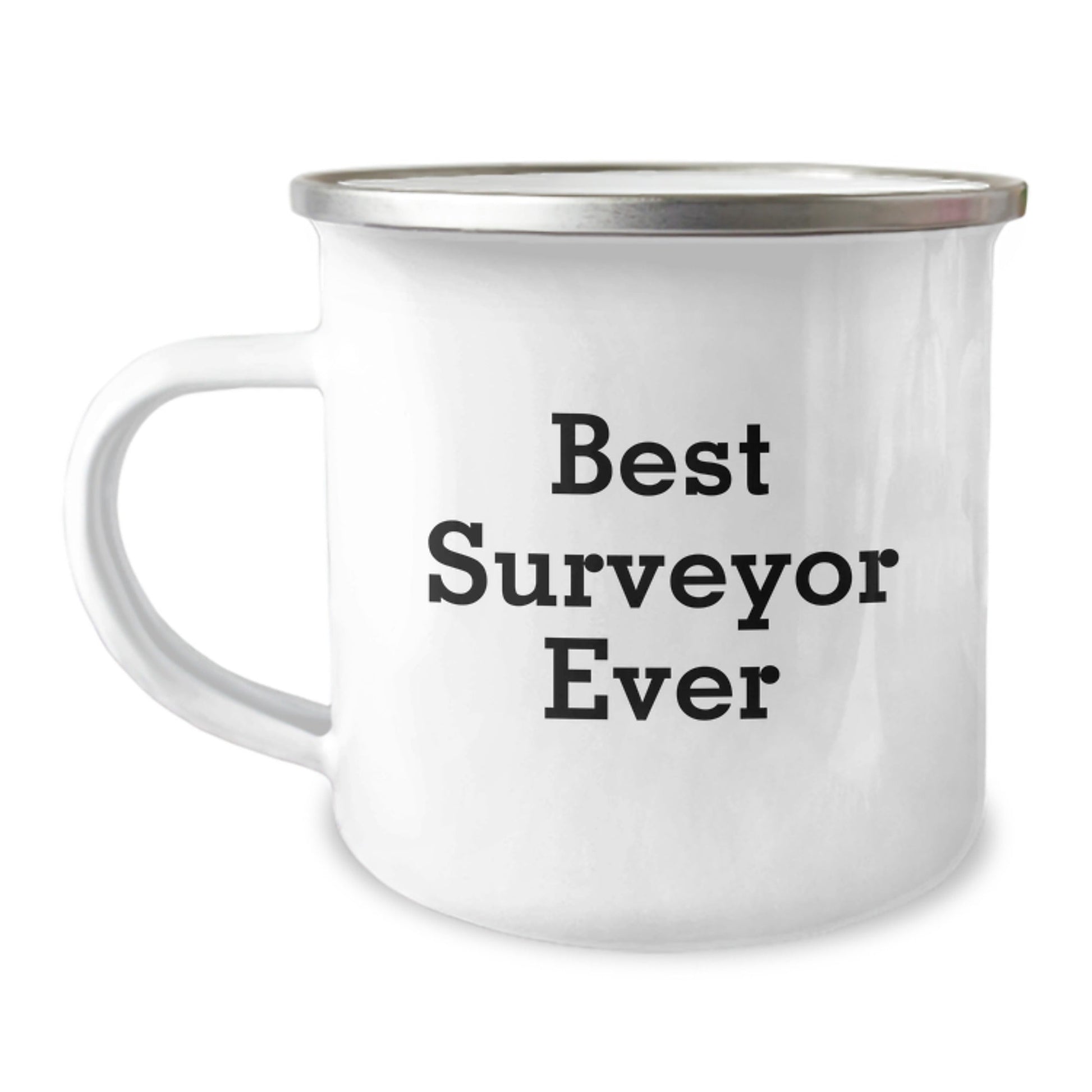 Funny Surveyor Gifts from Friends - Best Surveyor Ever Inscription on 12 oz Stainless Steel Camping Mug for Surveyor Graduation Unique Gifts