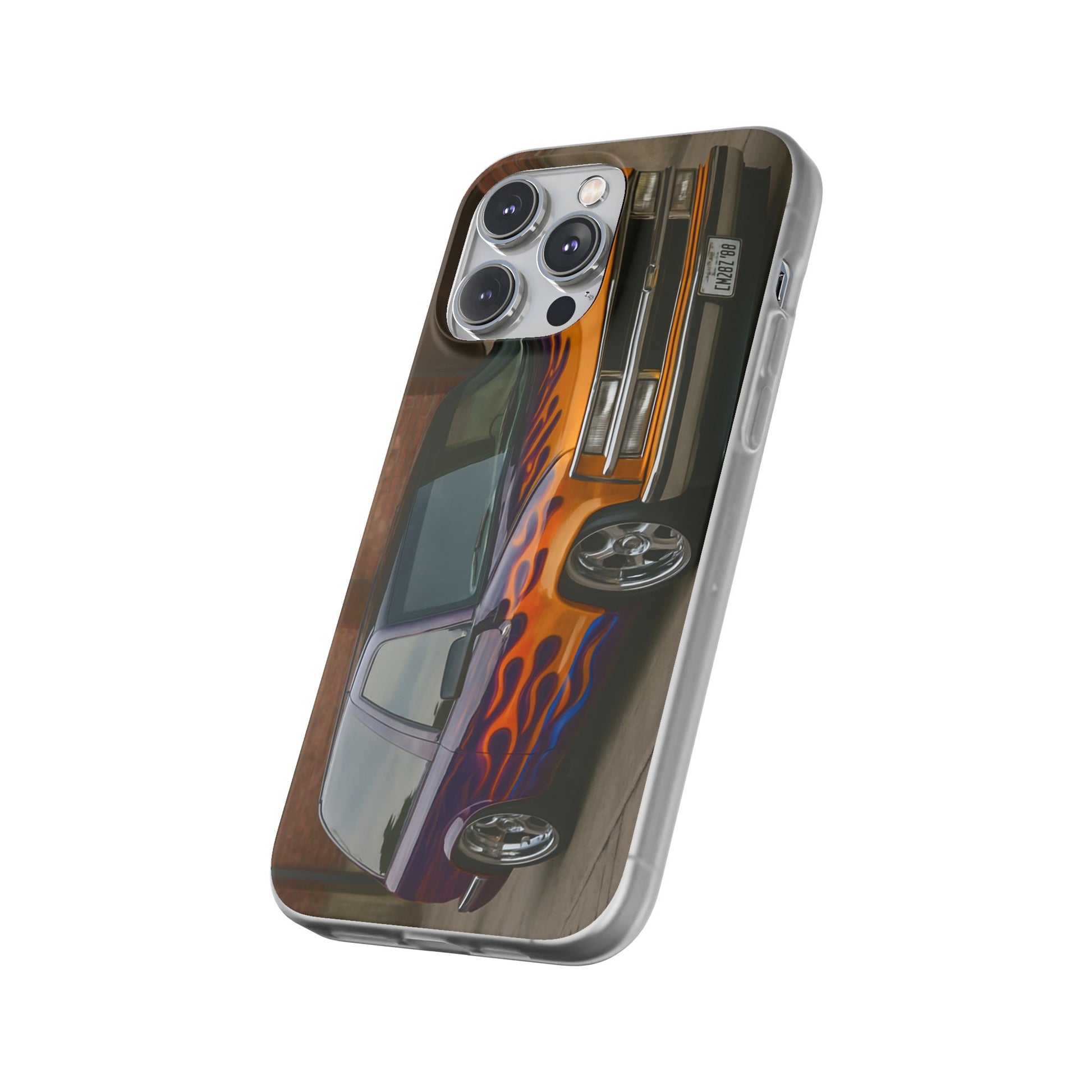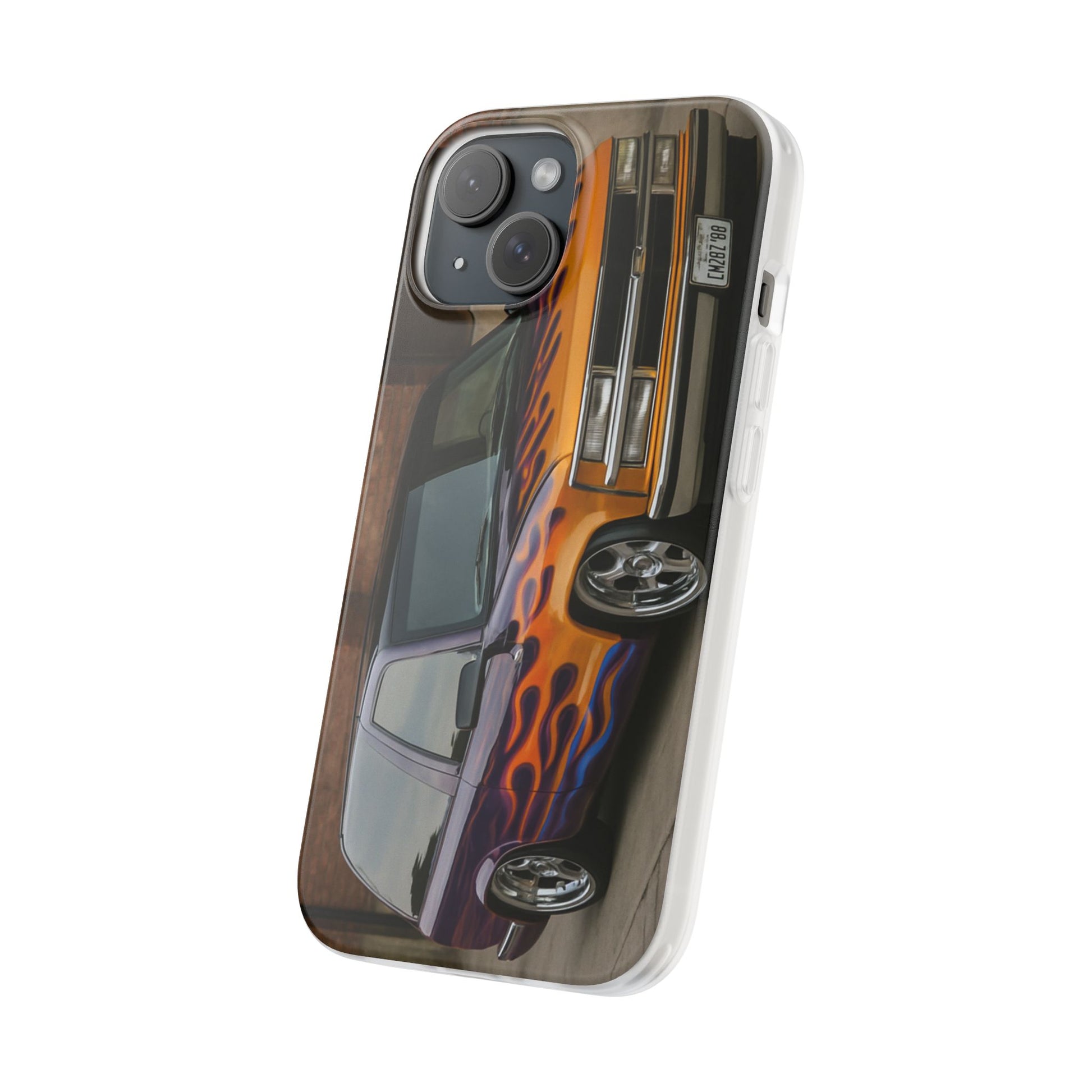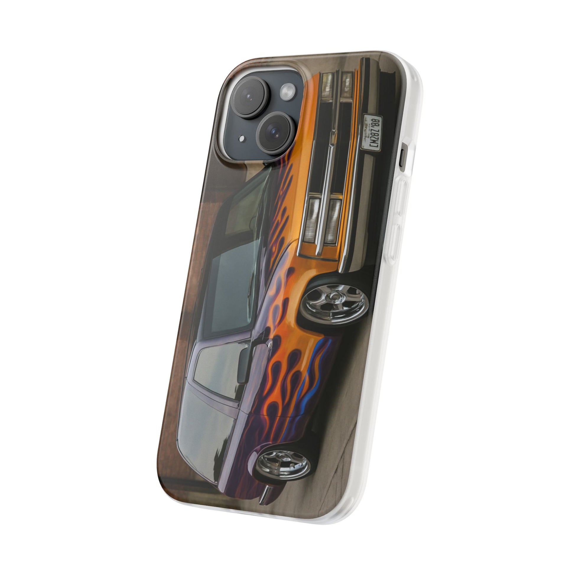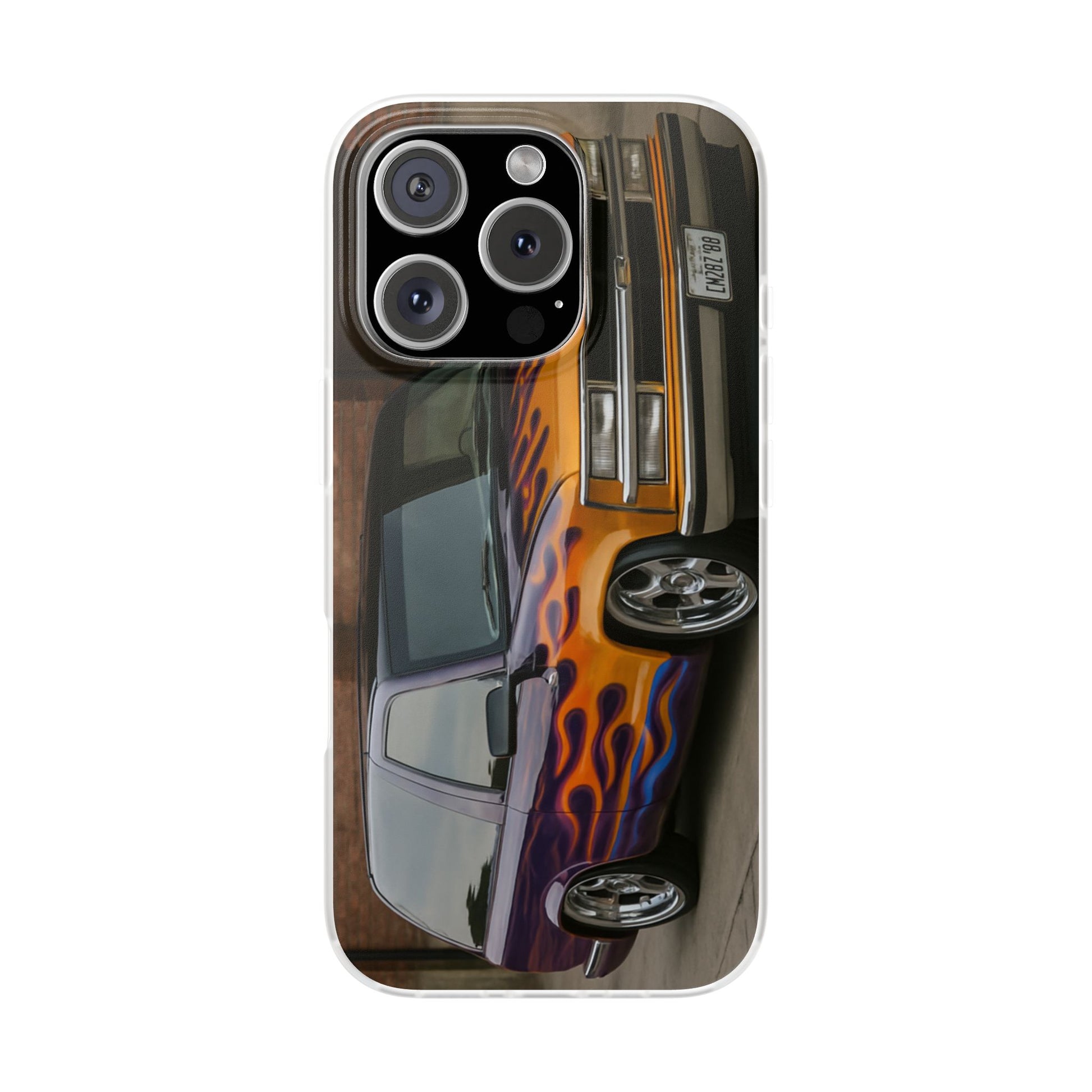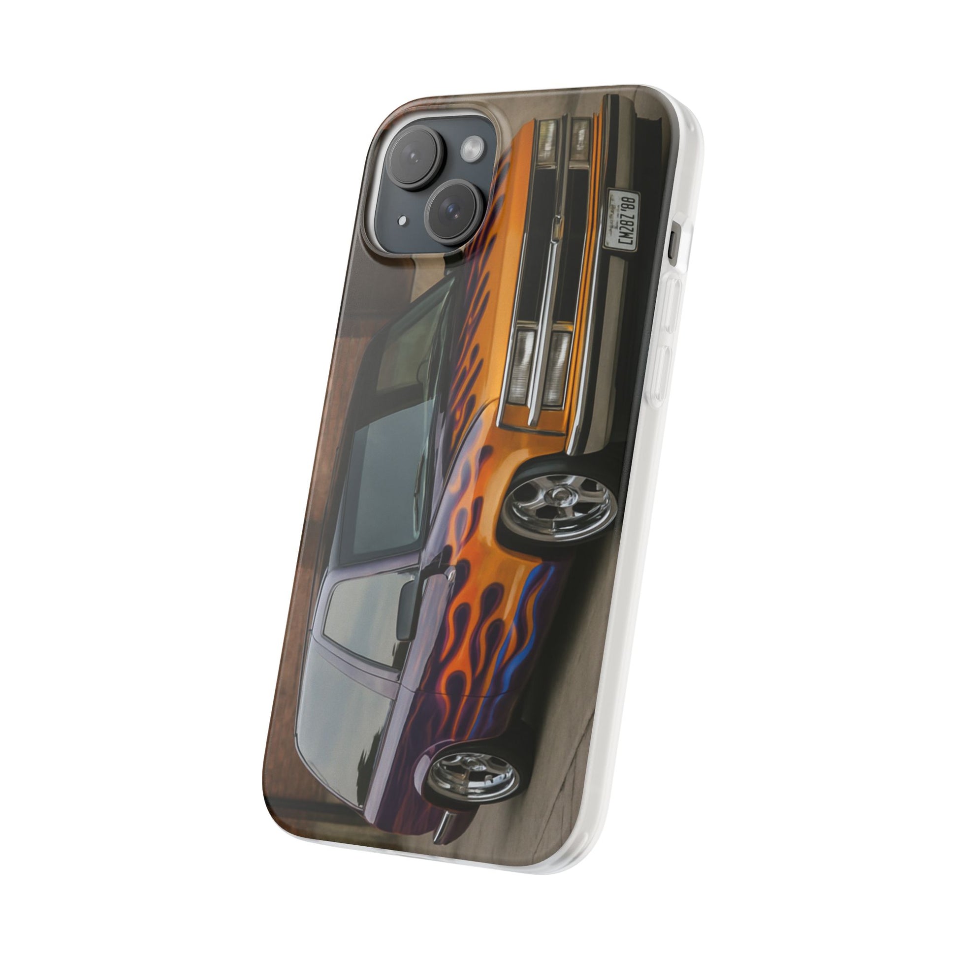 A 1996 Chevy Tahoe with Flames design on a flexible and impact-absorbing phone case. Gives off a retro and edgy vibe, perfect for car enthusiasts and those who love bold designs. Ideal for adding a pop of color and personality to your everyday phone accessory. Great for birthdays, Father's Day, or any occasion to gift a unique and stylish phone case.