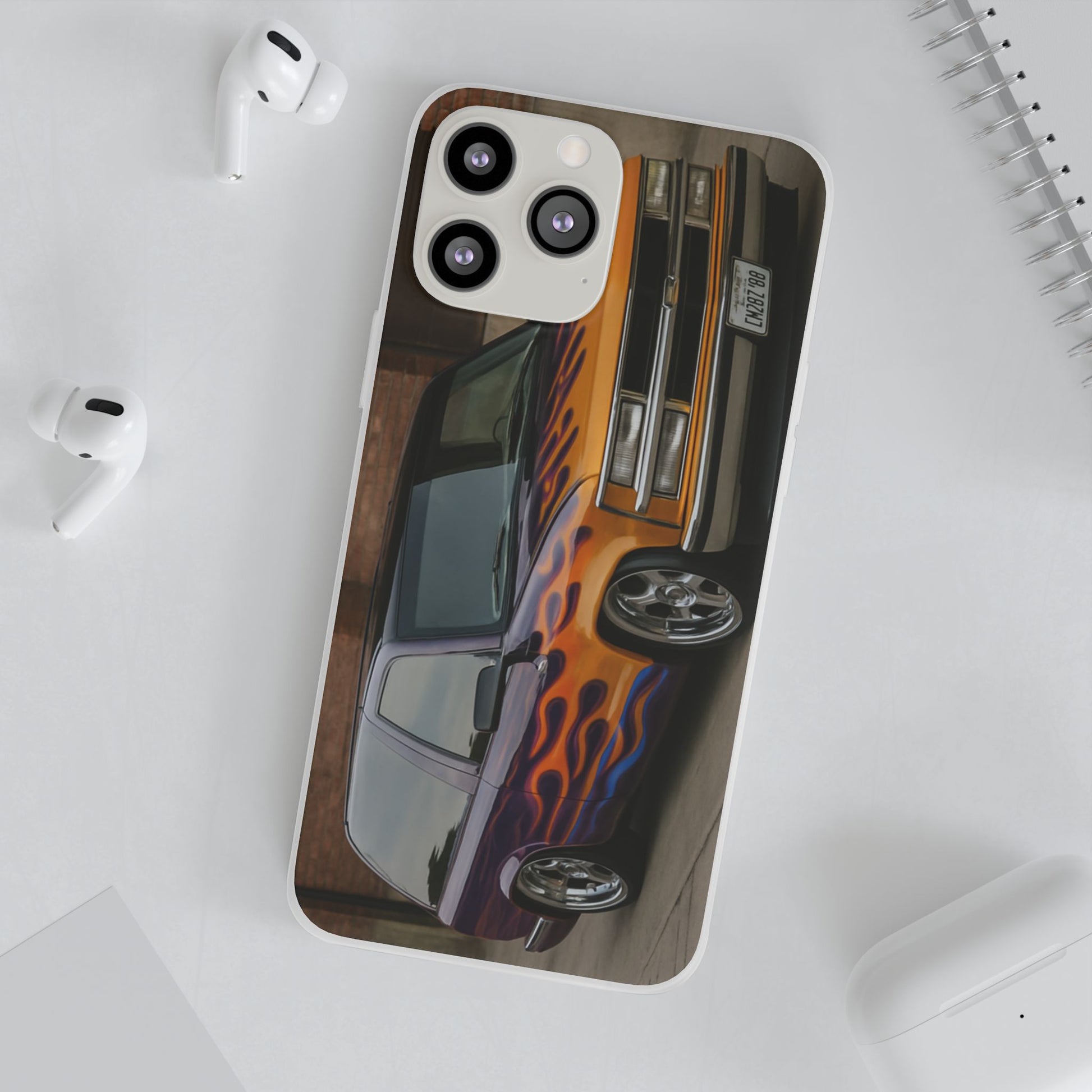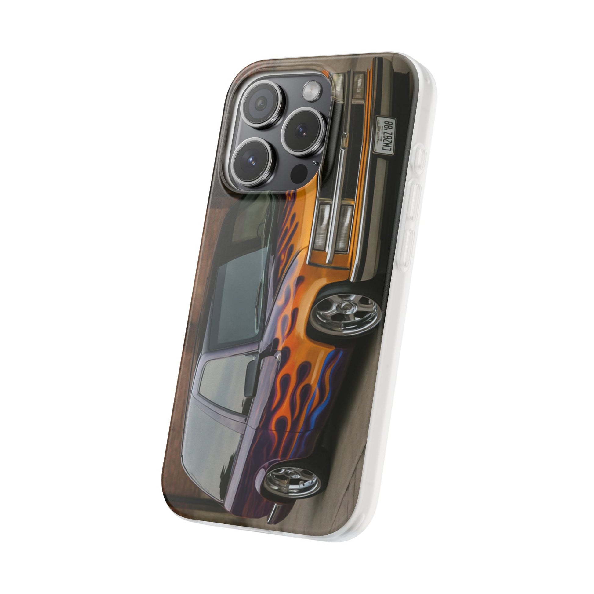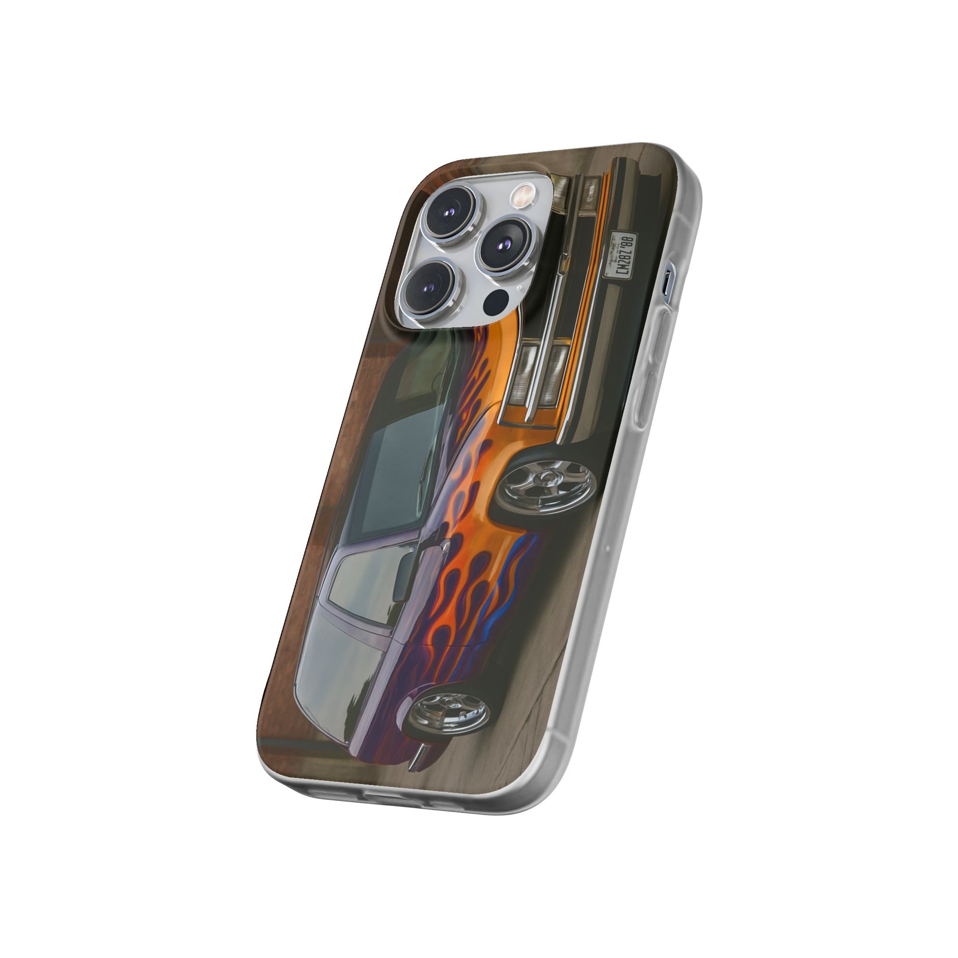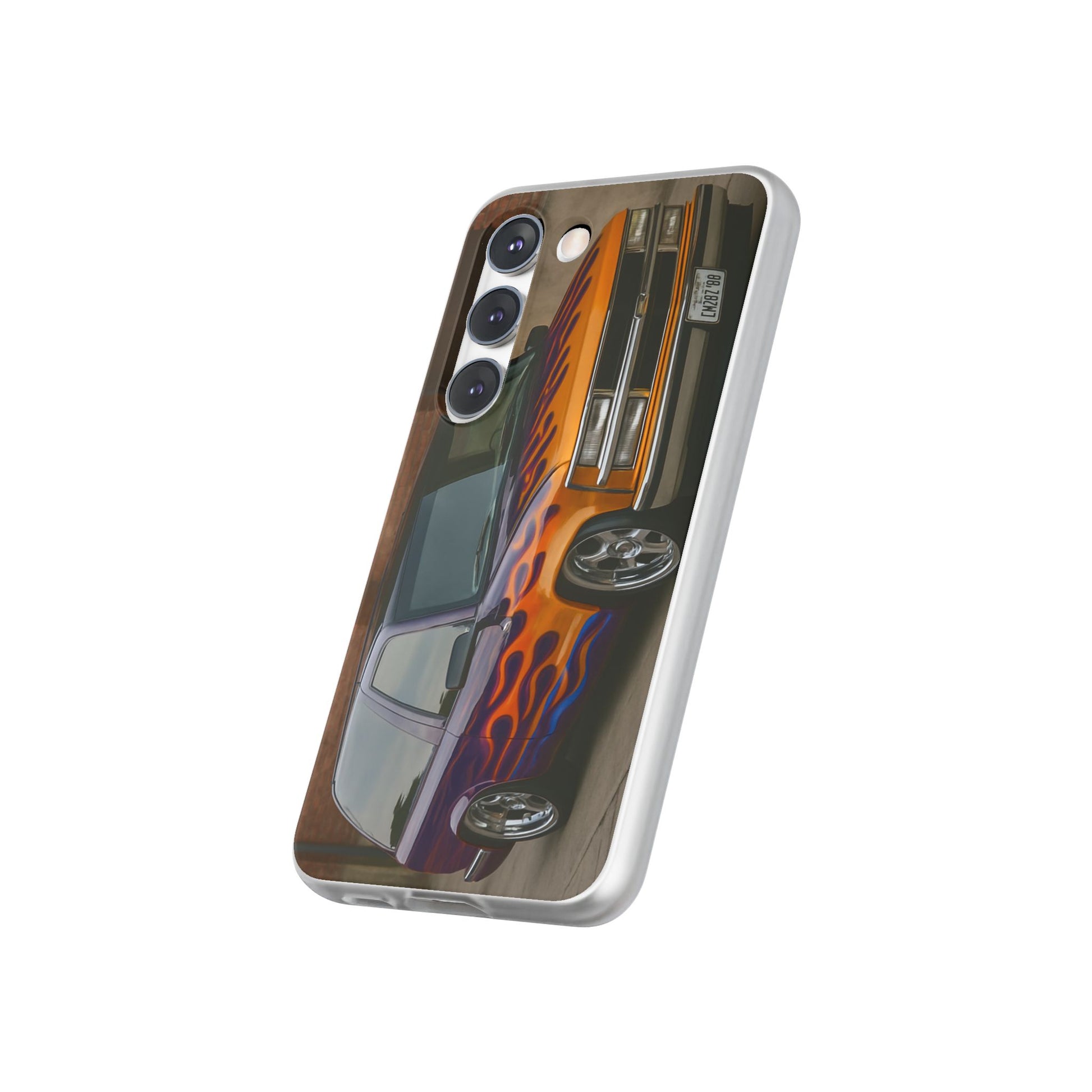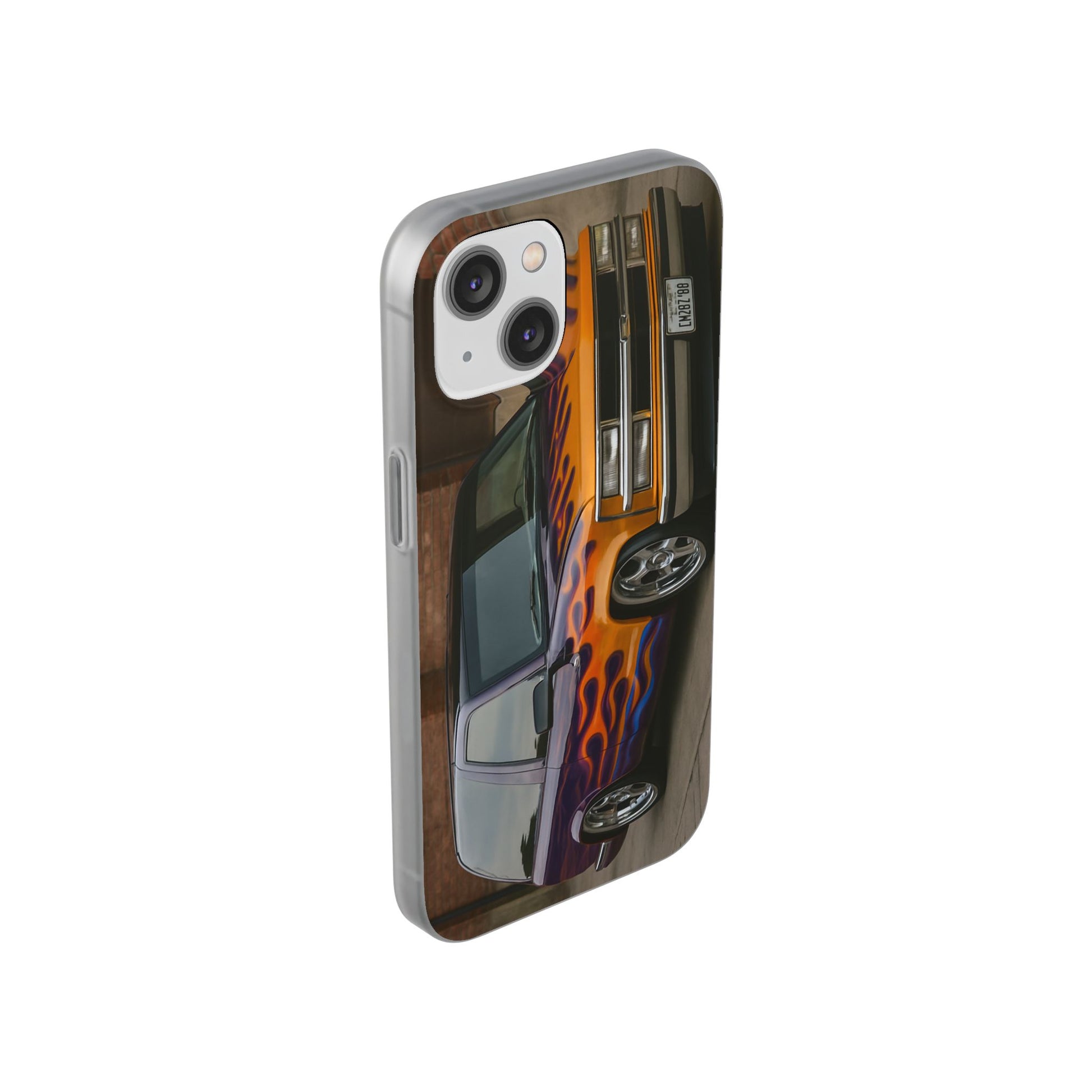 A 1996 Chevy Tahoe with Flames design on a flexible and impact-absorbing phone case. Gives off a retro and edgy vibe, perfect for car enthusiasts and those who love bold designs. Ideal for adding a pop of color and personality to your everyday phone accessory. Great for birthdays, Father's Day, or any occasion to gift a unique and stylish phone case.