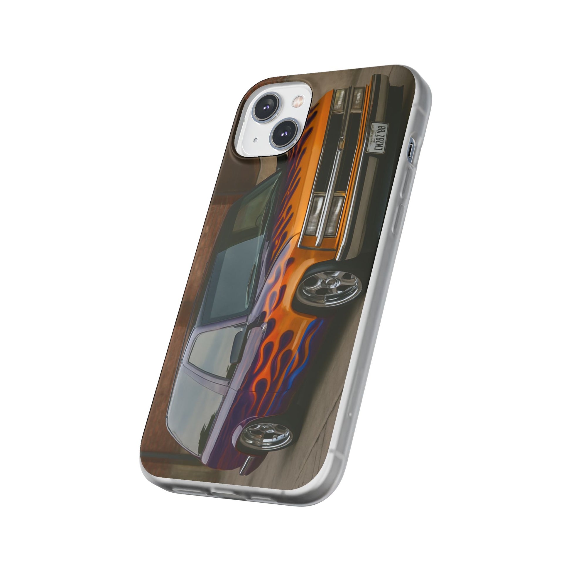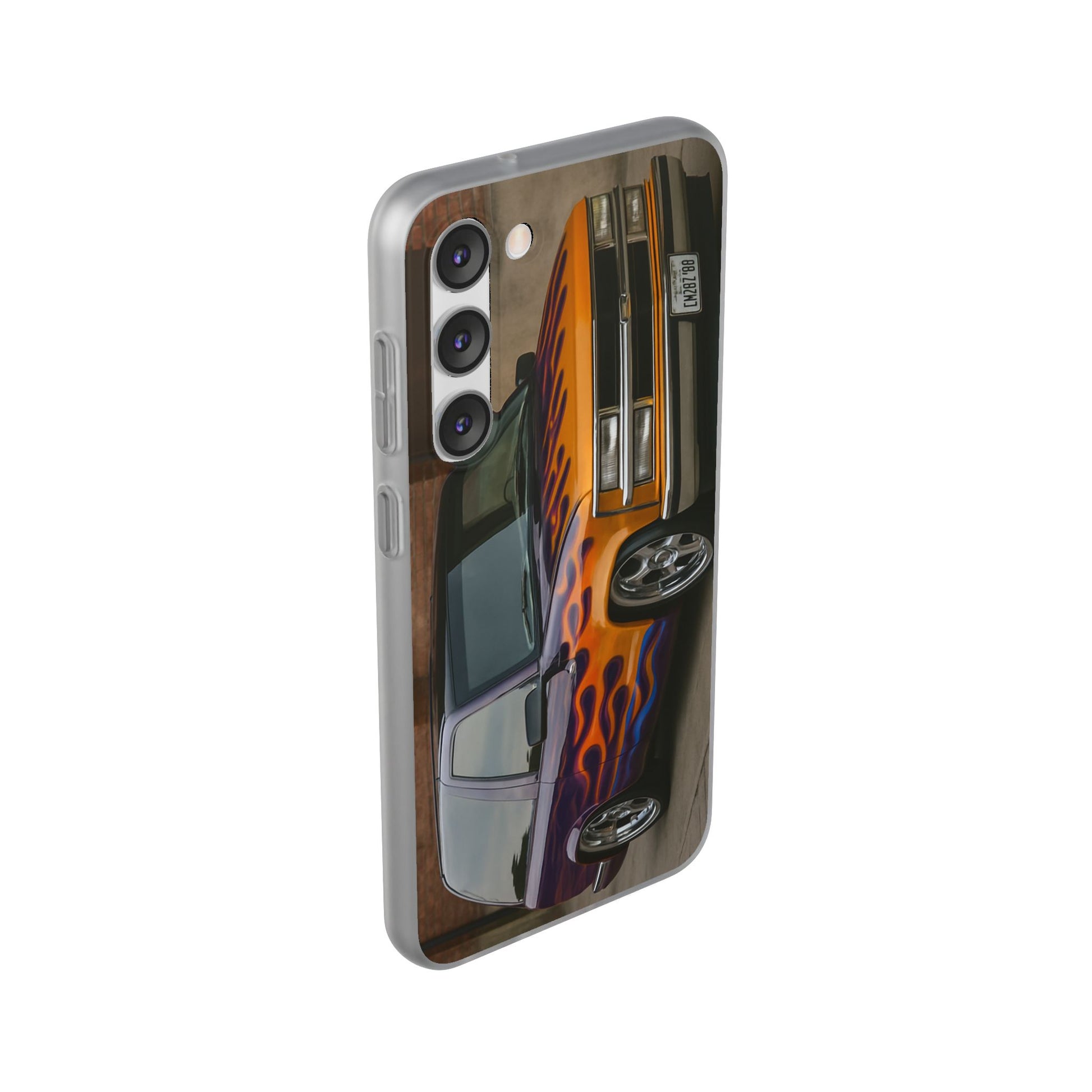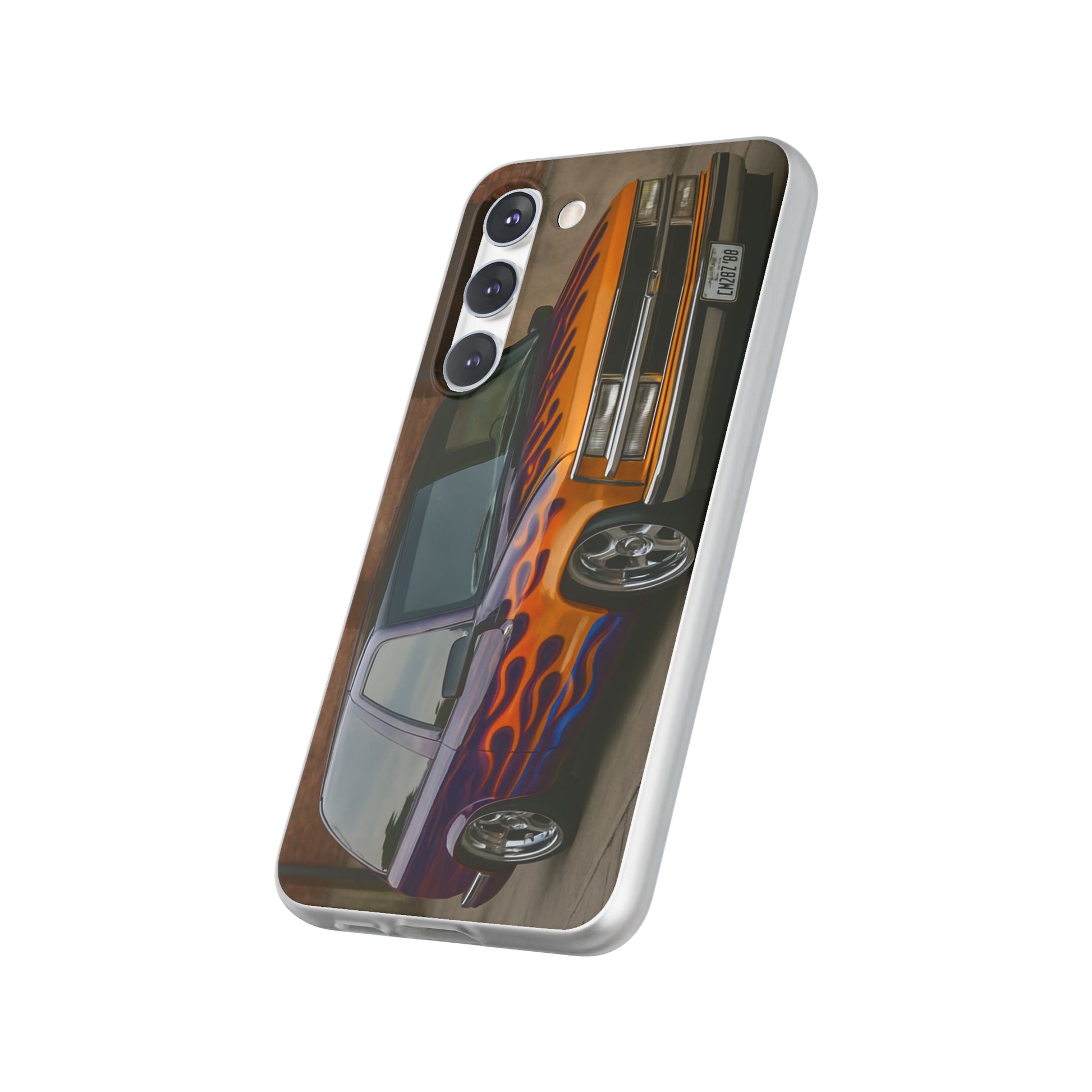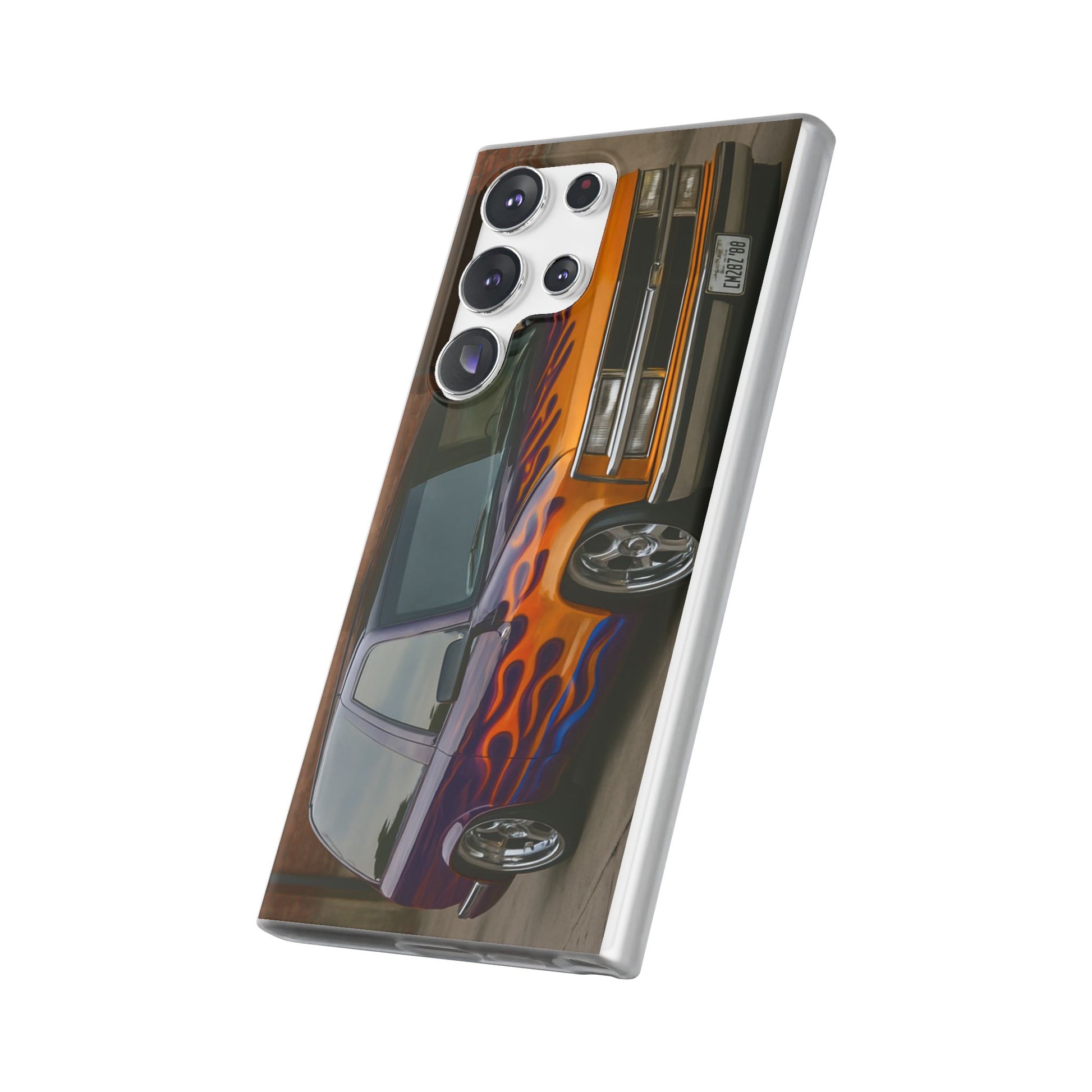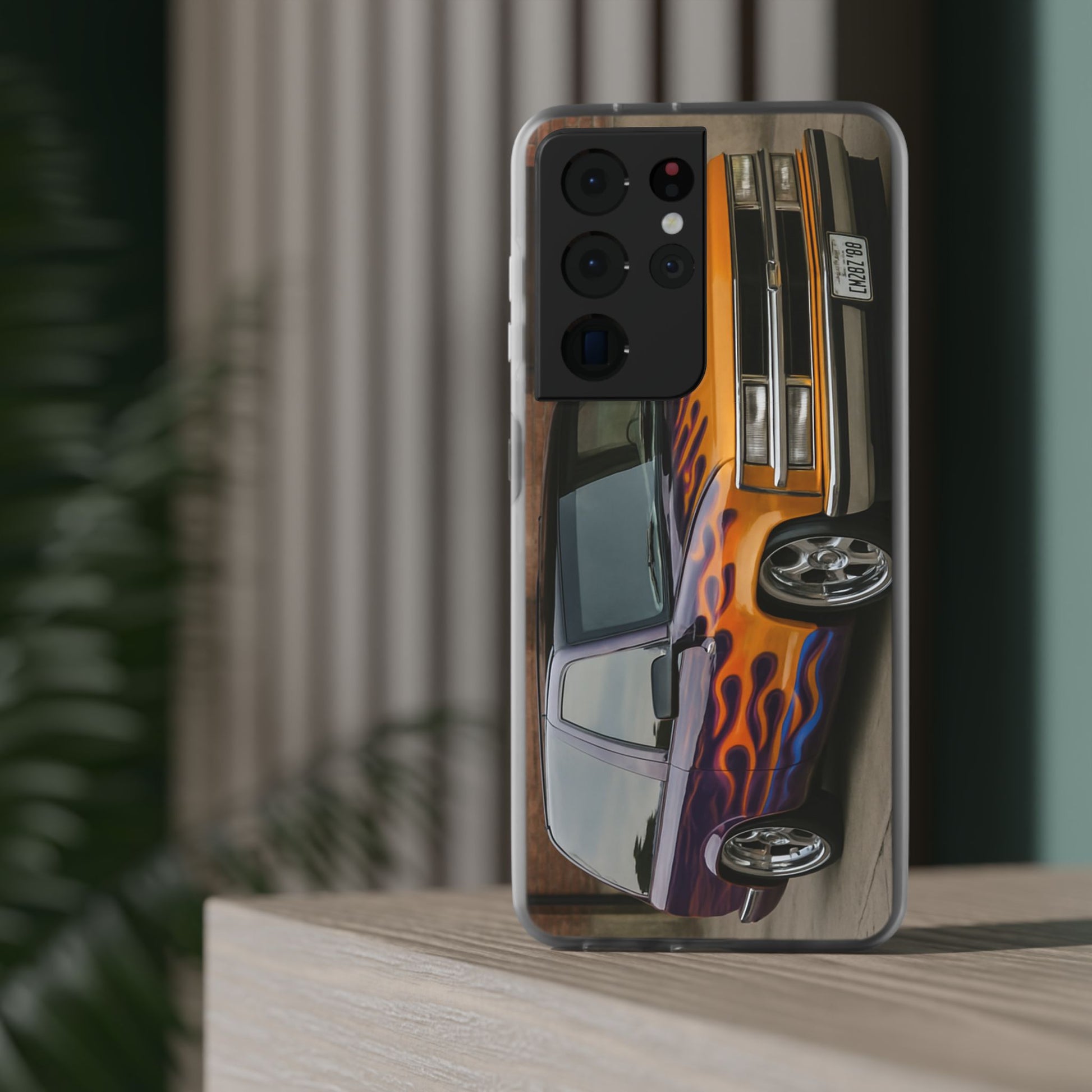 A 1996 Chevy Tahoe with Flames design on a flexible and impact-absorbing phone case. Gives off a retro and edgy vibe, perfect for car enthusiasts and those who love bold designs. Ideal for adding a pop of color and personality to your everyday phone accessory. Great for birthdays, Father's Day, or any occasion to gift a unique and stylish phone case.