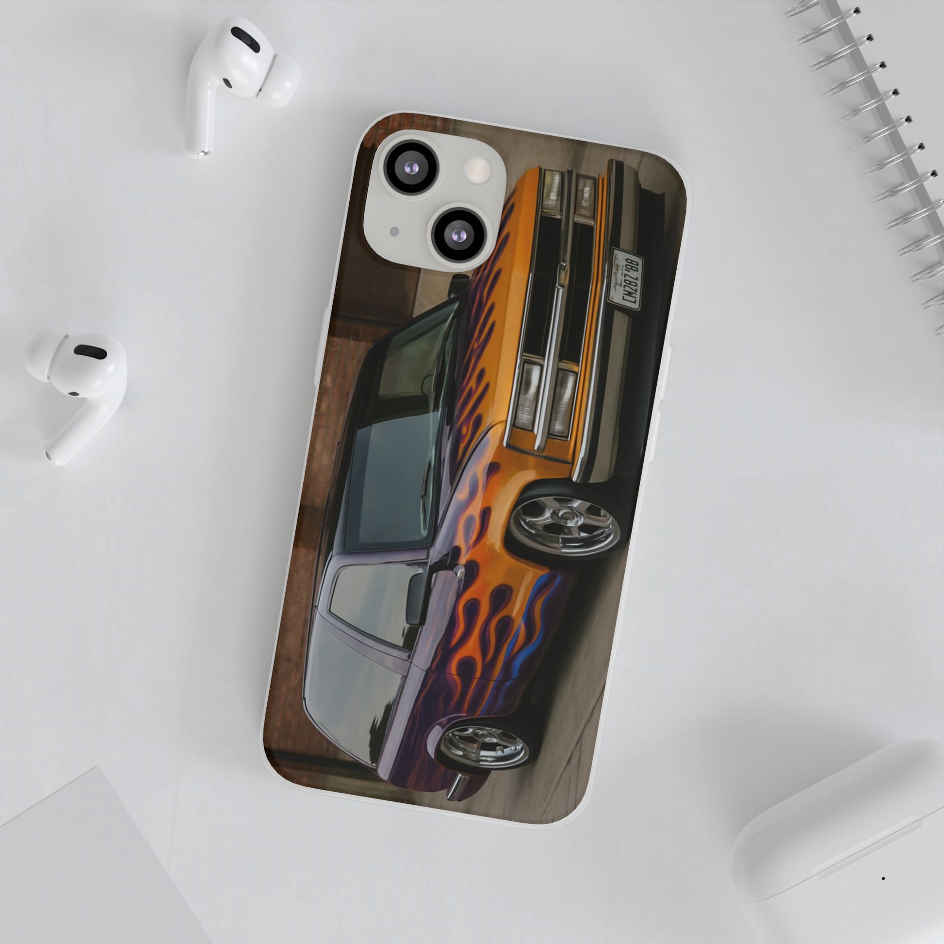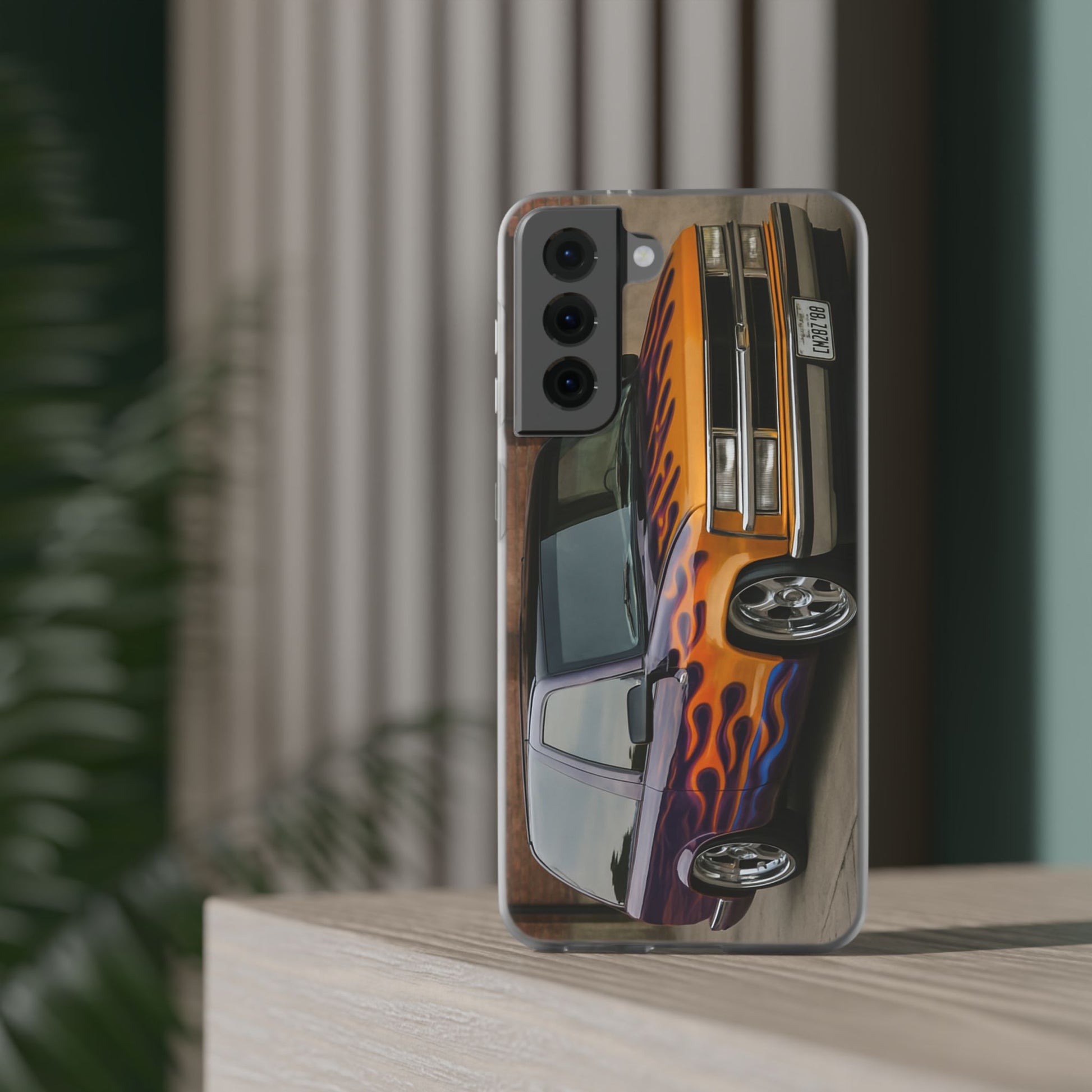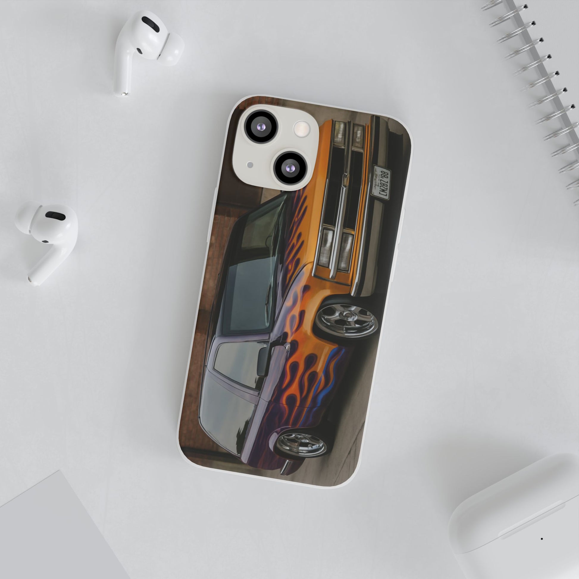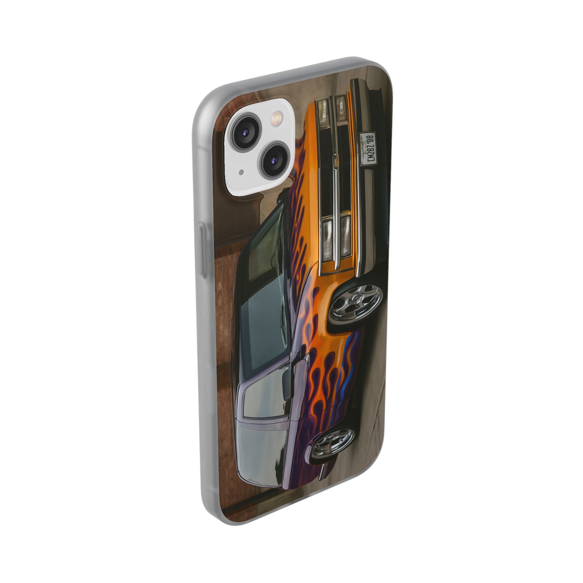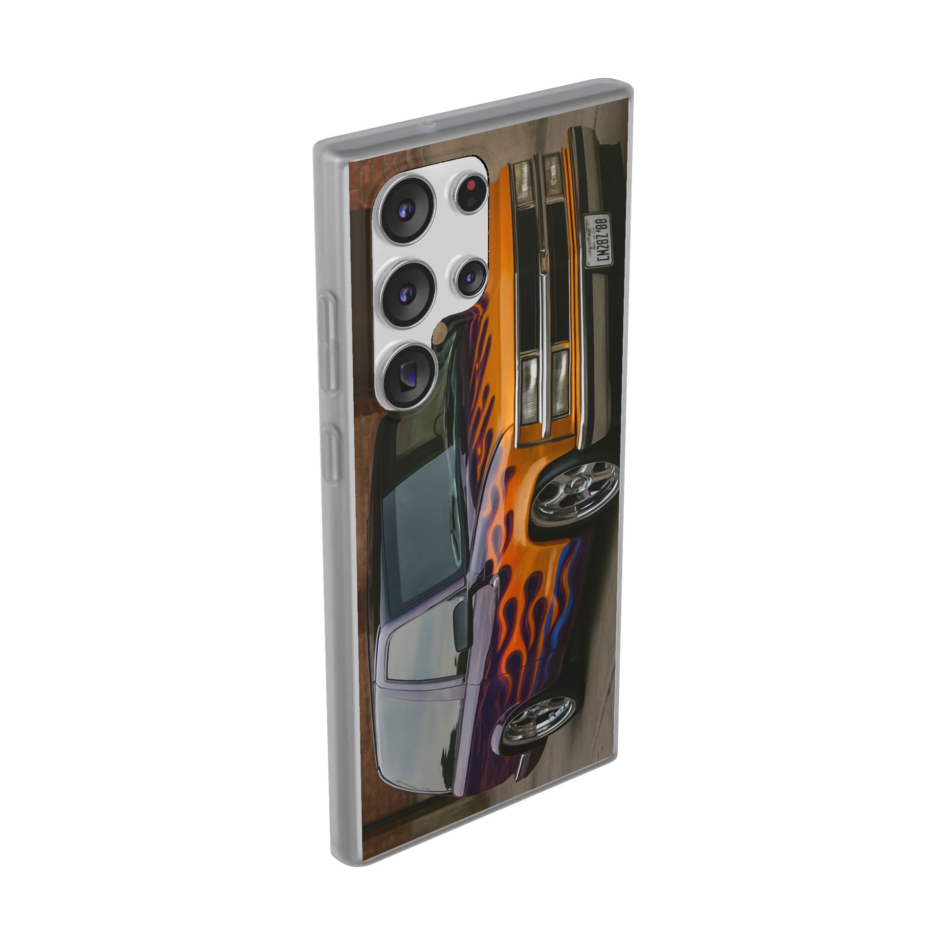 A 1996 Chevy Tahoe with Flames design on a flexible and impact-absorbing phone case. Gives off a retro and edgy vibe, perfect for car enthusiasts and those who love bold designs. Ideal for adding a pop of color and personality to your everyday phone accessory. Great for birthdays, Father's Day, or any occasion to gift a unique and stylish phone case.