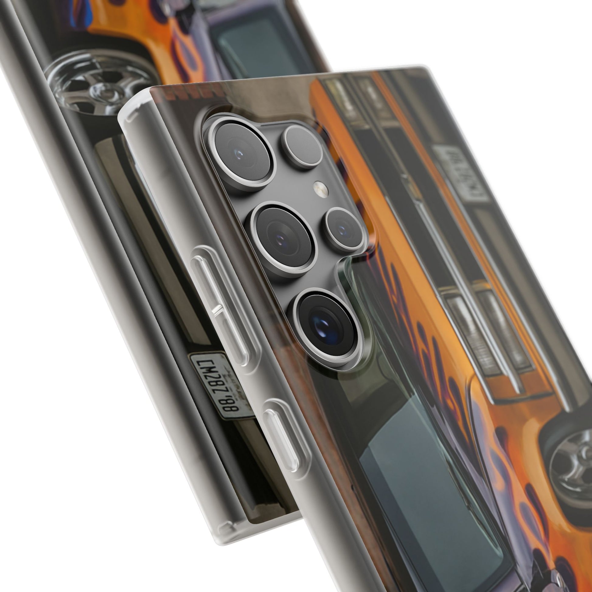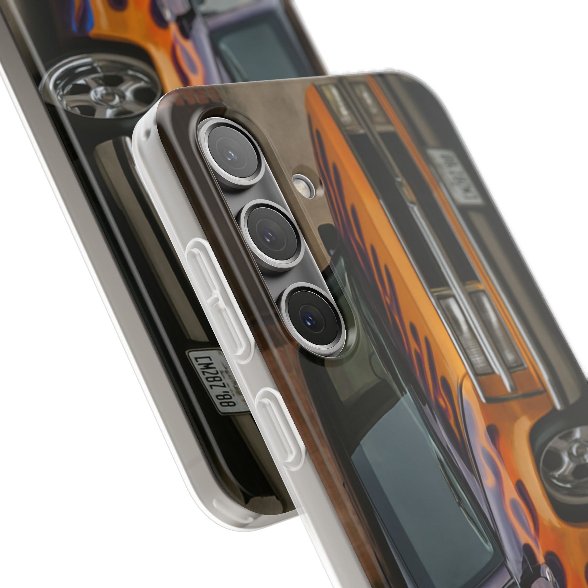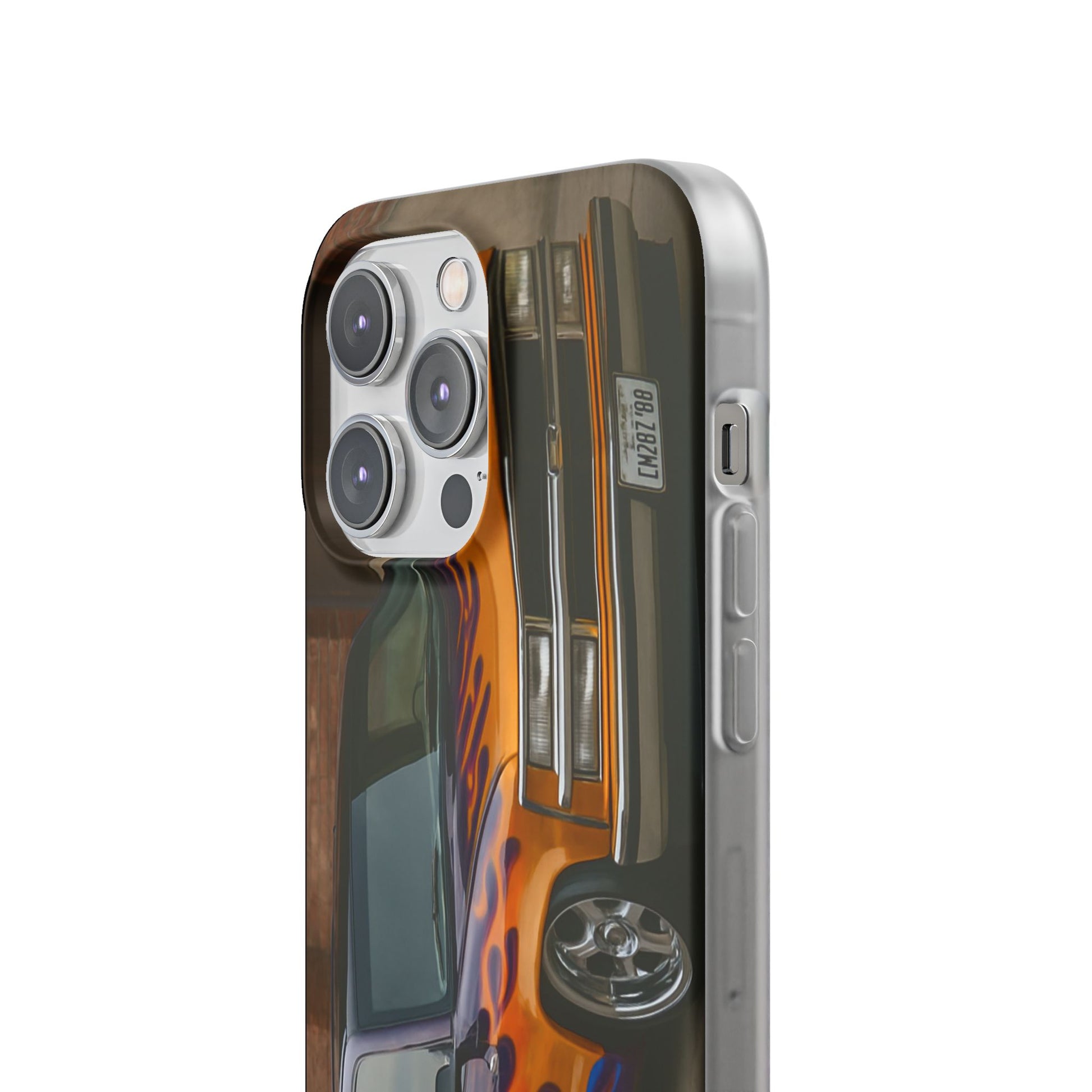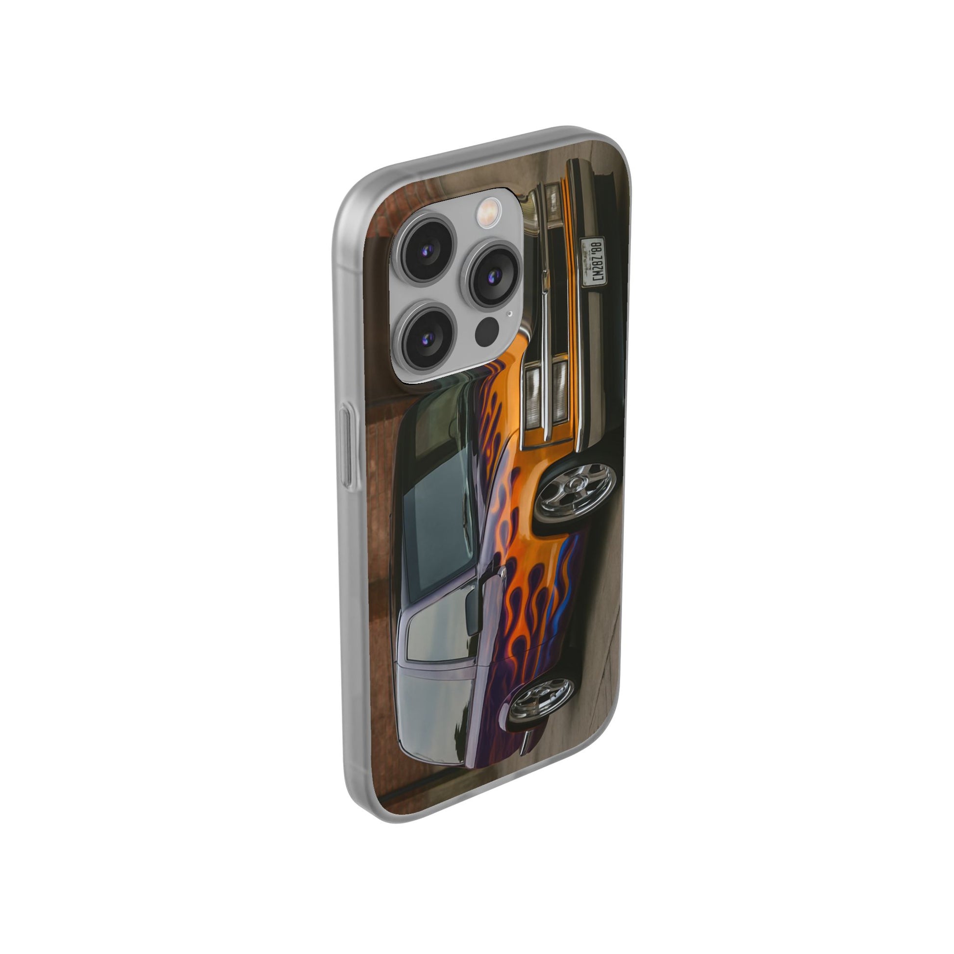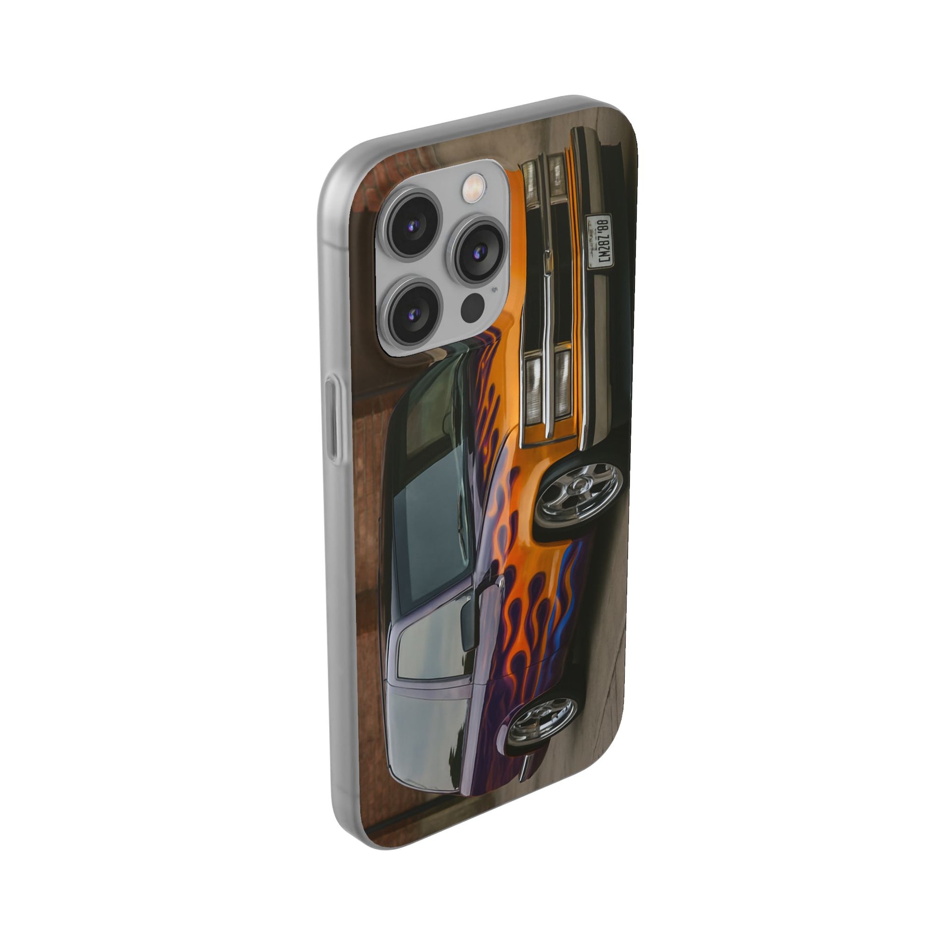 A 1996 Chevy Tahoe with Flames design on a flexible and impact-absorbing phone case. Gives off a retro and edgy vibe, perfect for car enthusiasts and those who love bold designs. Ideal for adding a pop of color and personality to your everyday phone accessory. Great for birthdays, Father's Day, or any occasion to gift a unique and stylish phone case.