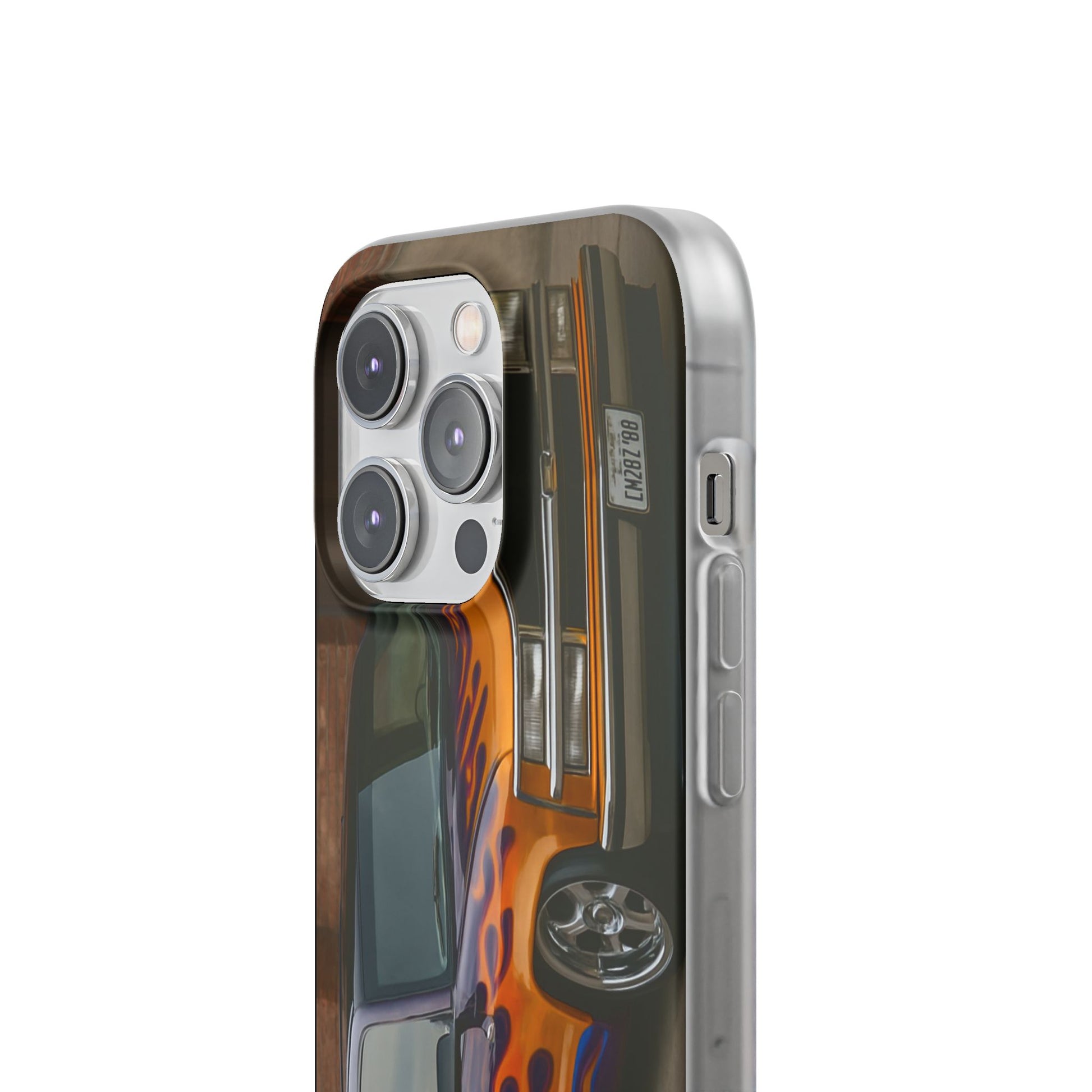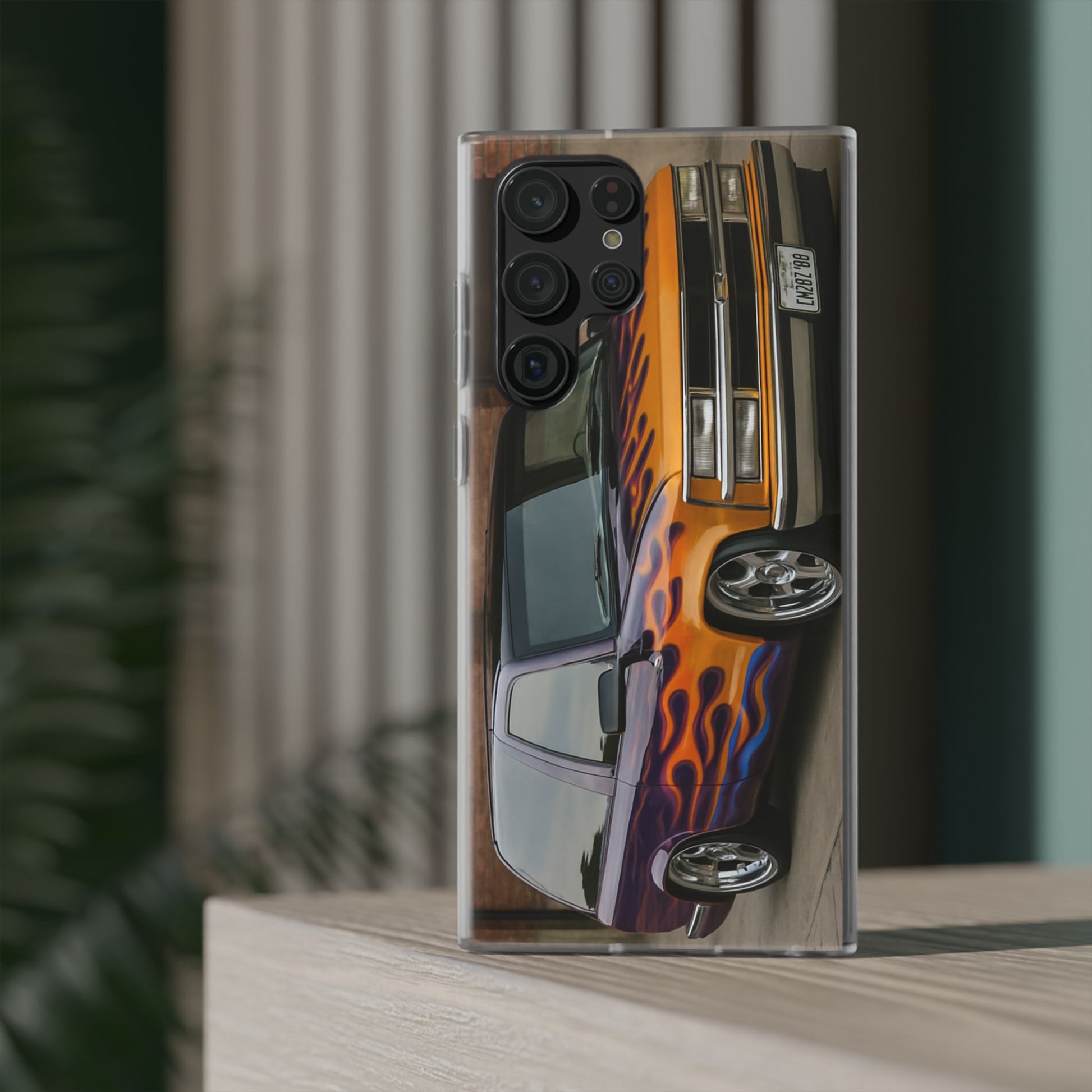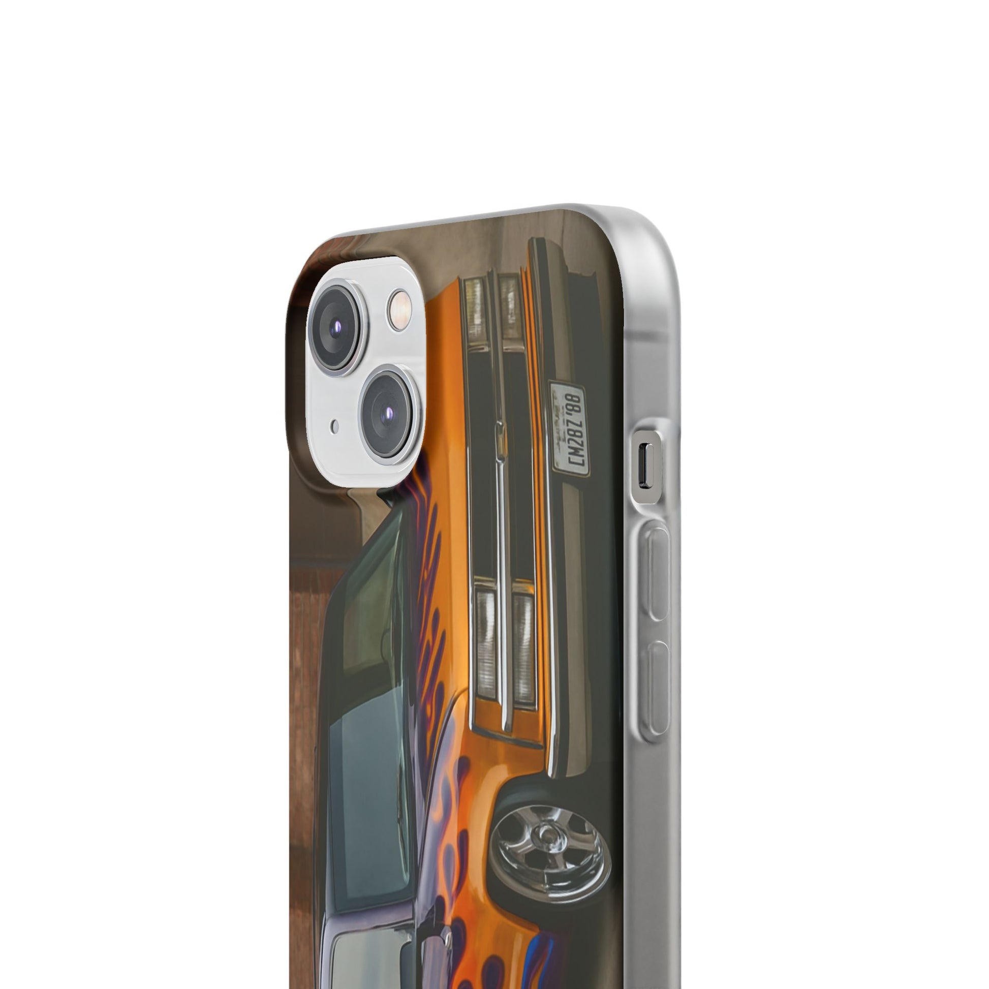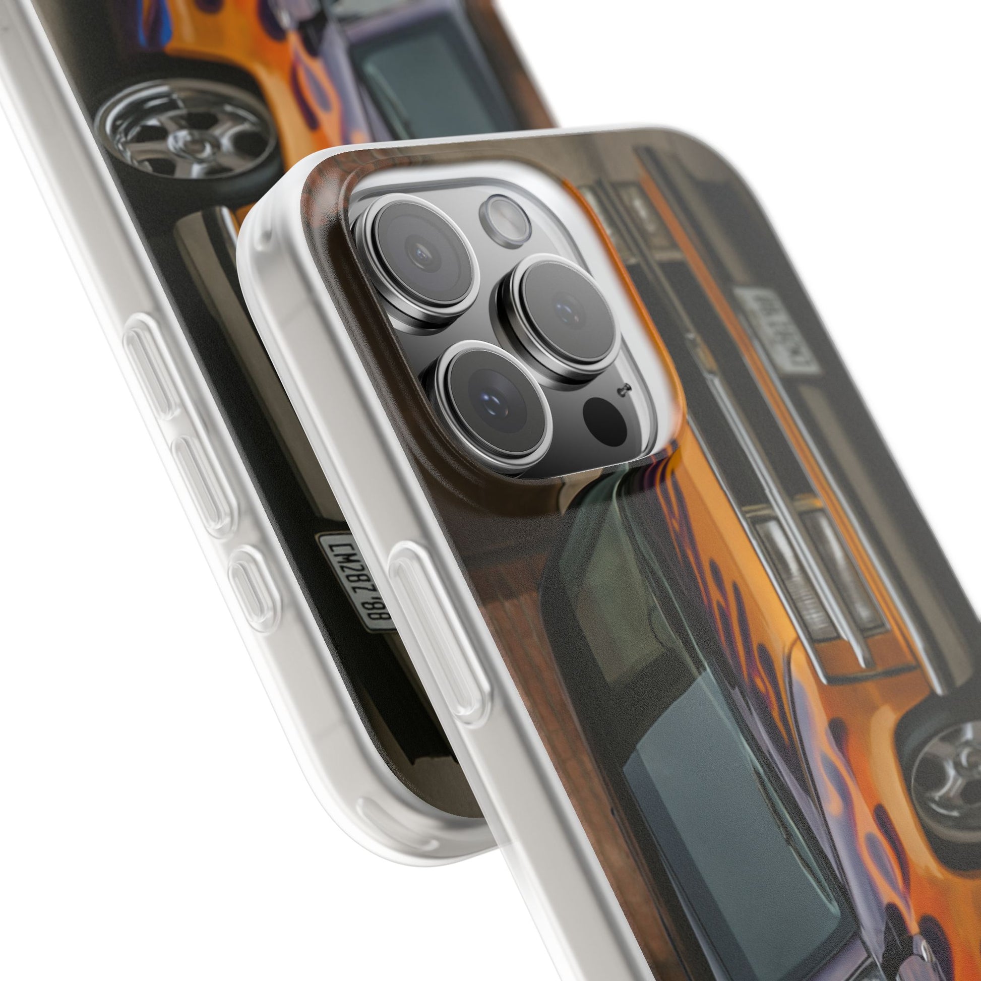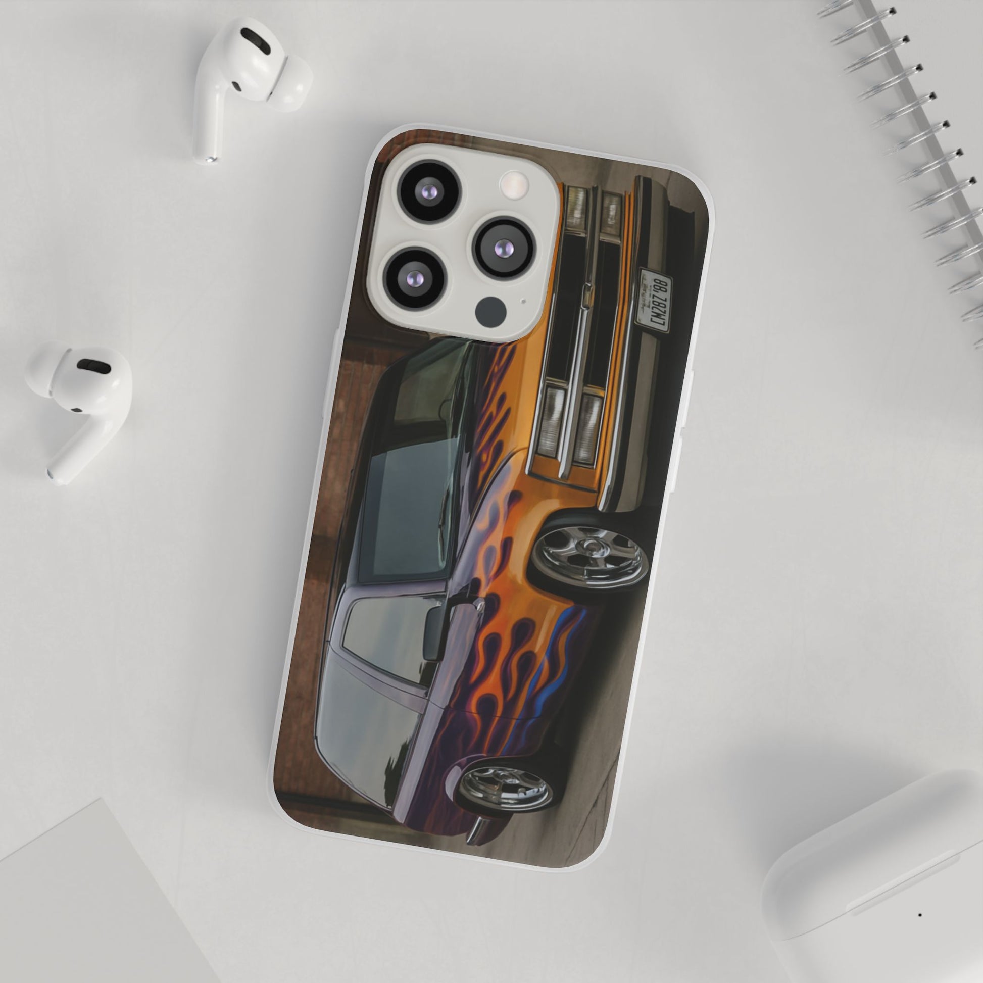 A 1996 Chevy Tahoe with Flames design on a flexible and impact-absorbing phone case. Gives off a retro and edgy vibe, perfect for car enthusiasts and those who love bold designs. Ideal for adding a pop of color and personality to your everyday phone accessory. Great for birthdays, Father's Day, or any occasion to gift a unique and stylish phone case.