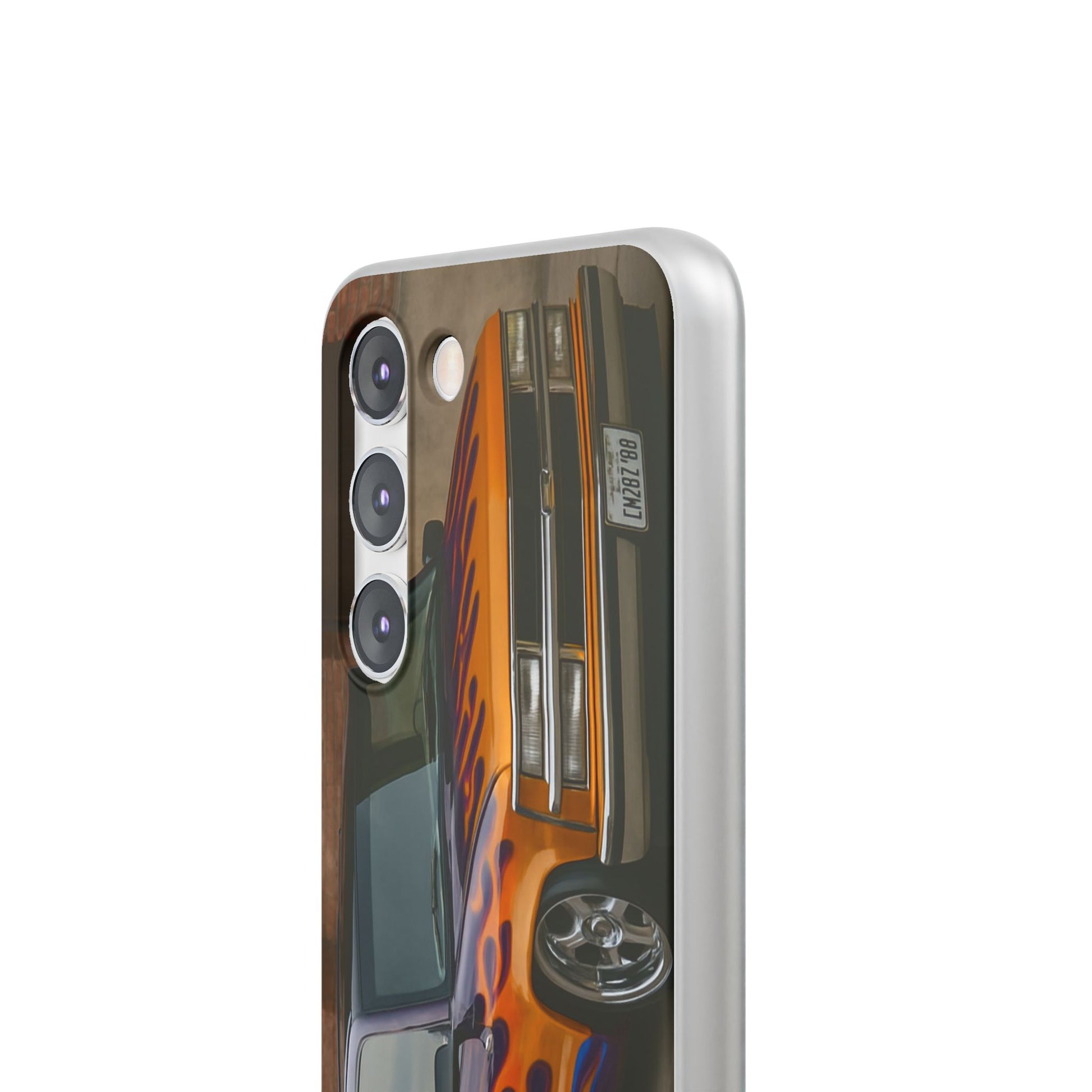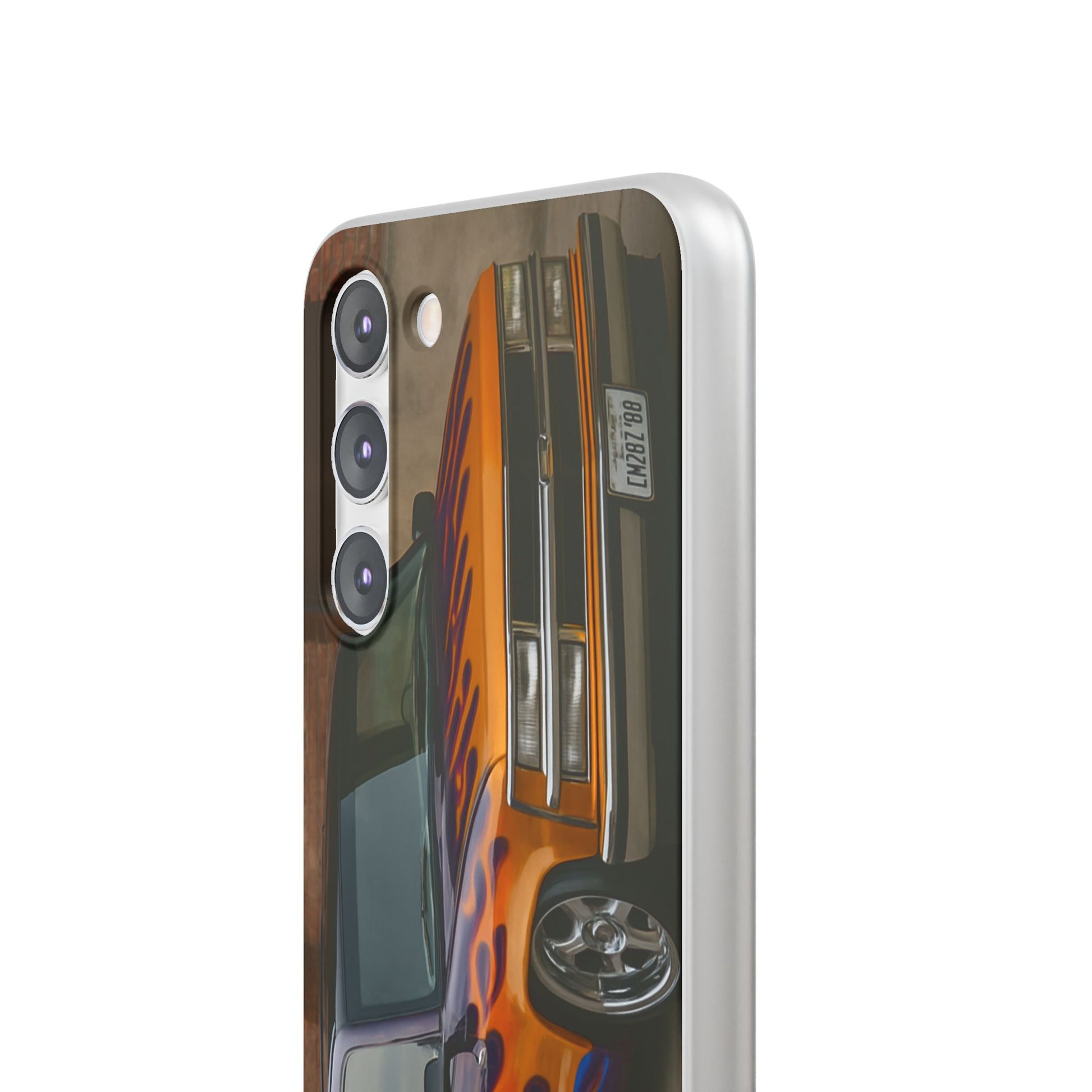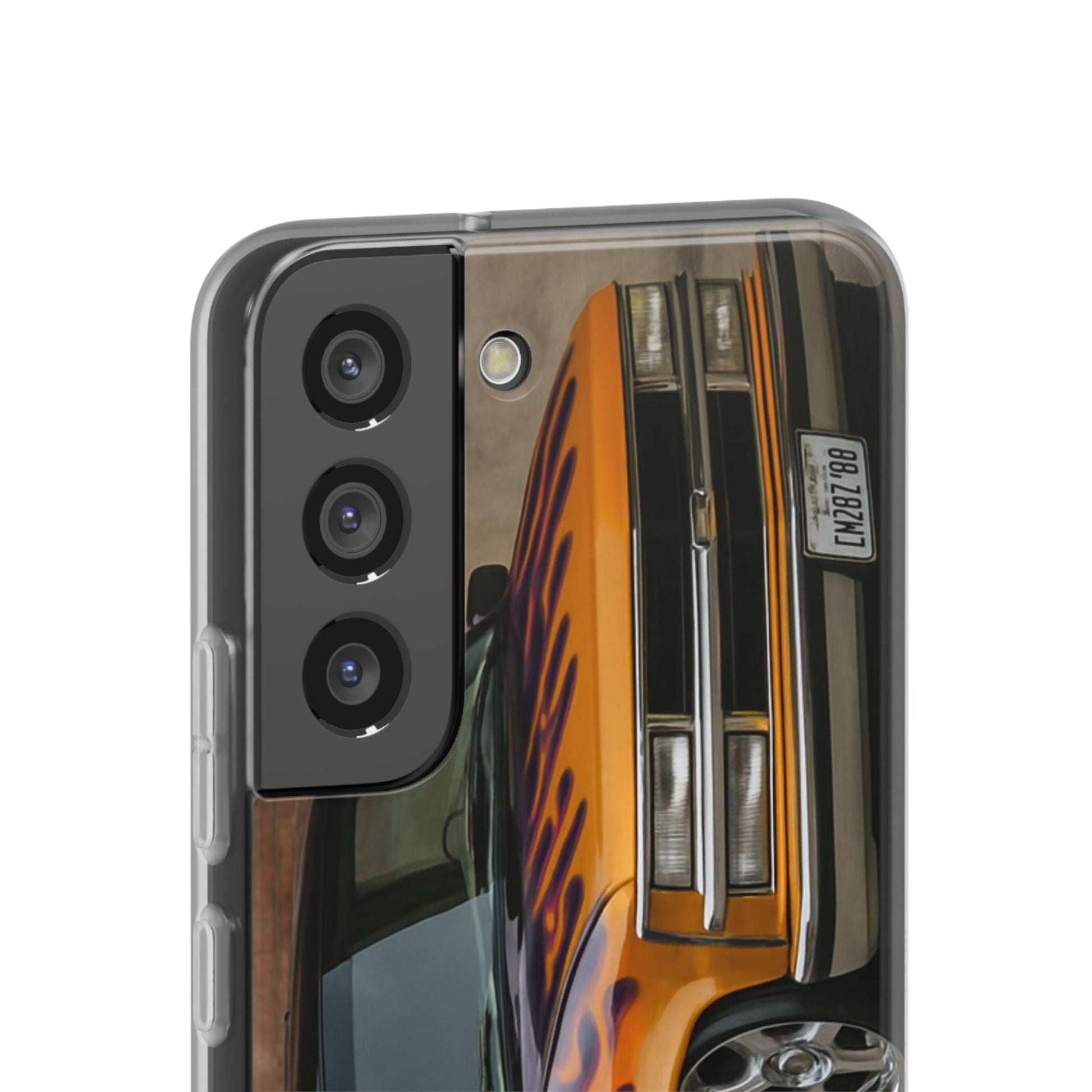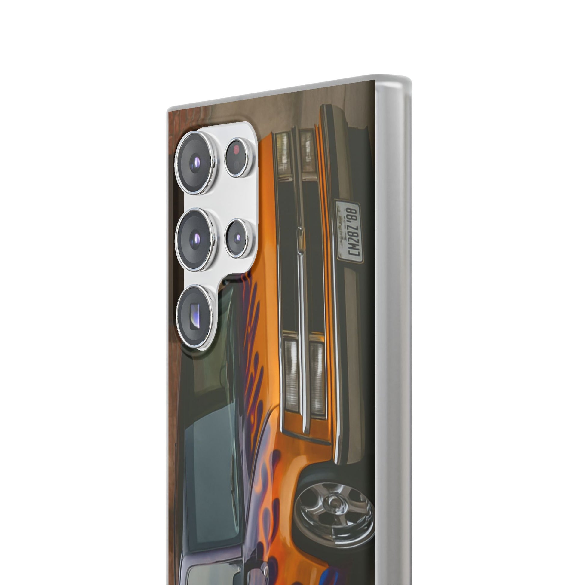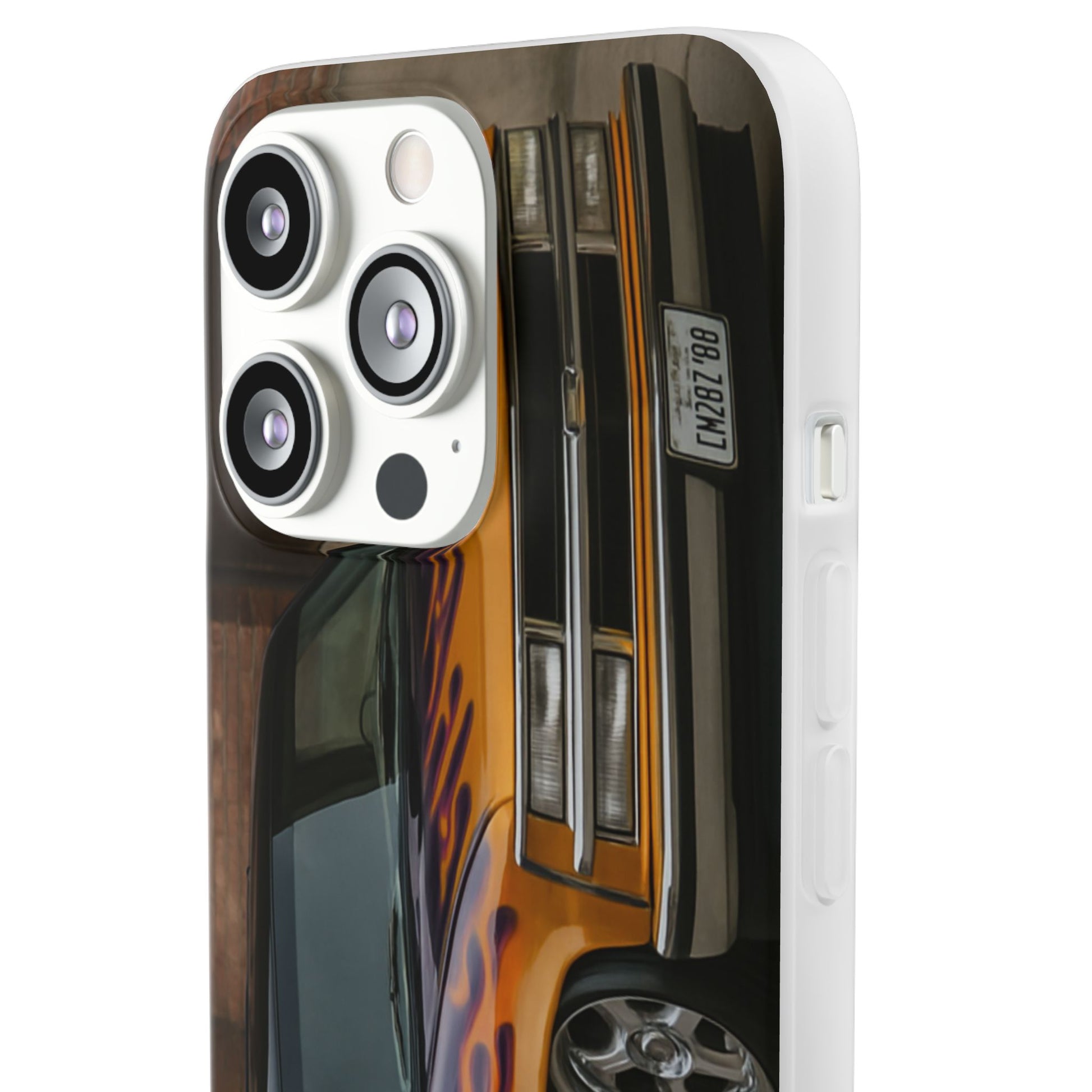 A 1996 Chevy Tahoe with Flames design on a flexible and impact-absorbing phone case. Gives off a retro and edgy vibe, perfect for car enthusiasts and those who love bold designs. Ideal for adding a pop of color and personality to your everyday phone accessory. Great for birthdays, Father's Day, or any occasion to gift a unique and stylish phone case.