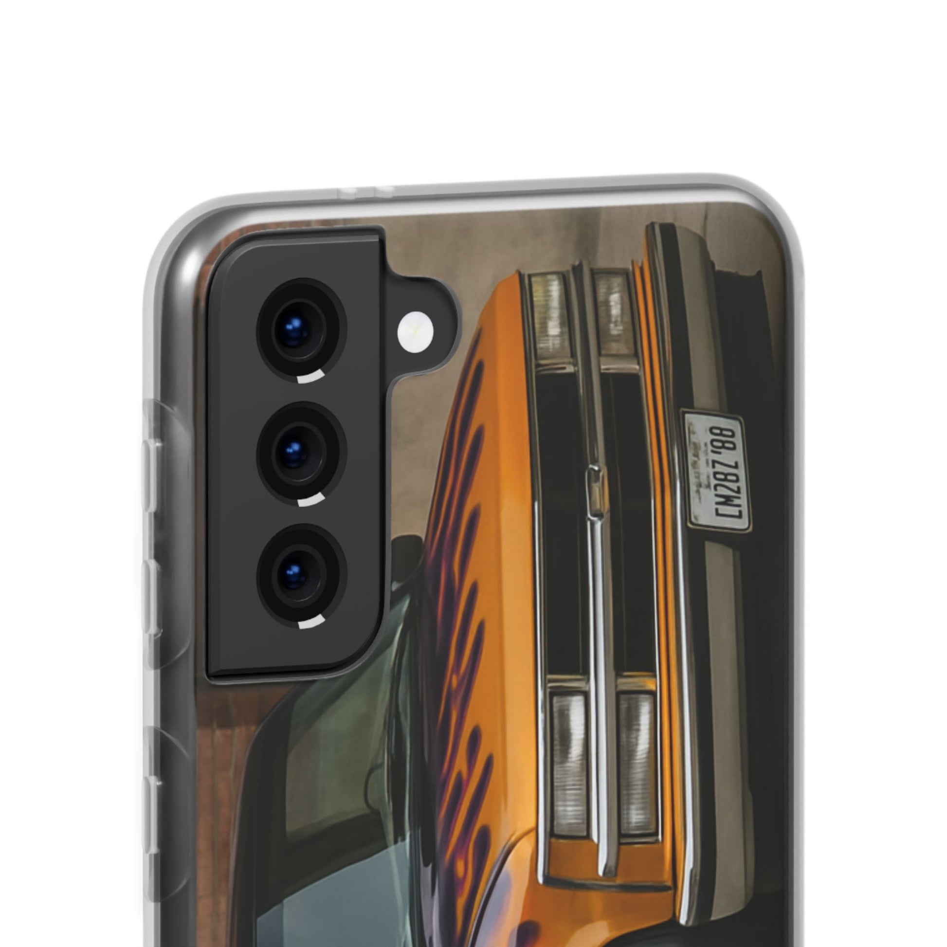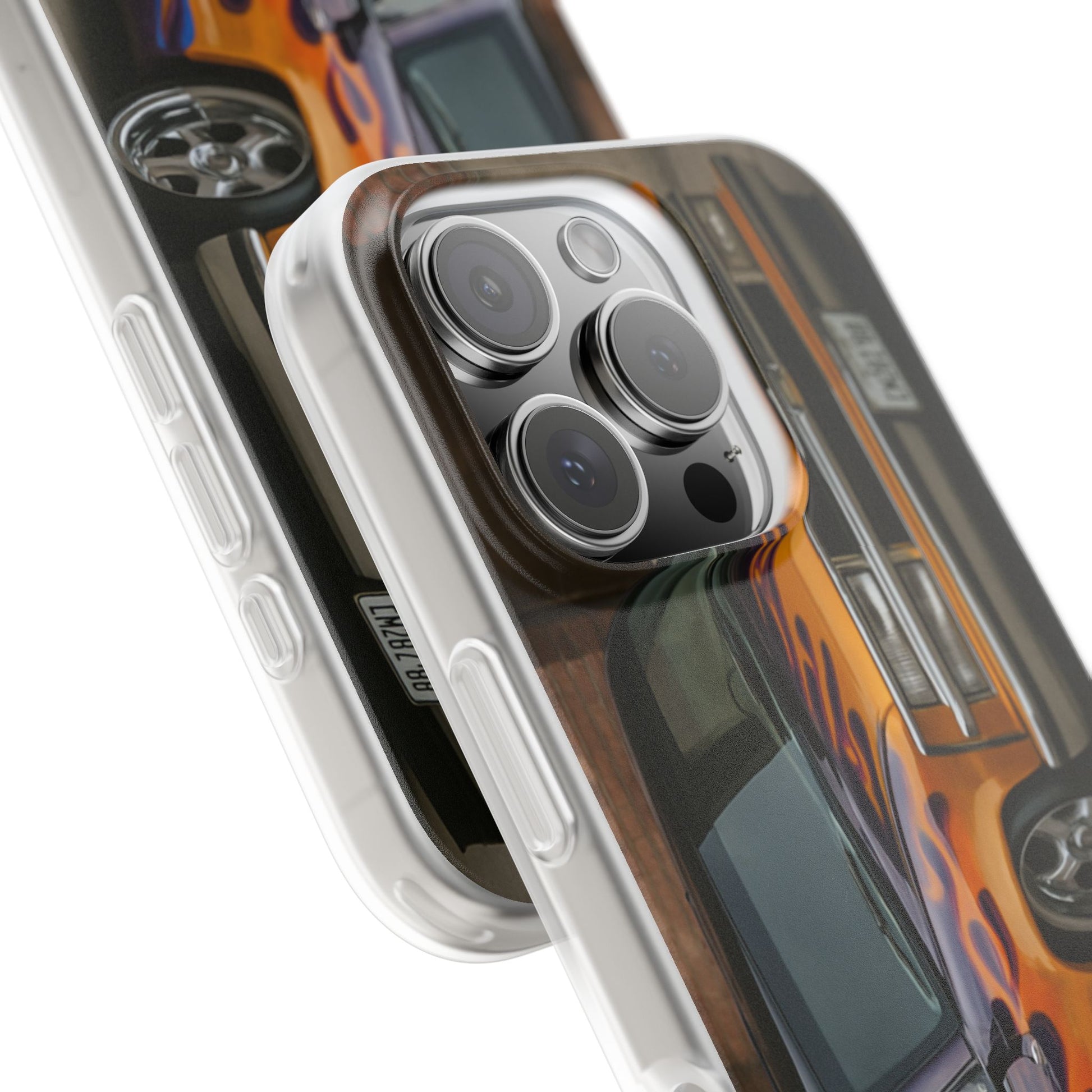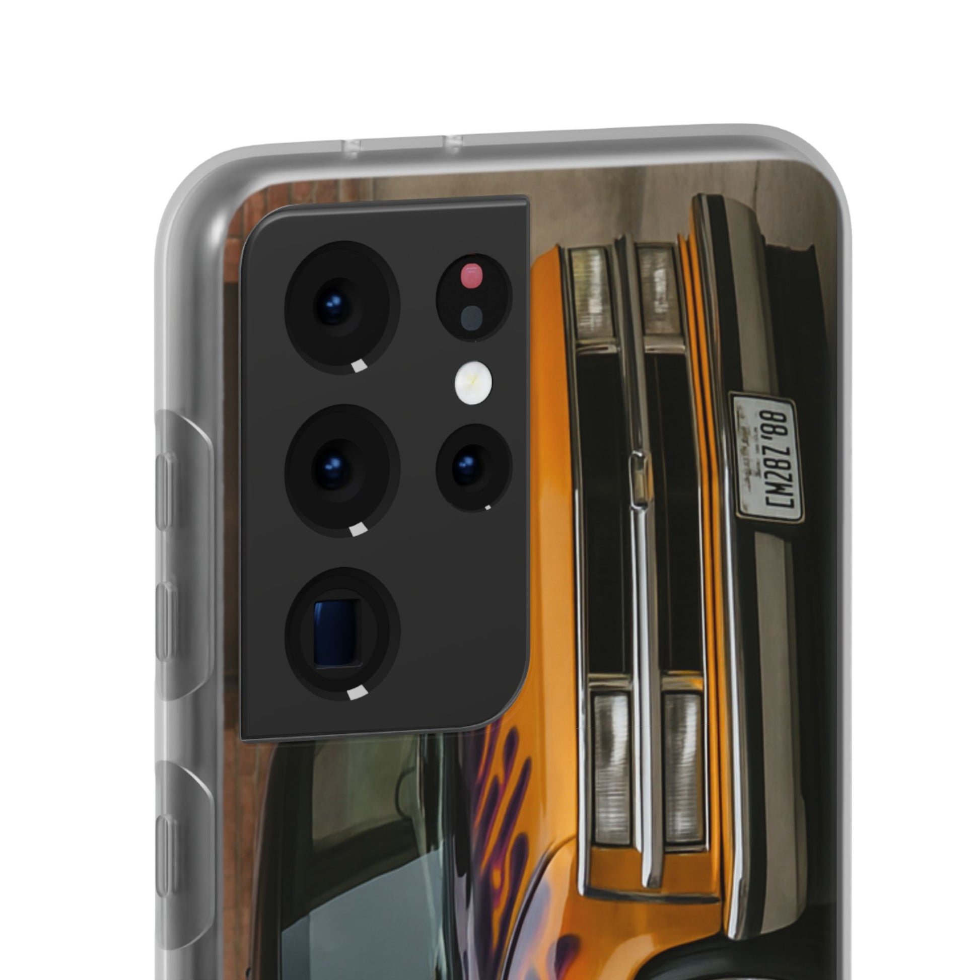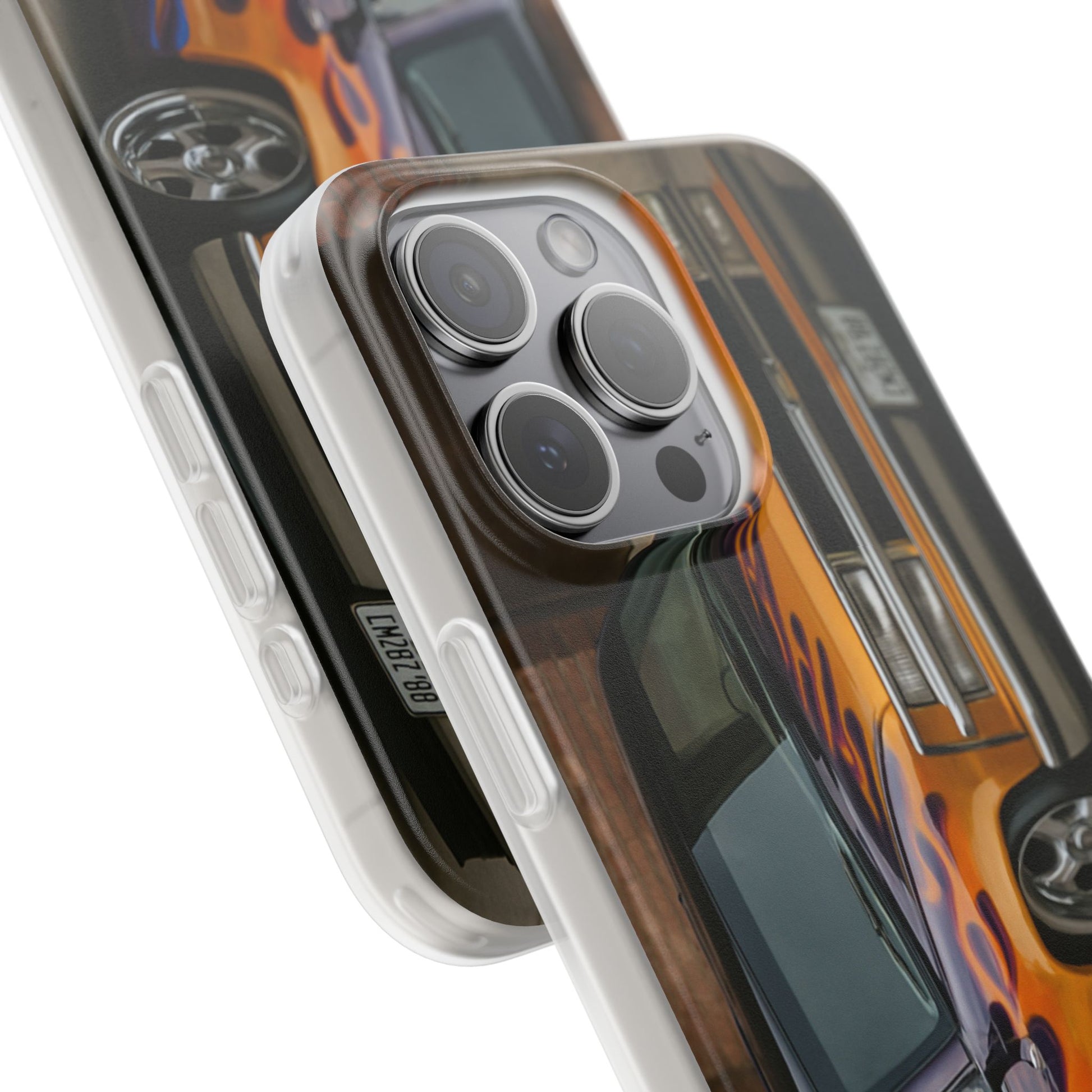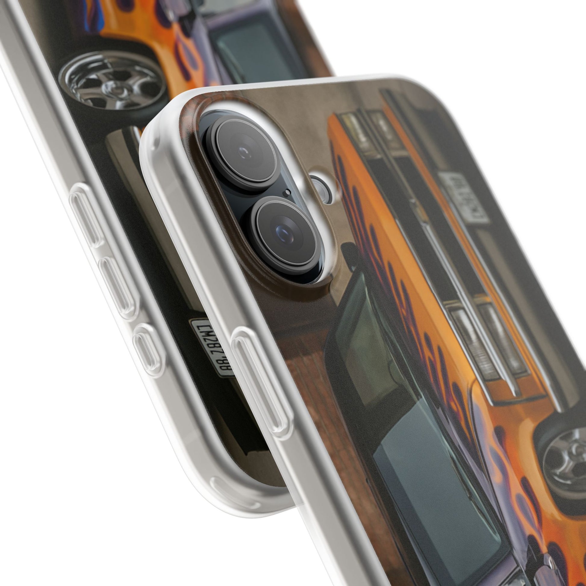 A 1996 Chevy Tahoe with Flames design on a flexible and impact-absorbing phone case. Gives off a retro and edgy vibe, perfect for car enthusiasts and those who love bold designs. Ideal for adding a pop of color and personality to your everyday phone accessory. Great for birthdays, Father's Day, or any occasion to gift a unique and stylish phone case.