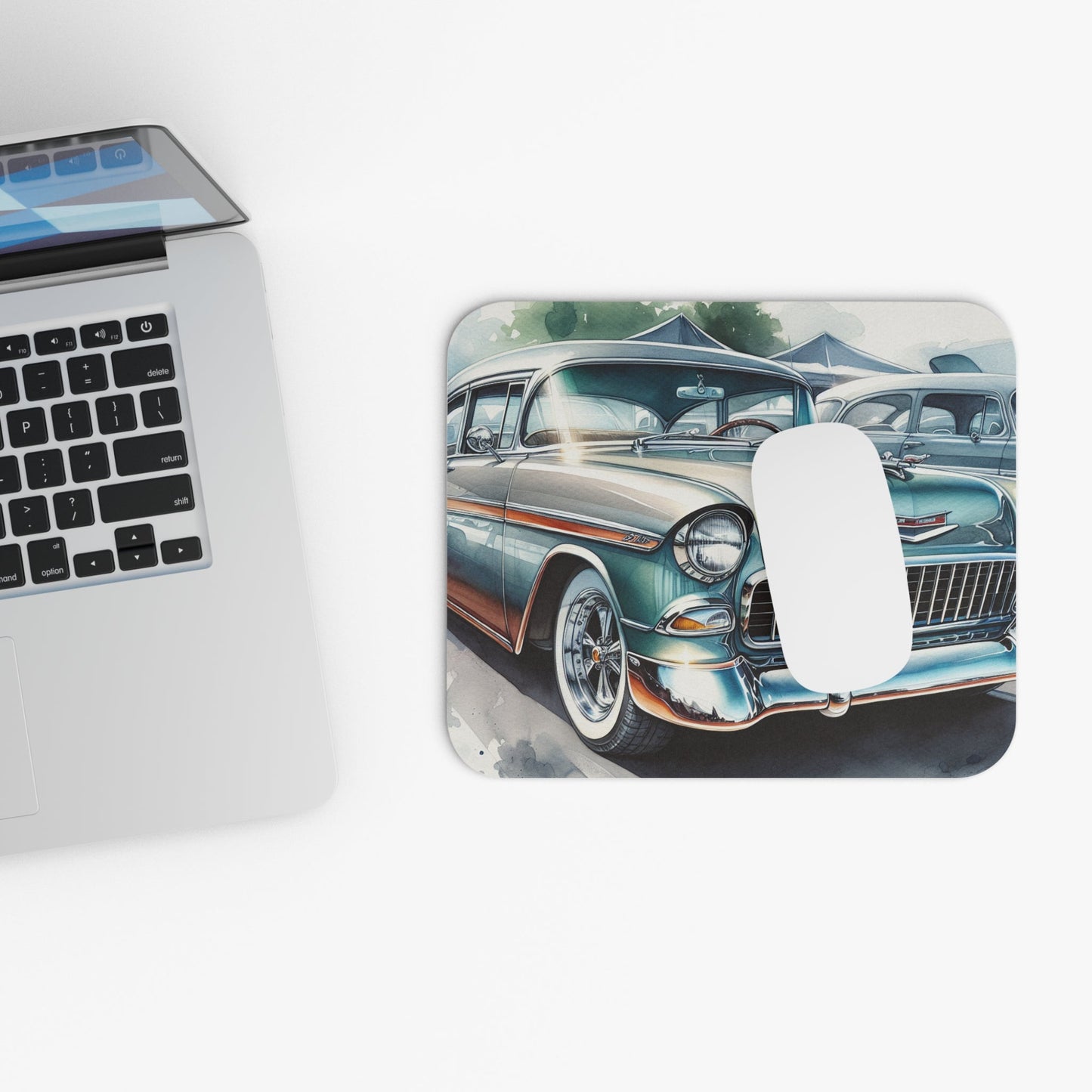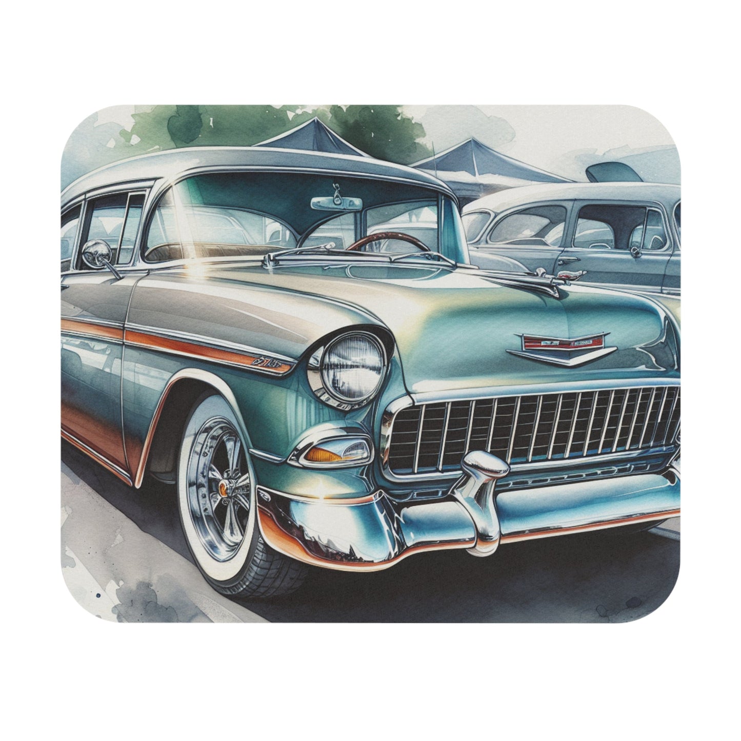 Add a touch of vintage charm to your workspace with the 1955 Chevy Bel Air Mouse Pad. The vibrant colors and retro design create a nostalgic atmosphere, perfect for car enthusiasts and lovers of the 50s era. Ideal for everyday use or as a thoughtful gift for birthdays, Father's Day, or Christmas.